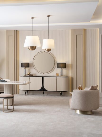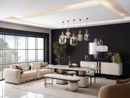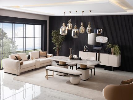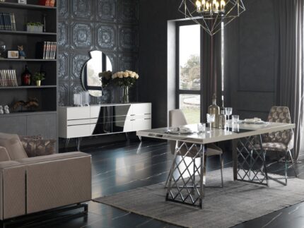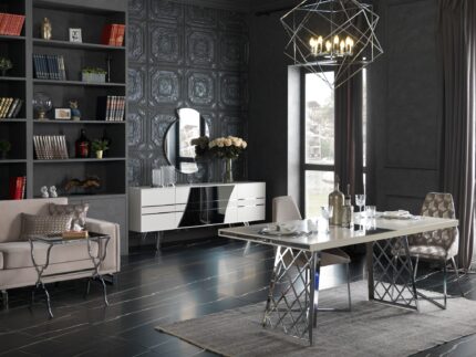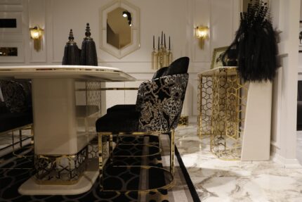 Fendi Concept Yemek Odası, ikonik lüksü ve modern tasarımı bir araya getirerek sofralarınıza prestijli bir dokunuş katar. Zarif detayları ve sofistike hatları, mekânınıza göz alıcı bir şıklık ve zarafet kazandırır. Her buluşmayı özel ve unutulmaz bir deneyime dönüştüren, stil sahibi bir tercih sunar.