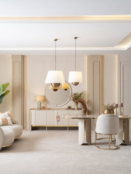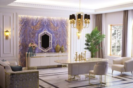 Versace Yemek Odası, ikonik tasarımı ve lüks detaylarıyla yemek alanınıza sofistike bir dokunuş katıyor. Altın tonlar ve zarif işçilik, mekâna prestijli ve etkileyici bir hava kazandırıyor. Her öğün, şıklığı ve ihtişamı bir arada sunan özel bir deneyime dönüşüyor.