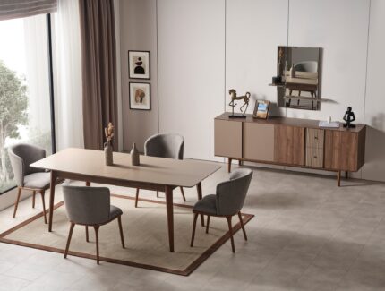 Ekol Yemek Odası, evinize modern ve samimi bir dokunuş getiriyor. Minimalist tasarımı ve şık detayları, sofralarınıza estetik bir hava katıyor. Her yemek anı, rahat ve keyifli bir deneyime dönüşüyor. Misafirleriniz bu sıcak ve davetkar ortamda kendilerini özel hissedecek. Ekol ile yemek odanız, evinizin en tarz ve fonksiyonel köşesi haline geliyor.