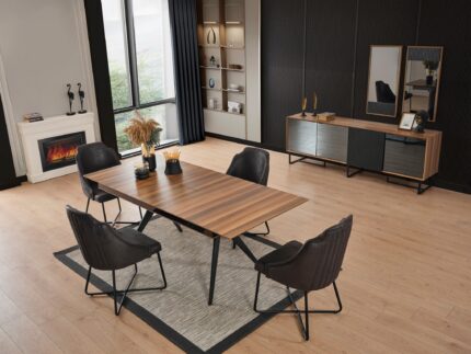 Elit Yemek Odası, modern çizgiler ve zarif detaylarla sofralarınıza prestij katıyor. Her parçası özenle tasarlanmış ve konfor düşünülerek yerleştirilmiş. Günlük yemekleriniz bile özel bir anıya dönüşüyor. Şıklığıyla evin havasını değiştiren Elit, sevdiklerinizle geçireceğiniz anları daha değerli kılıyor. Sofralarınız artık sadece yemek değil, bir deneyim sunuyor.