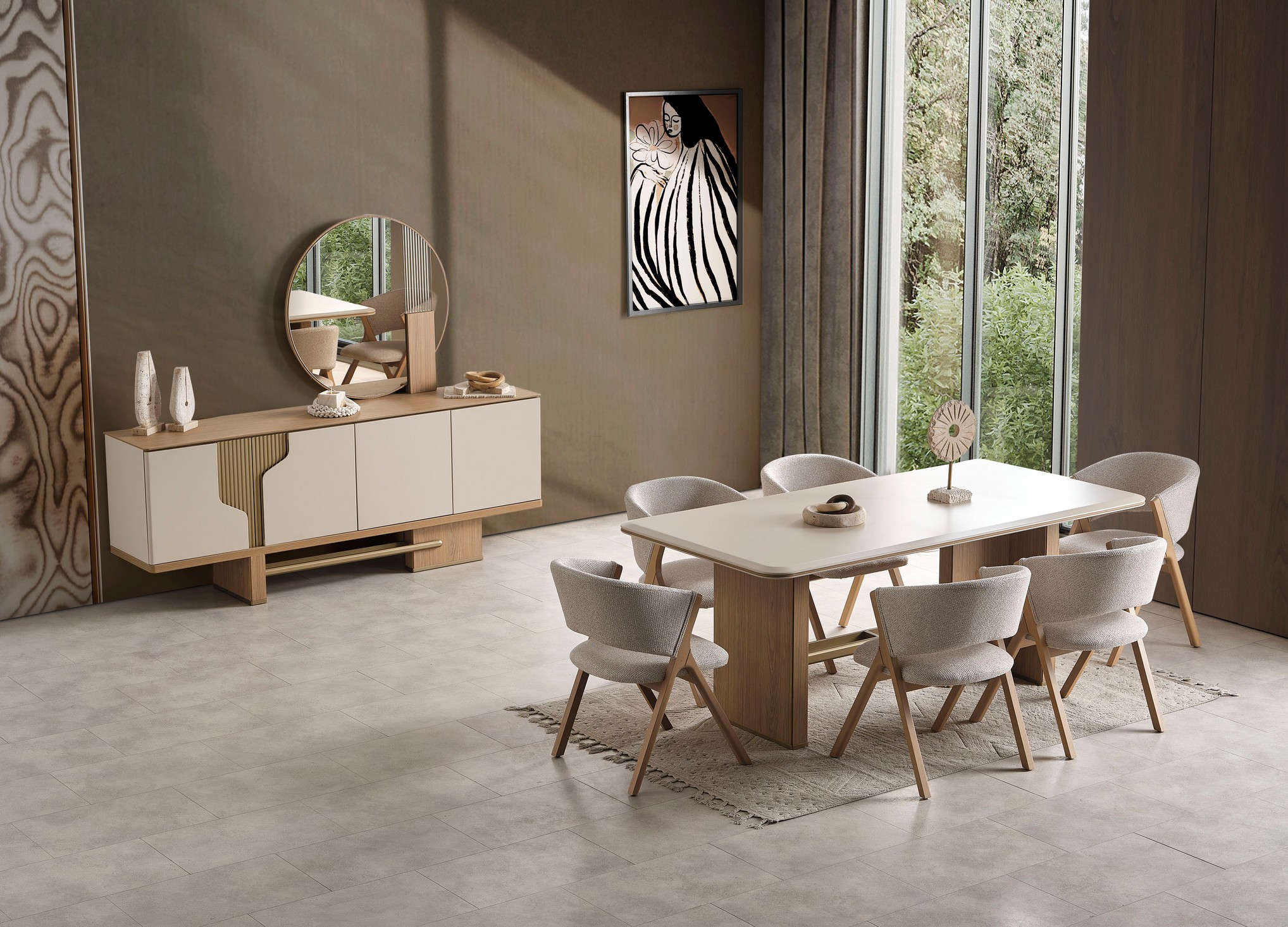 Elit Yemek Odası, sofistike çizgileri ve zarif detaylarıyla sofralarınıza ayrıcalıklı bir şıklık katar. Modern tasarımı, mekânınıza ferah ve davetkar bir atmosfer getirir. Fonksiyonel yapısı, hem günlük kullanımda hem de özel davetlerde konfor sağlar. Her yemeği unutulmaz bir deneyime dönüştüren estetik bir tercih sunar.