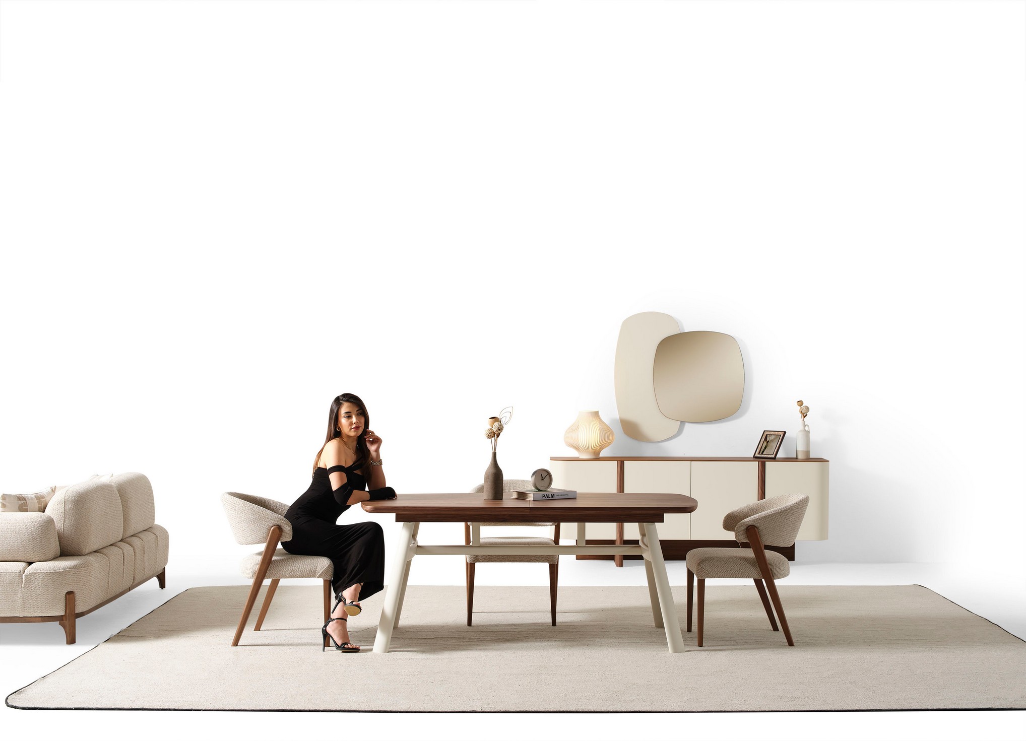 Aura Yemek Odası, mekânınıza ilk bakışta hissedilen zarif bir enerji katar. Yumuşak geçişli hatları ve modern dokunuşları, sofralarınızı huzur ve şıklığın buluştuğu özel bir atmosfere dönüştürür. Kendine özgü tasarım diliyle her yemeği ruhu olan bir deneyime çevirir. Kusursuz estetik arayanlar için etkileyici bir seçimdir.