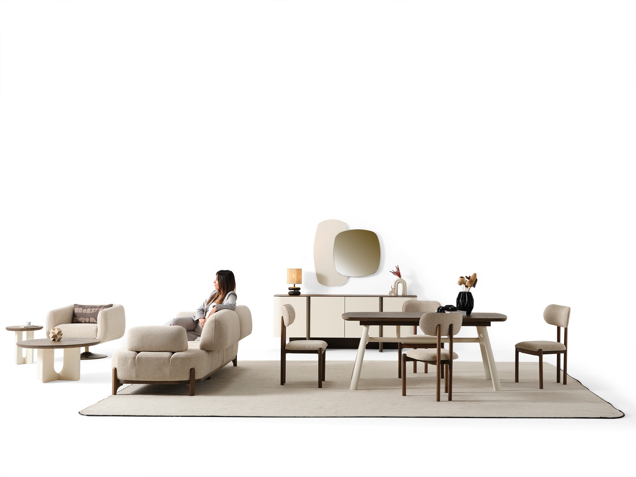 Belezza Yemek Odası, adını yansıtan zarafetiyle mekânınıza doğal bir şıklık taşır. Akıcı çizgileri ve estetik dokunuşları, sofralarınıza sıcak ve sofistike bir hava katar. Modern tasarımın inceliklerini hissettiren duruşuyla her daveti özel bir ana dönüştürür. Şıklığı sade bir ustalıkla sunan seçkin bir tercihtir.