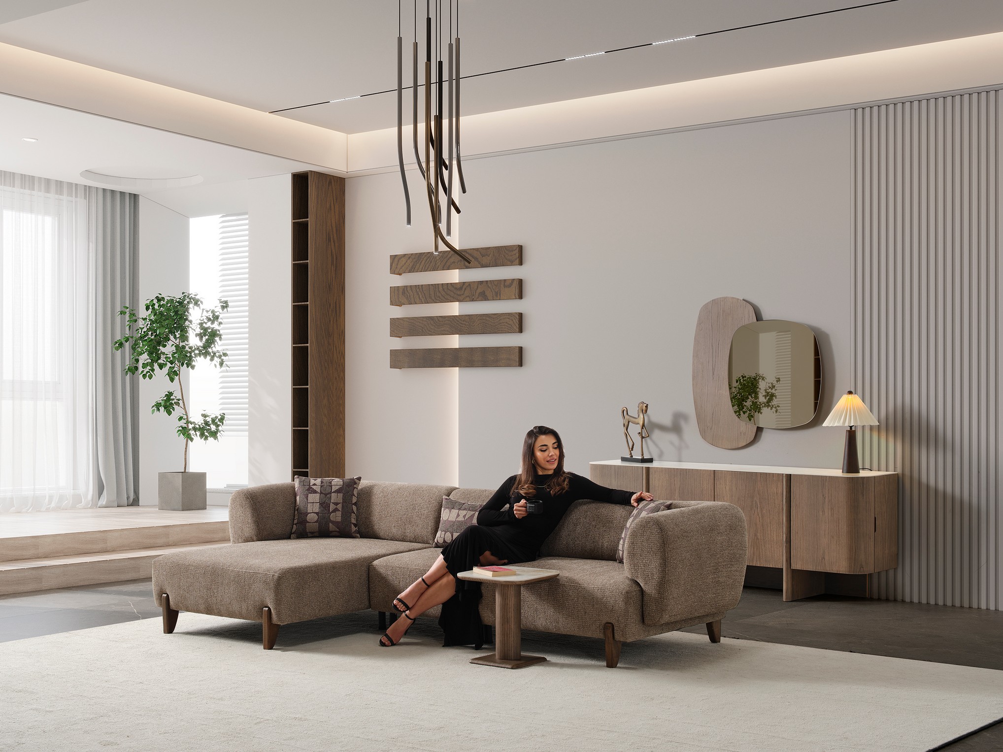 Crown Koltuk Takımı, modern lüksü zarif detaylarla buluşturan çarpıcı bir oturma grubu sunar. Yumuşak dokular ve dengeli renk uyumu, oturma alanınıza sofistike ve davetkâr bir atmosfer kazandırır. Fonksiyonel ve konforlu yapısıyla hem günlük dinlenme hem de misafir ağırlama için ideal bir kullanım sağlar. Şıklığı ve rahatlığı bir arada arayanlar için mükemmel bir tercihtir.