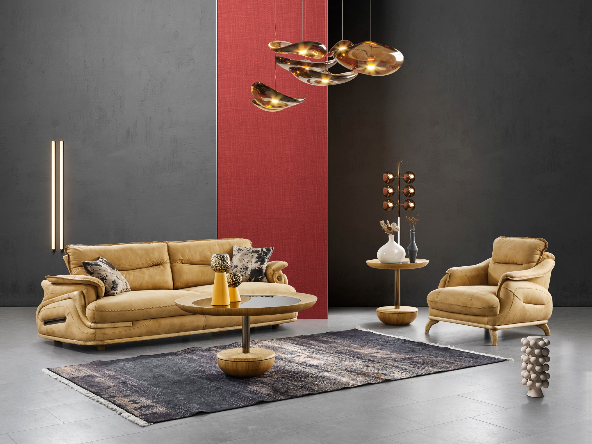 Astella Koltuk Takımı, zarif tasarım çizgileri ve yumuşak detaylarıyla yaşam alanınıza sofistike bir hava katar. Konfor odaklı minderleri ve ergonomik yapısı sayesinde uzun süreli oturmalarda bile rahat bir deneyim sunar. Uyumlu renk tonları ve estetik yüzey dokuları, salonunuza ferah ve şık bir atmosfer kazandırır. Hem modern stil hem de konfor arayanlar için ideal bir koltuk takımı tercihidir.