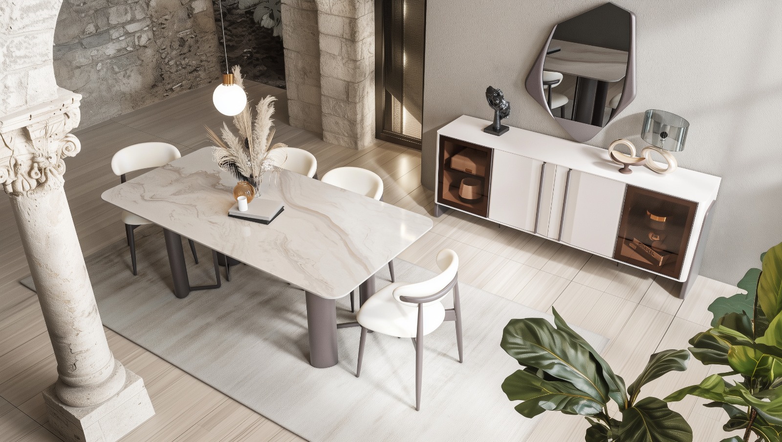 Mostar Yemek Odası, modern çizgileri ve sıcak dokusuyla sofralarınıza samimi bir şıklık getirir. Fonksiyonel tasarımı, hem günlük kullanımda hem de özel davetlerde rahatlık sunar. Zarif detayları mekânınıza estetik bir dokunuş katar. Her yemeği keyifli ve unutulmaz anlara dönüştüren bir tercih olarak öne çıkar.