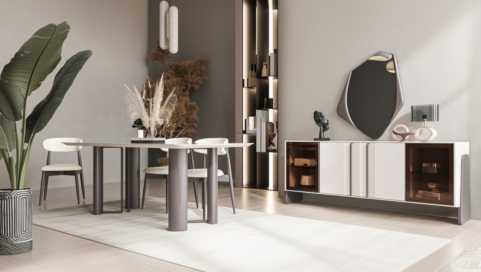Elit Yemek Odası, sofistike çizgileri ve zarif detaylarıyla sofralarınıza ayrıcalıklı bir şıklık katar. Modern tasarımı, mekânınıza ferah ve davetkar bir atmosfer getirir. Fonksiyonel yapısı, hem günlük kullanımda hem de özel davetlerde konfor sağlar. Her yemeği unutulmaz bir deneyime dönüştüren estetik bir tercih sunar.