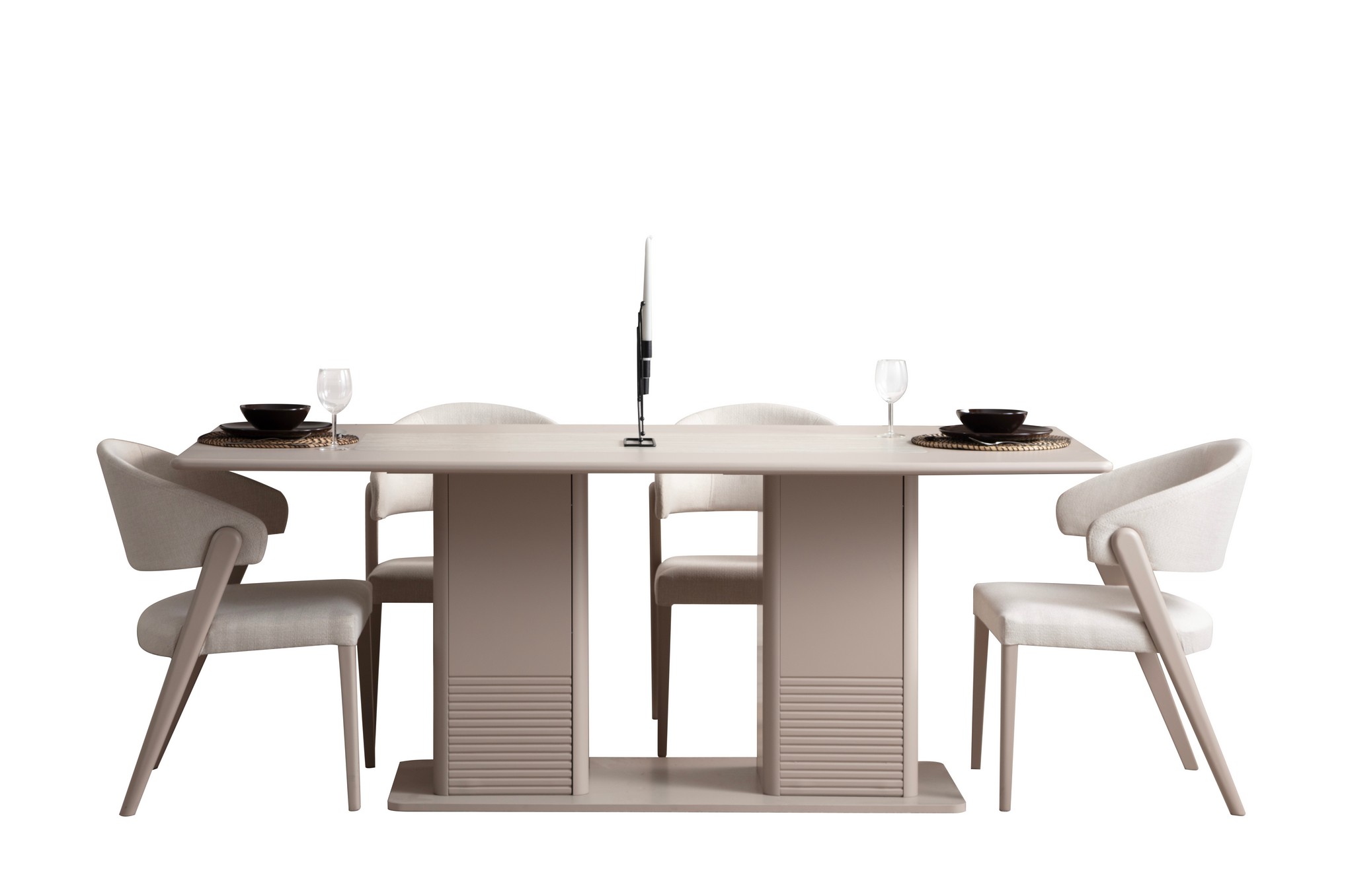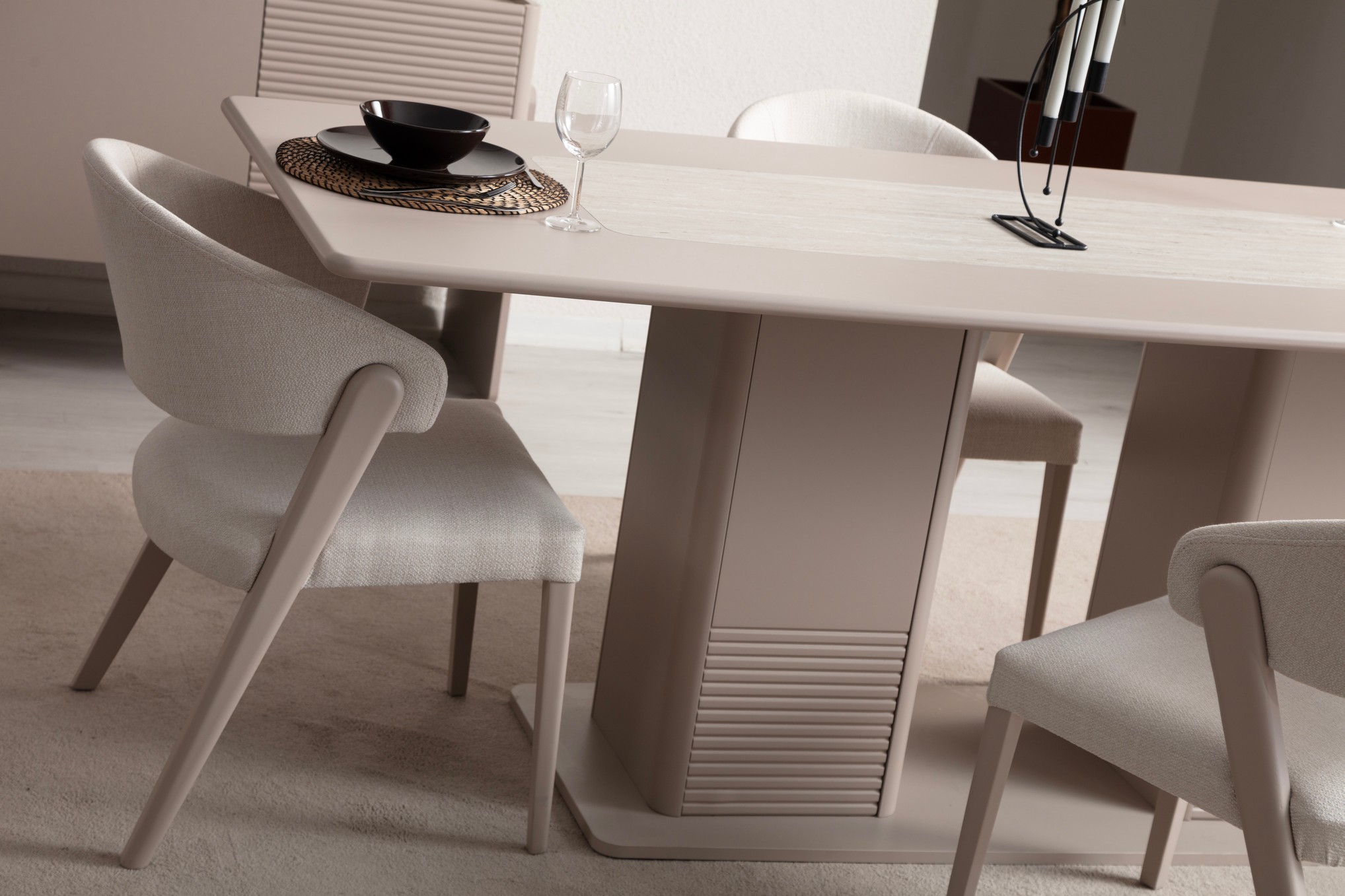 Arte Yemek Odası, modern tasarımın sanatsal dokunuşlarla buluştuğu zarif bir atmosfer sunar. Şık detayları ve uyumlu renk yapısı, yemek alanınıza hem estetik hem de sıcak bir hava katar. Kullanışlı yapısıyla günlük yaşamda konforu, özel anlarda ise şıklığı ön plana çıkarır.