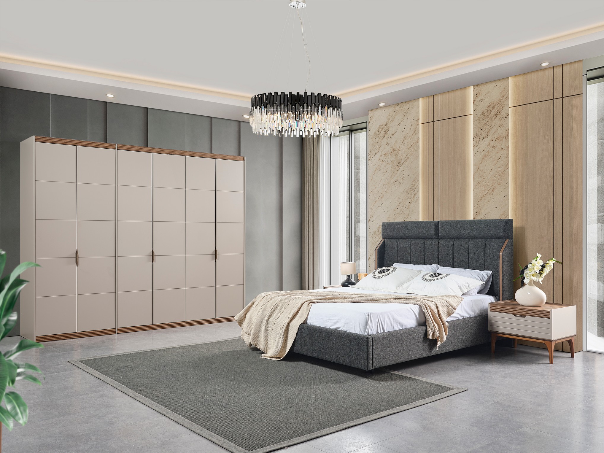 Sur Yatak Odası, güçlü tasarım çizgileri ve karakterli detaylarıyla dikkat çeken bir stil sunar. Dengeli renk kullanımı ve sağlam duruşu, odanıza modern ve etkileyici bir atmosfer kazandırır. Fonksiyonel depolama alanları ve kaliteli malzeme yapısıyla uzun ömürlü ve konforlu bir kullanım sağlar. Kendine özgü bir yatak odası arayanlar için ideal bir seçimdir.