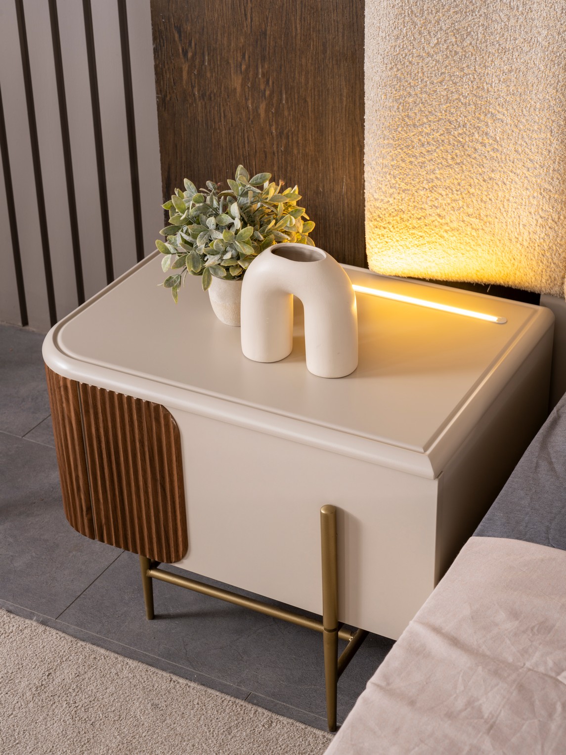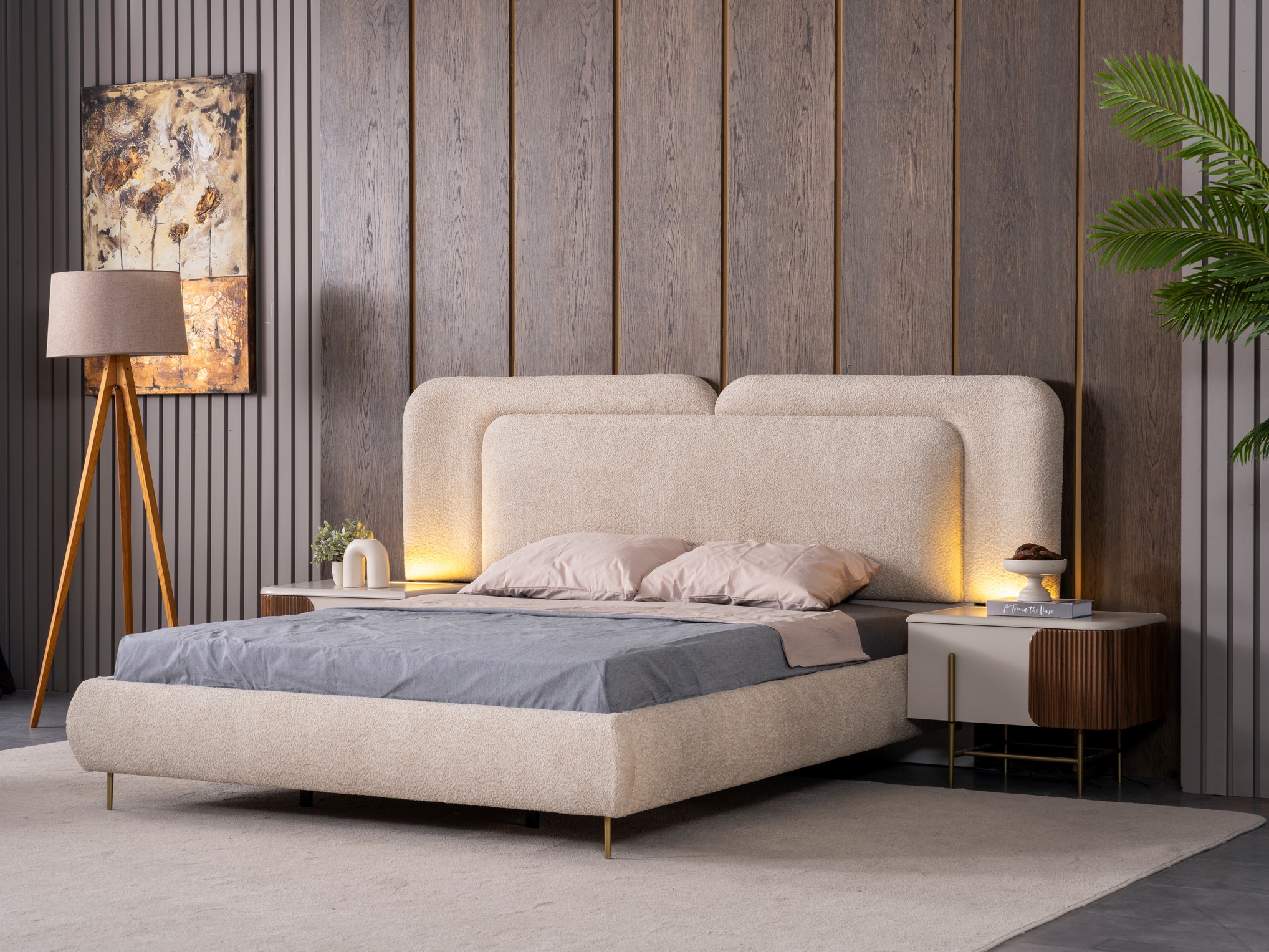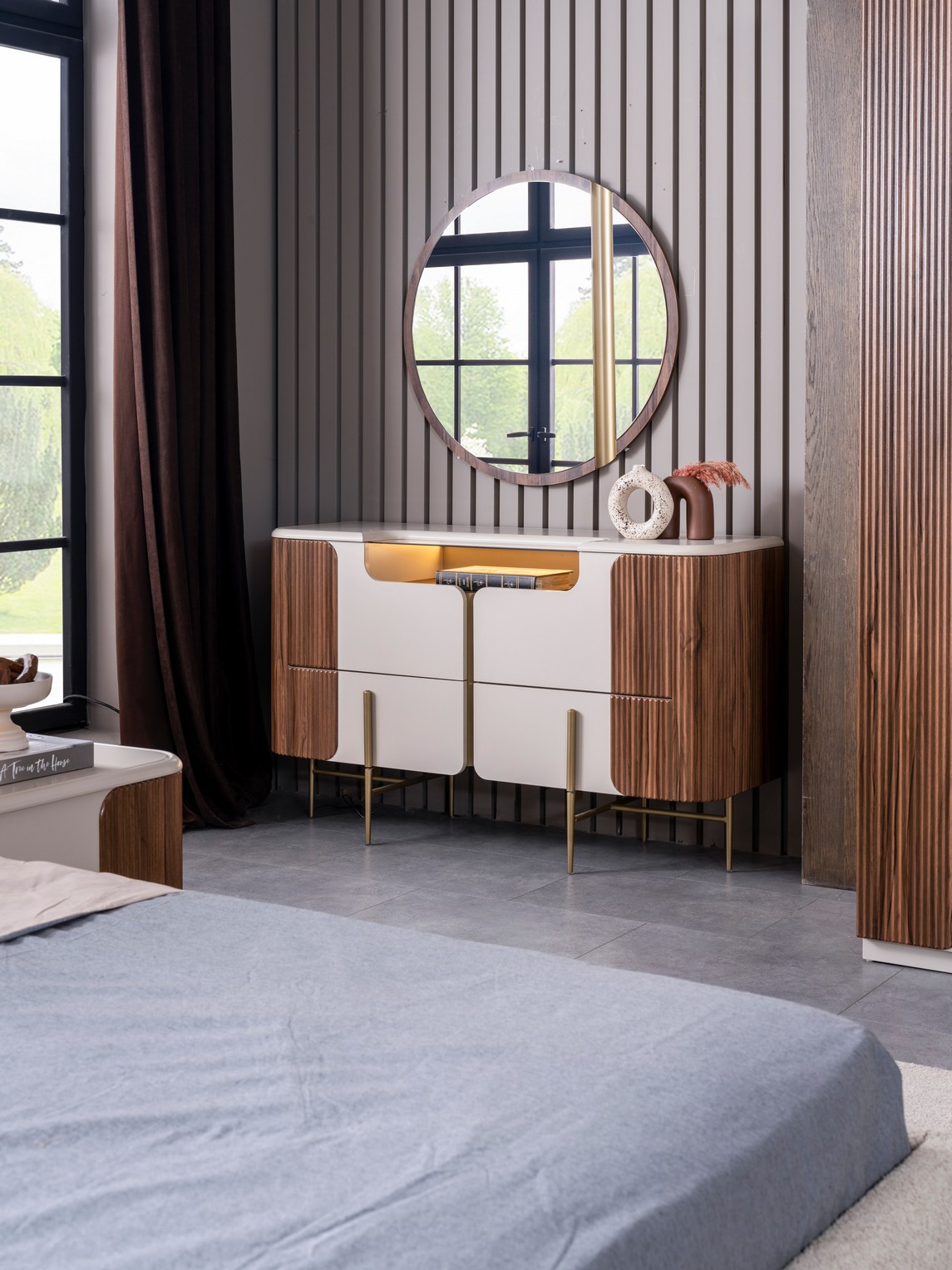 Bodrum Yatak Odası, Ege esintilerinden ilham alan tasarımıyla ferah ve huzurlu bir atmosfer sunar. Açık renk tonları ve doğal detayları, odanıza aydınlık ve rahatlatıcı bir görünüm kazandırır. Fonksiyonel depolama alanları ve kaliteli malzemeleriyle konforlu bir kullanım sağlar. Tatil havasını evine taşımak isteyenler için ideal bir yatak odası seçeneğidir.