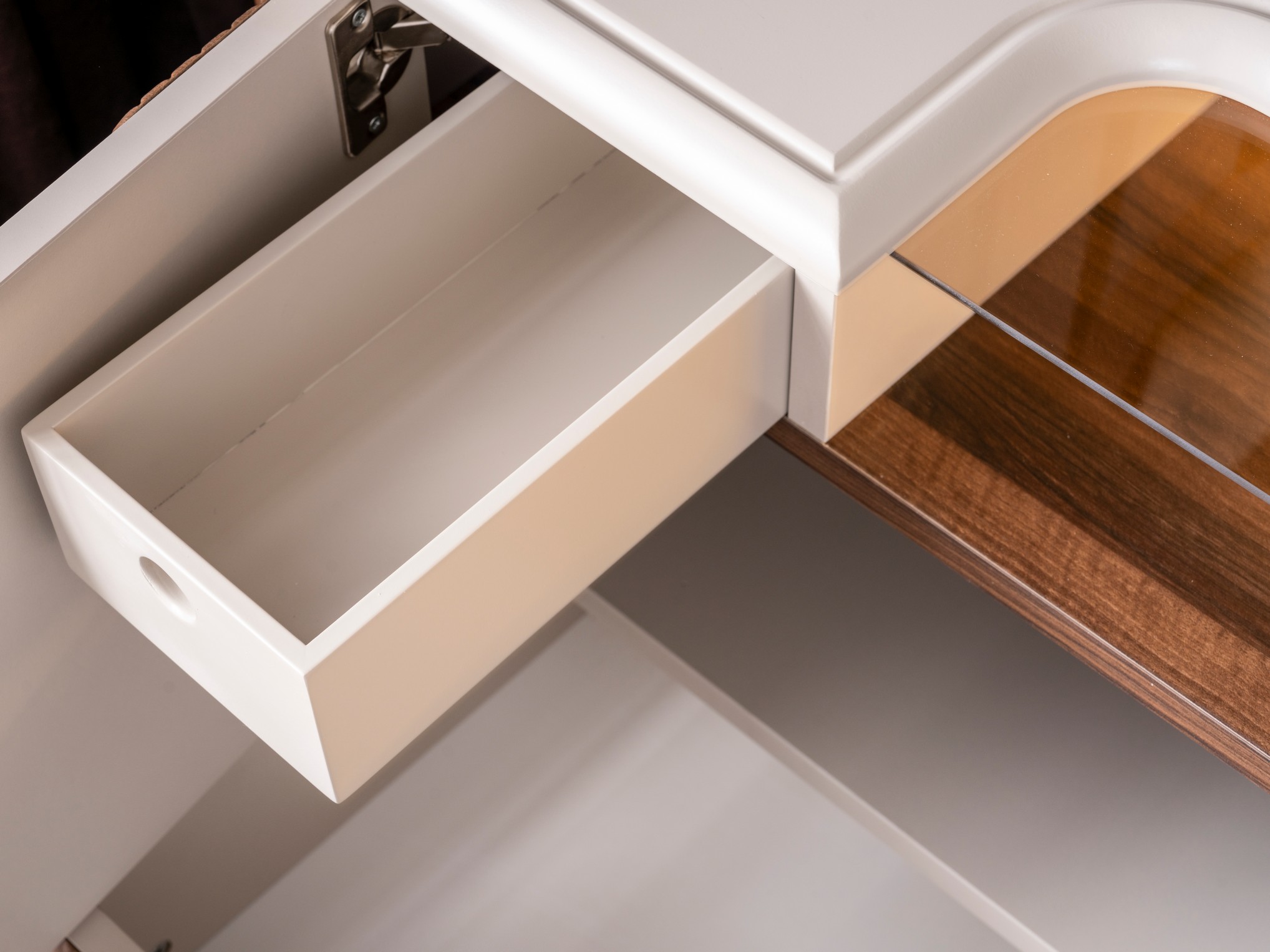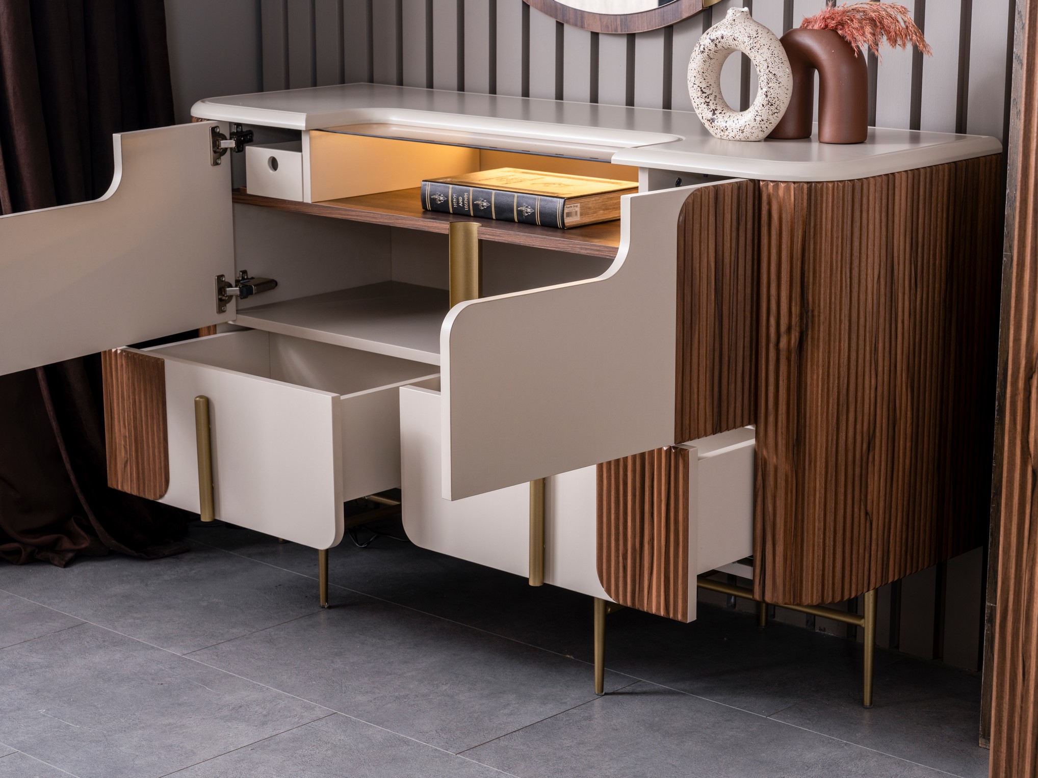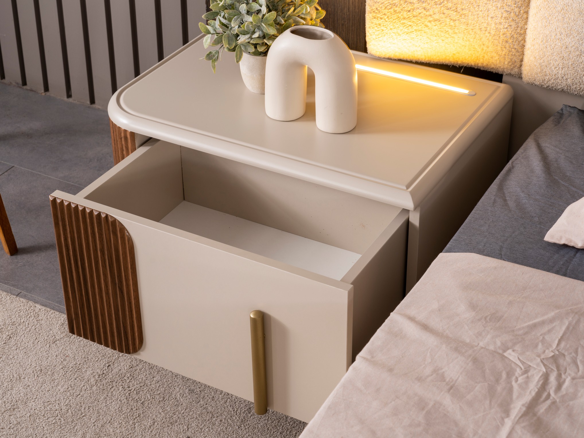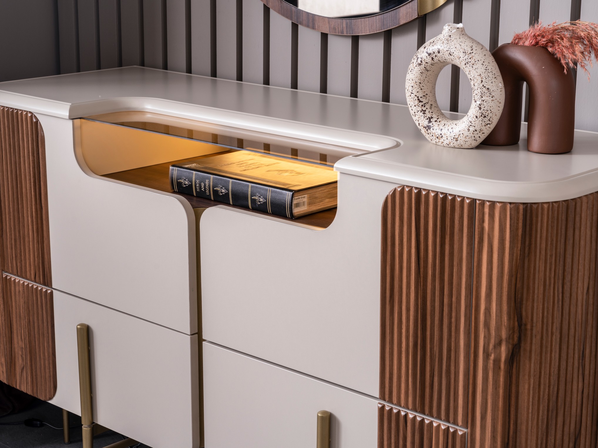 Bodrum Yatak Odası, Ege esintilerinden ilham alan tasarımıyla ferah ve huzurlu bir atmosfer sunar. Açık renk tonları ve doğal detayları, odanıza aydınlık ve rahatlatıcı bir görünüm kazandırır. Fonksiyonel depolama alanları ve kaliteli malzemeleriyle konforlu bir kullanım sağlar. Tatil havasını evine taşımak isteyenler için ideal bir yatak odası seçeneğidir.