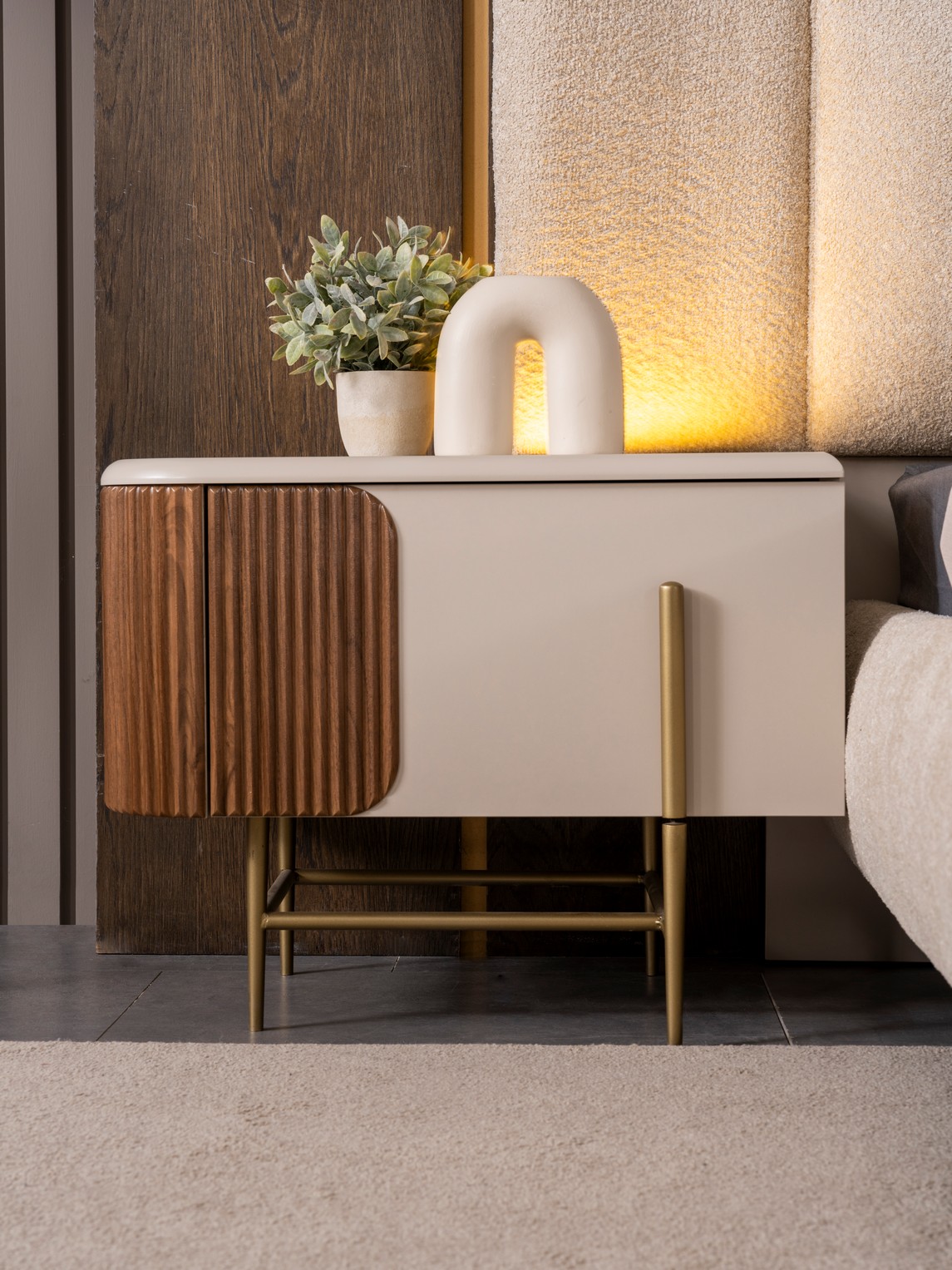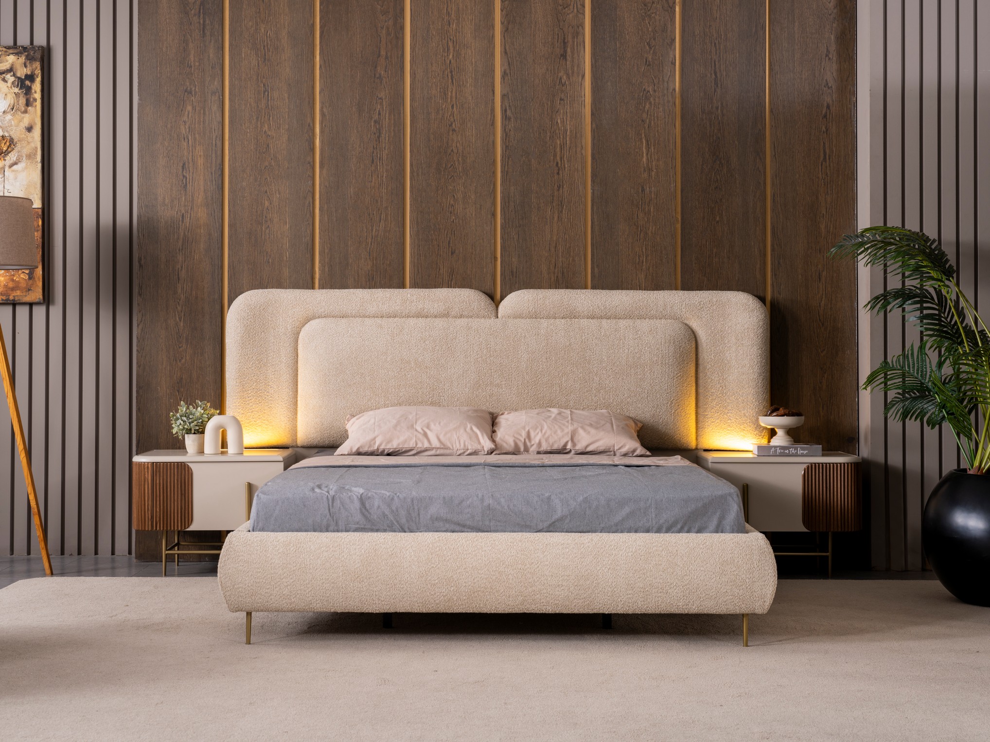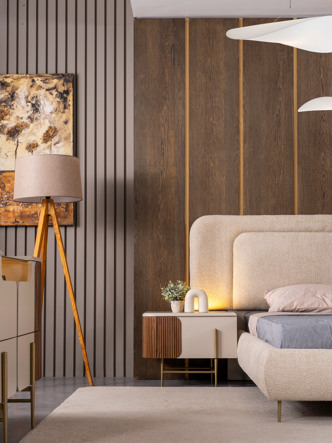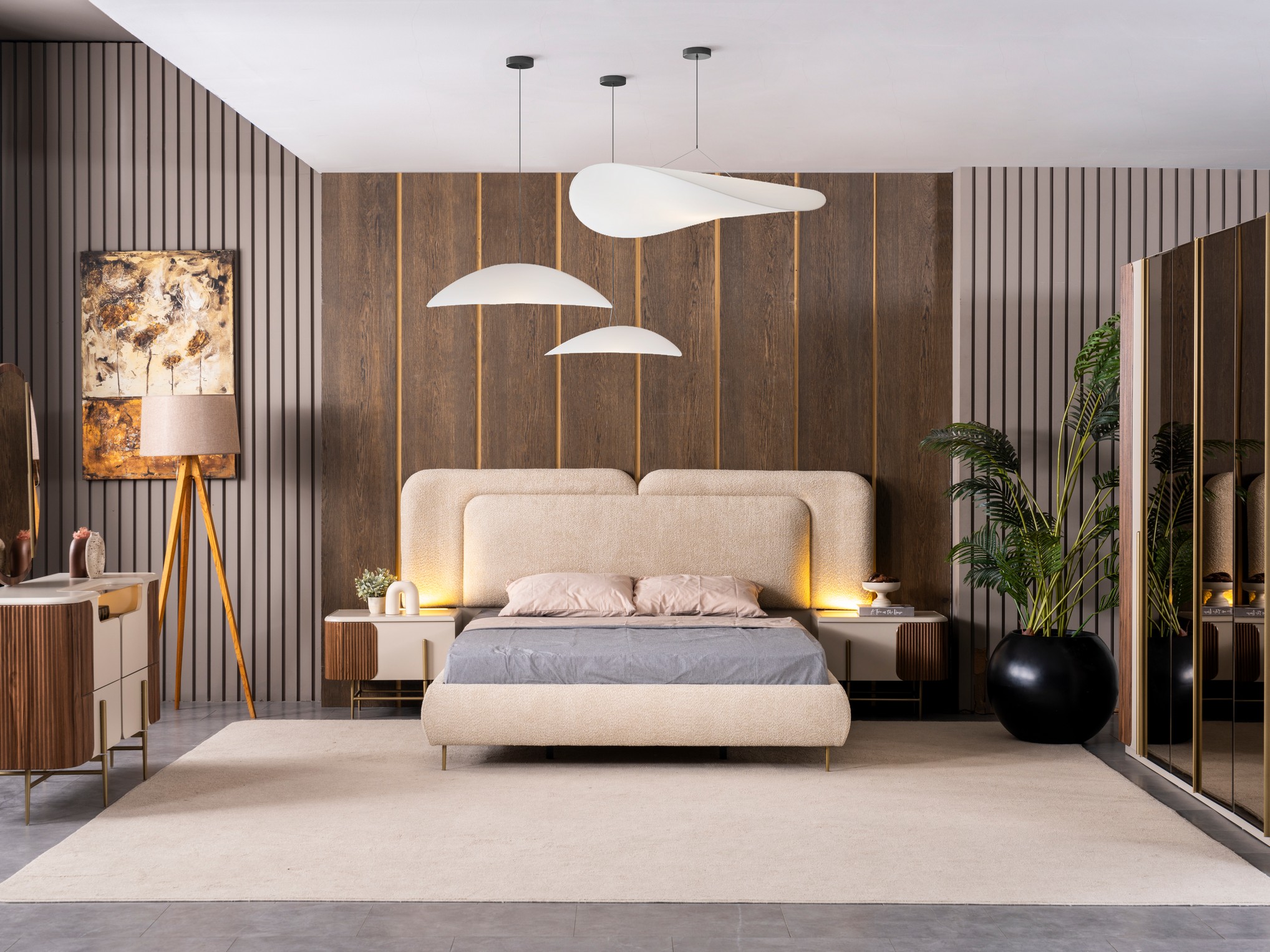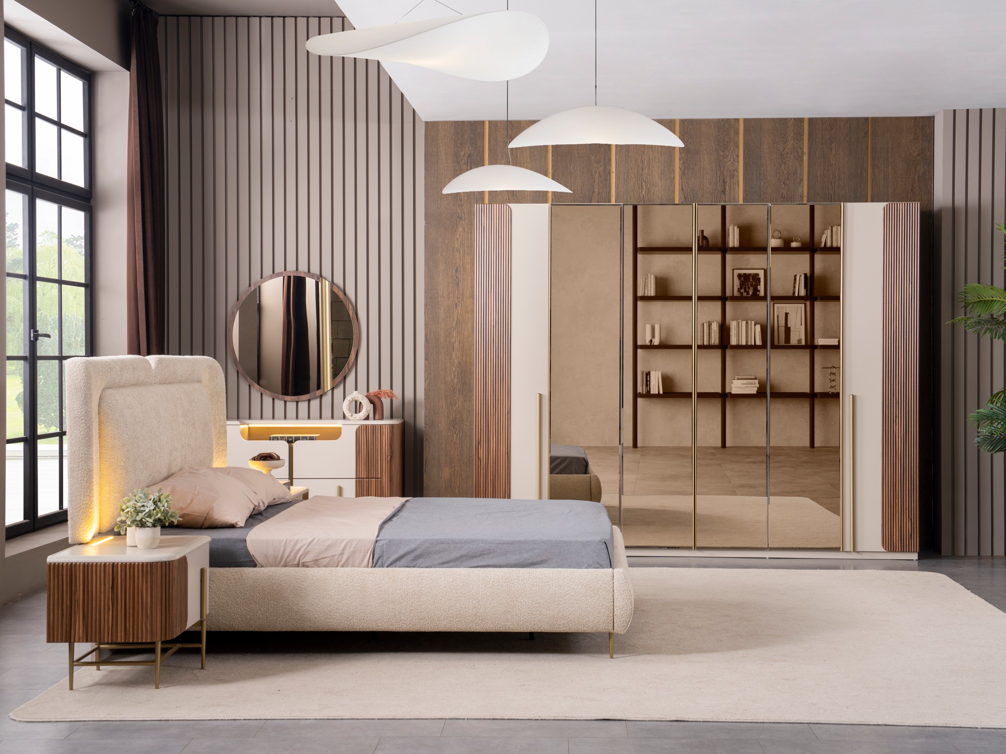 Asya Yatak Odası, sakin ve dengeli tasarım anlayışıyla huzurlu bir uyku alanı sunar. Doğal tonlar ve yumuşak geçişler, odanıza ferah ve sıcak bir atmosfer kazandırır. Fonksiyonel depolama çözümleri ve kaliteli malzemeleriyle uzun süreli konfor sağlar. Sadeliği ve zarafeti bir arada arayanlar için ideal bir tercihtir.