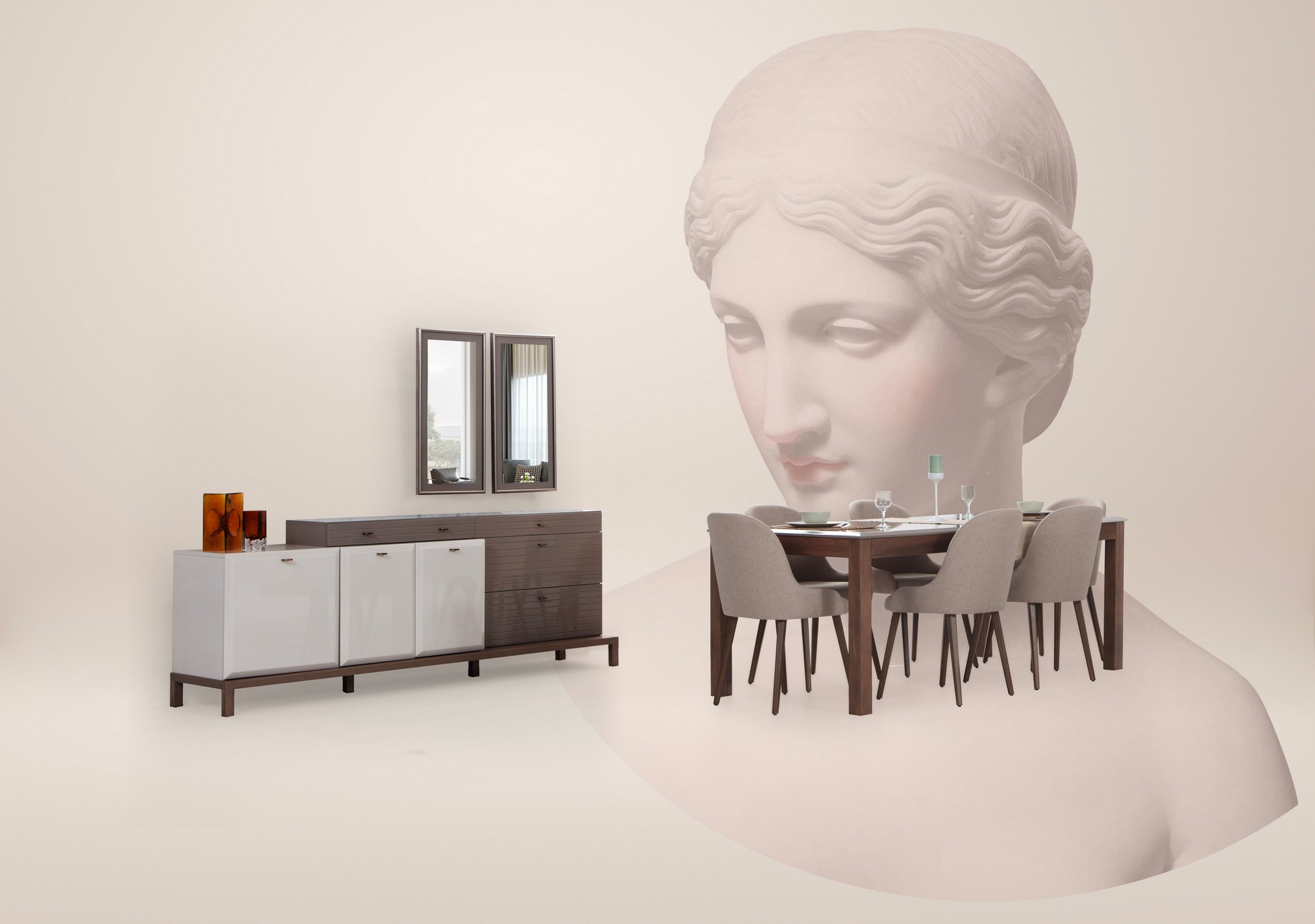 Atlas Yemek Odası, güçlü tasarım çizgilerini modern bir sadelikle birleştirerek mekâna dengeli ve sofistike bir görünüm kazandırır. Doğal dokuların sıcak etkisi, yemek alanınıza ferah ve huzurlu bir atmosfer sunar. Hem dayanıklılığı hem de şıklığıyla uzun yıllar keyifle kullanılabilecek bir takımdır.
