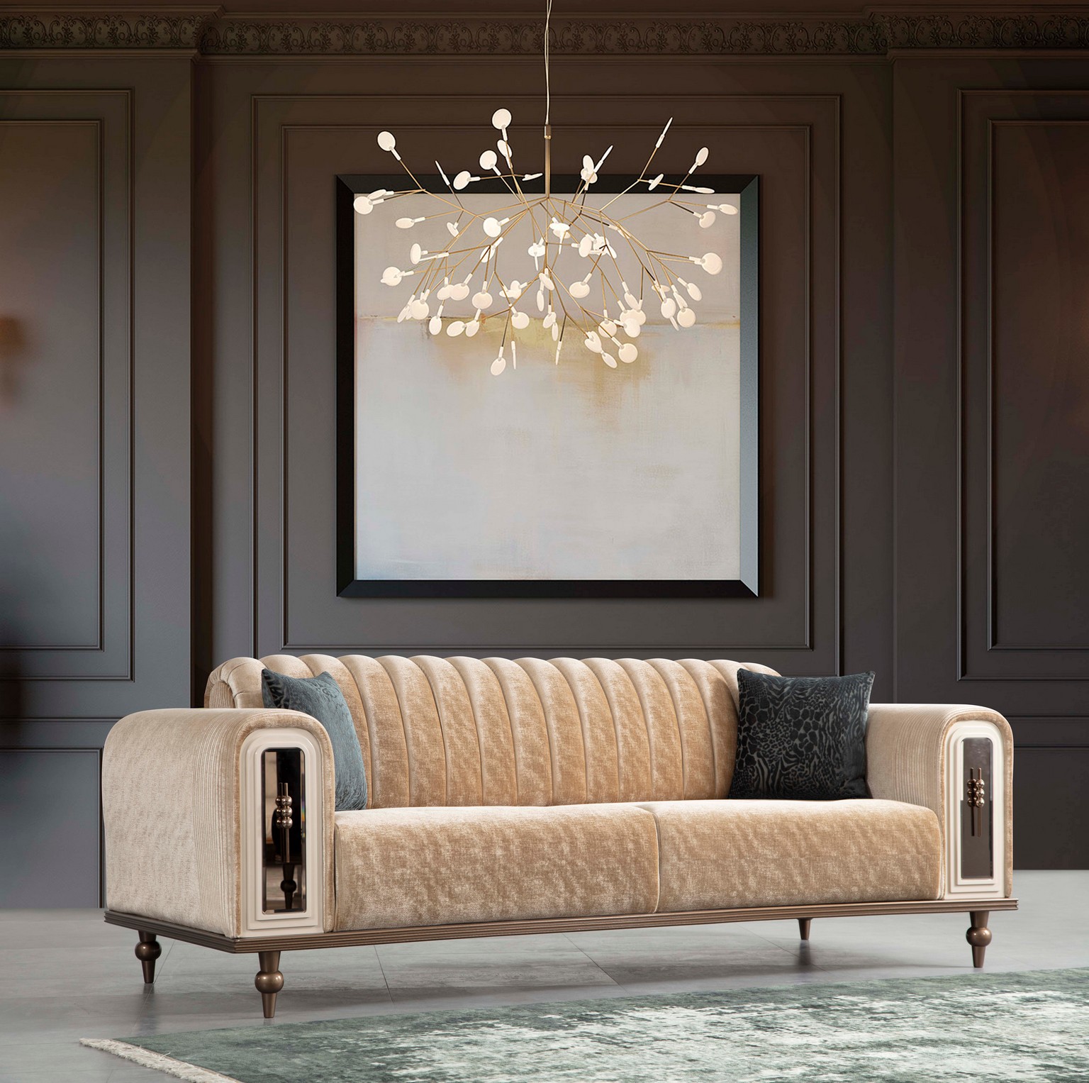 Ayasofya Koltuk Takımı, zarif ve etkileyici tasarımıyla salonuna tarihi bir zarafet ve estetik kazandırır. Konforlu oturum yapısı, uzun süreli kullanımlarda bile yüksek rahatlık sağlar. Estetik detayları, yaşam alanına sofistike ve dikkat çekici bir dokunuş ekler. Ayasofya ile evinde stil ve konfor doğal bir uyumla buluşur.