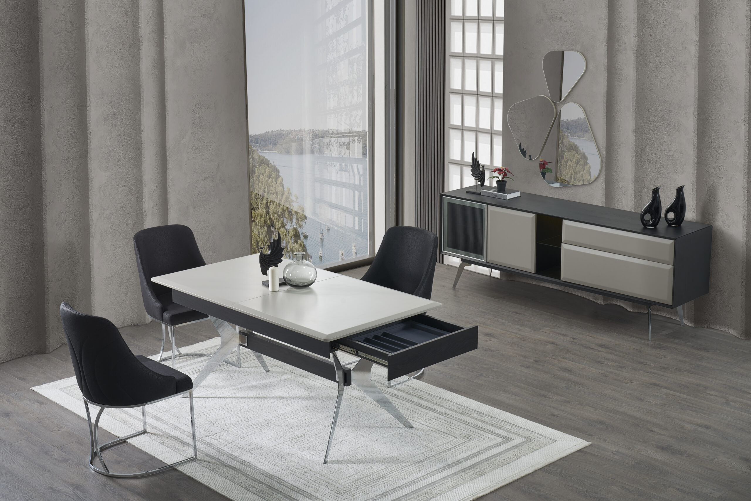 Karakter sahibi çizgileriyle öne çıkan Barcelona Yemek Odası, modern şıklığı güçlü bir duruşla birleştiriyor. Estetik detayları ve fonksiyonel yapısıyla yemek alanınıza şehirli, sofistike bir hava katıyor.