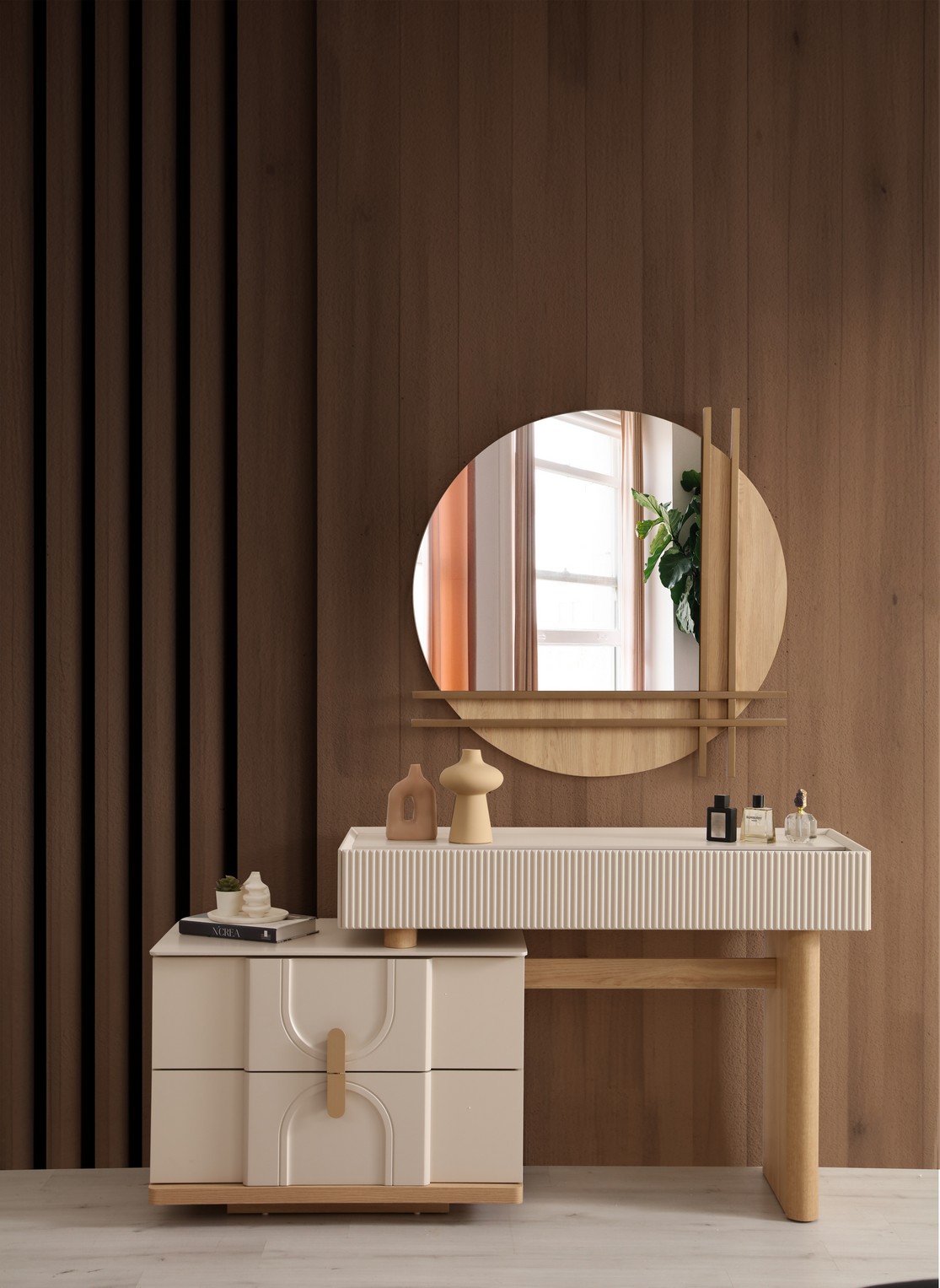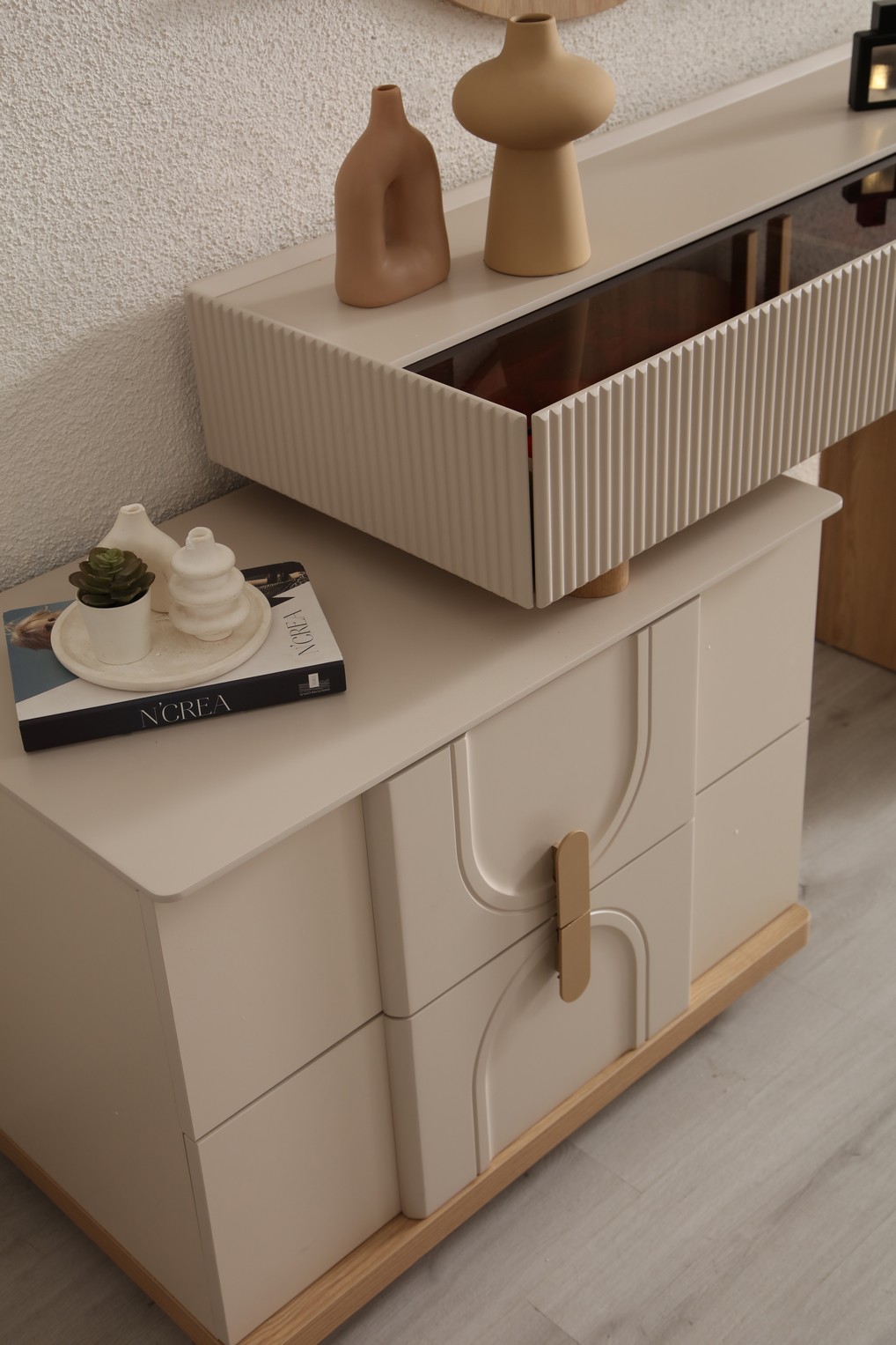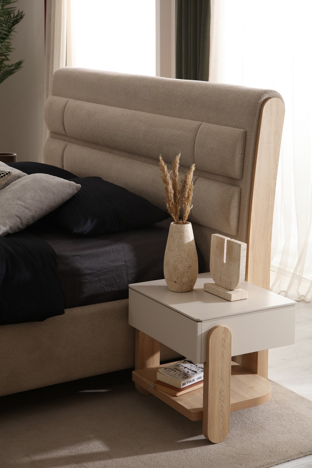 Shiba Yatak Odası, modern tasarımı sıcak ve doğal detaylarla birleştirerek davetkâr bir atmosfer sunar. Dengeli renk tonları ve sade çizgileri, odanıza ferah ve huzurlu bir görünüm kazandırır. Fonksiyonel depolama alanları ve kaliteli malzemeleriyle konforlu ve pratik bir kullanım sağlar. Doğallık ve modernliği bir arada sevenler için ideal bir tercihtir.