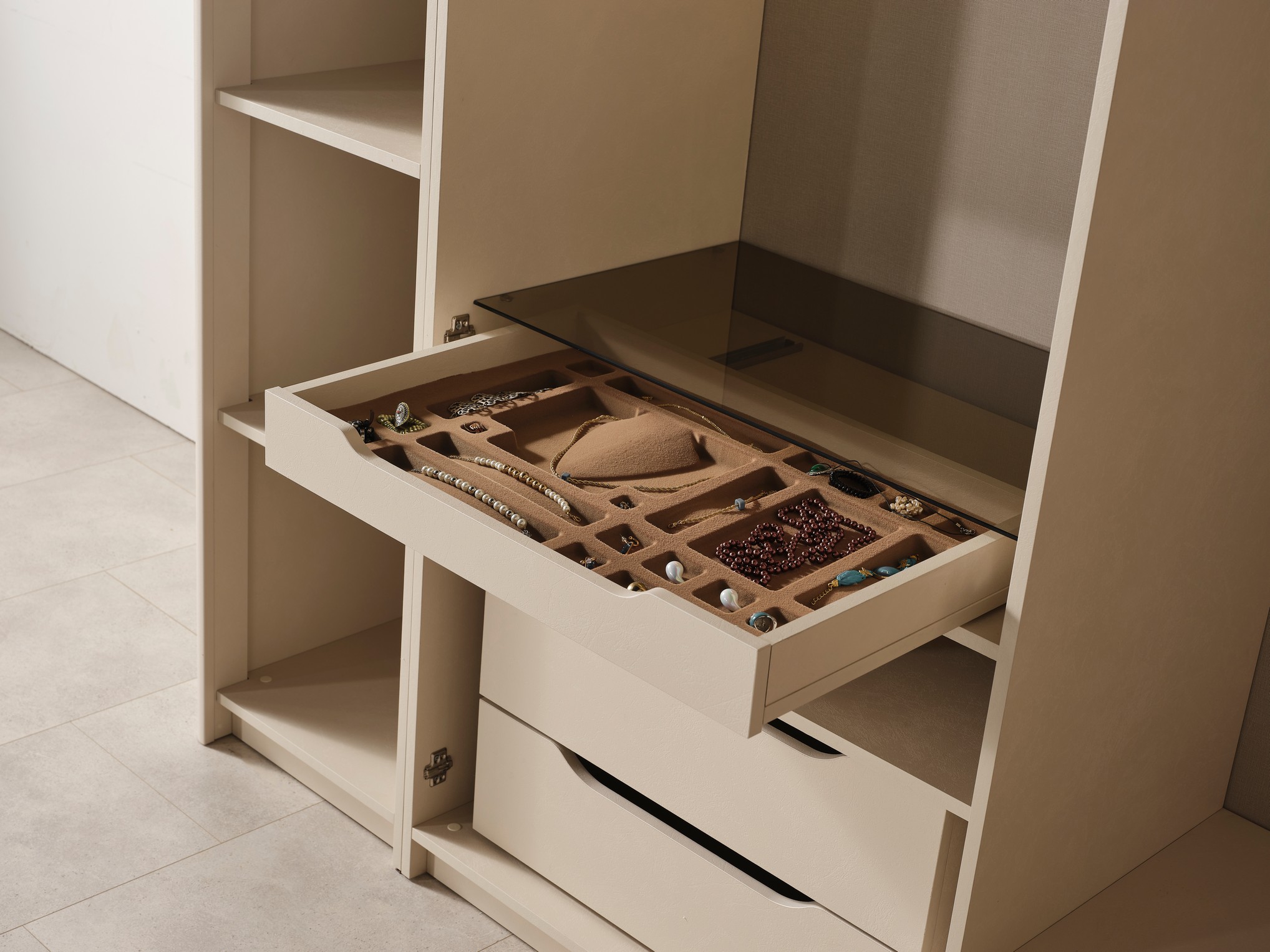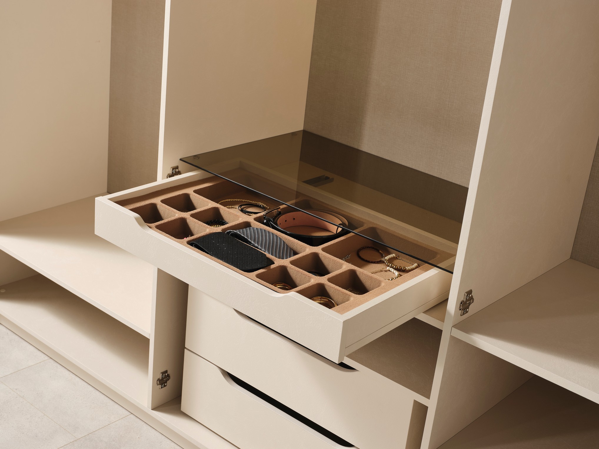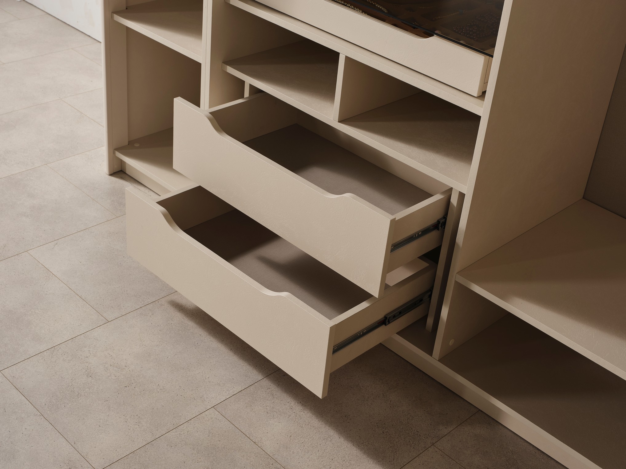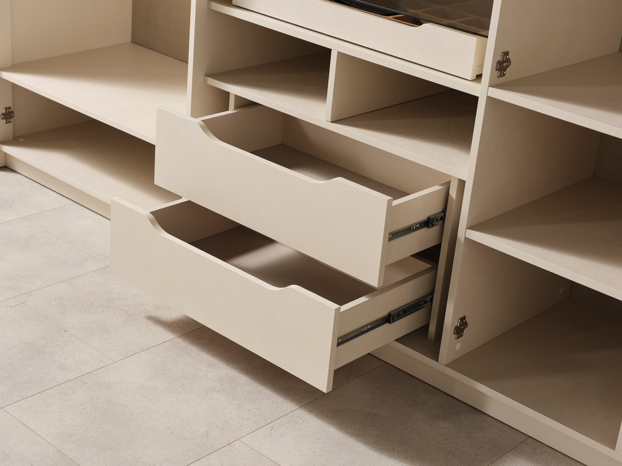 Bodrum Yatak Odası, Ege esintilerinden ilham alan tasarımıyla ferah ve huzurlu bir atmosfer sunar. Açık renk tonları ve doğal detayları, odanıza aydınlık ve rahatlatıcı bir görünüm kazandırır. Fonksiyonel depolama alanları ve kaliteli malzemeleriyle konforlu bir kullanım sağlar. Tatil havasını evine taşımak isteyenler için ideal bir yatak odası seçeneğidir.