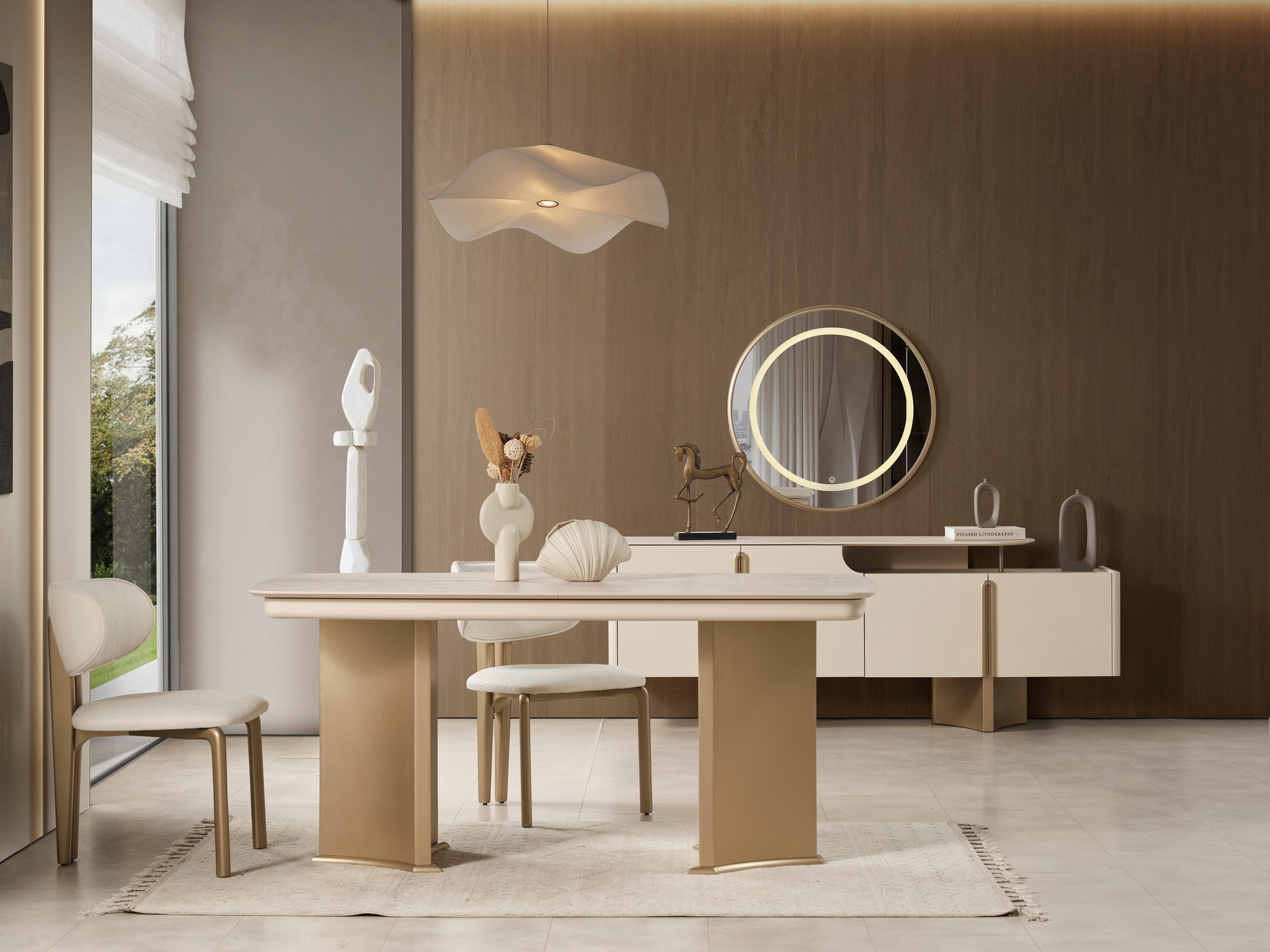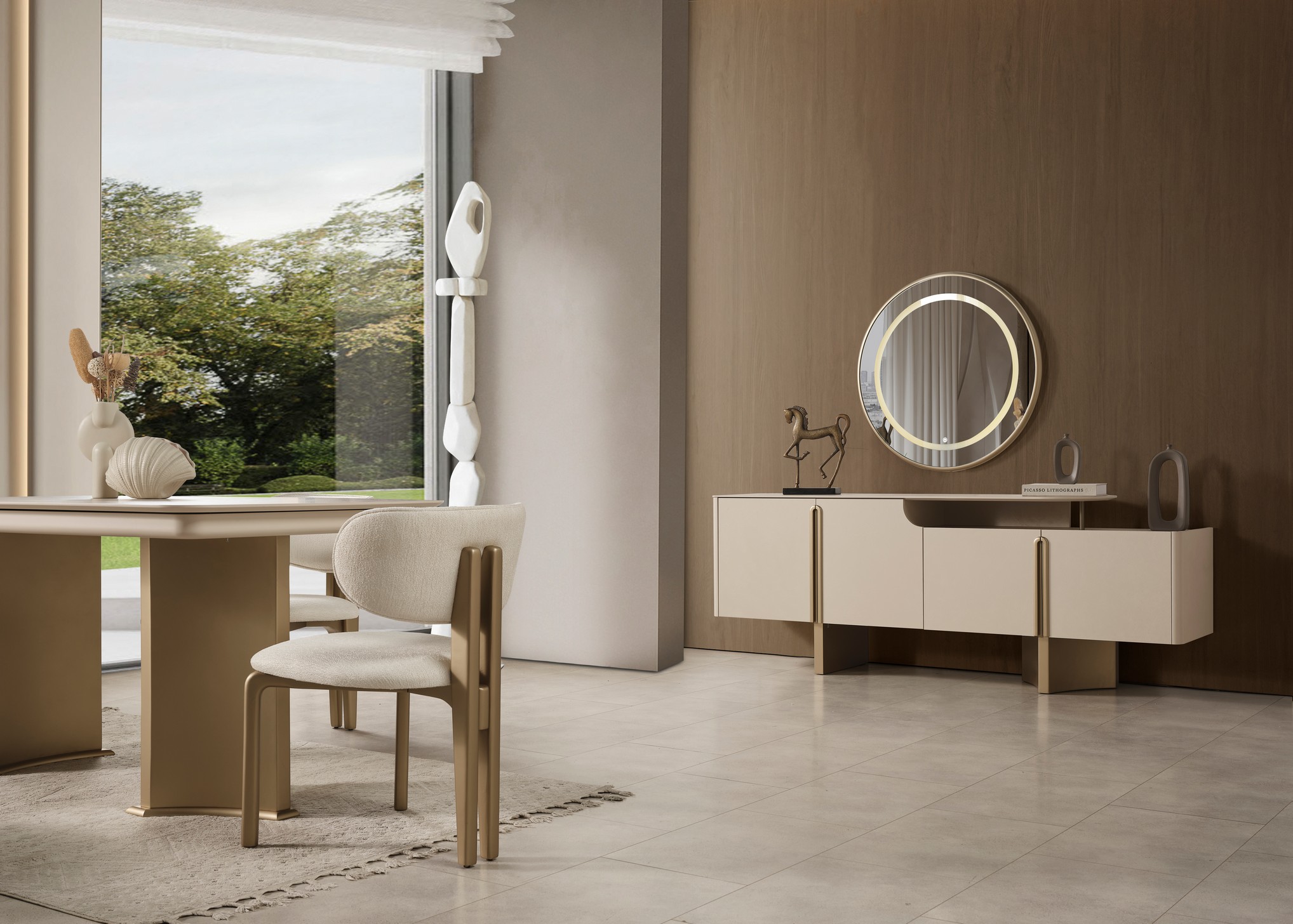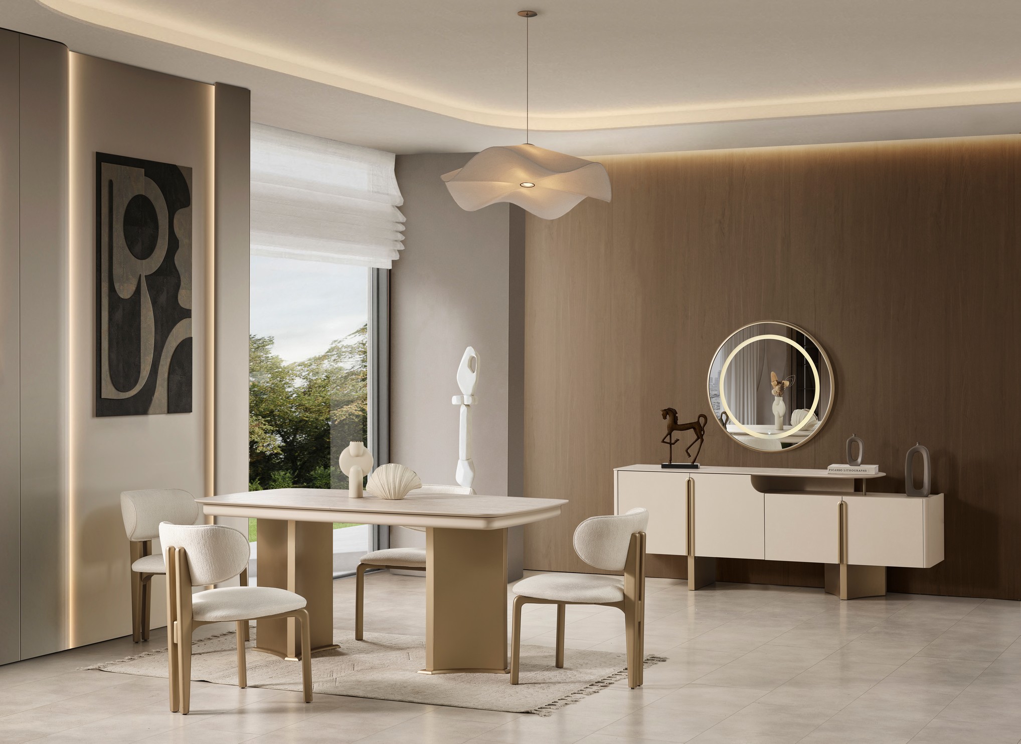 Bodrum Yemek Odası, modern zarafet ile doğal sıcaklığı bir araya getiren özel bir tasarımdır. Ferah tonlarıyla yaşam alanınıza aydınlık bir atmosfer kazandırır. İnce detayları ve yüksek kullanım konforu sayesinde hem günlük yemeklerde hem de özel davetlerde ideal bir deneyim sunar. Mekânınıza Akdeniz’in dingin ruhunu taşıyan şık bir tercihtir.