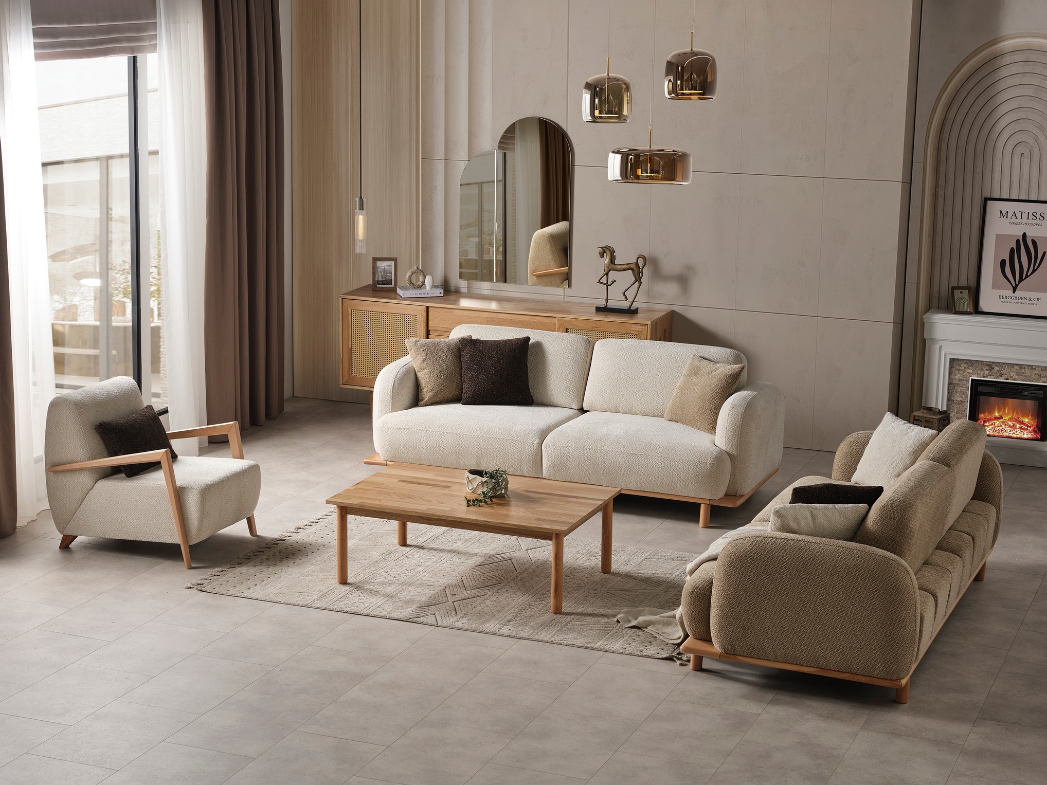 Natura Koltuk Takımı, doğal dokular ve yumuşak tonların modern tasarımla buluştuğu rahat bir oturma grubu sunar. Konfor odaklı minderleri ve ergonomik yapısıyla uzun süreli dinlenme anlarında bile üstün rahatlık sağlar. Uyumlu renk paleti ve sade detayları, yaşam alanınıza huzurlu ve estetik bir atmosfer kazandırır. Doğallığı ve konforu bir arada arayanlar için ideal bir koltuk takımı tercihidir.