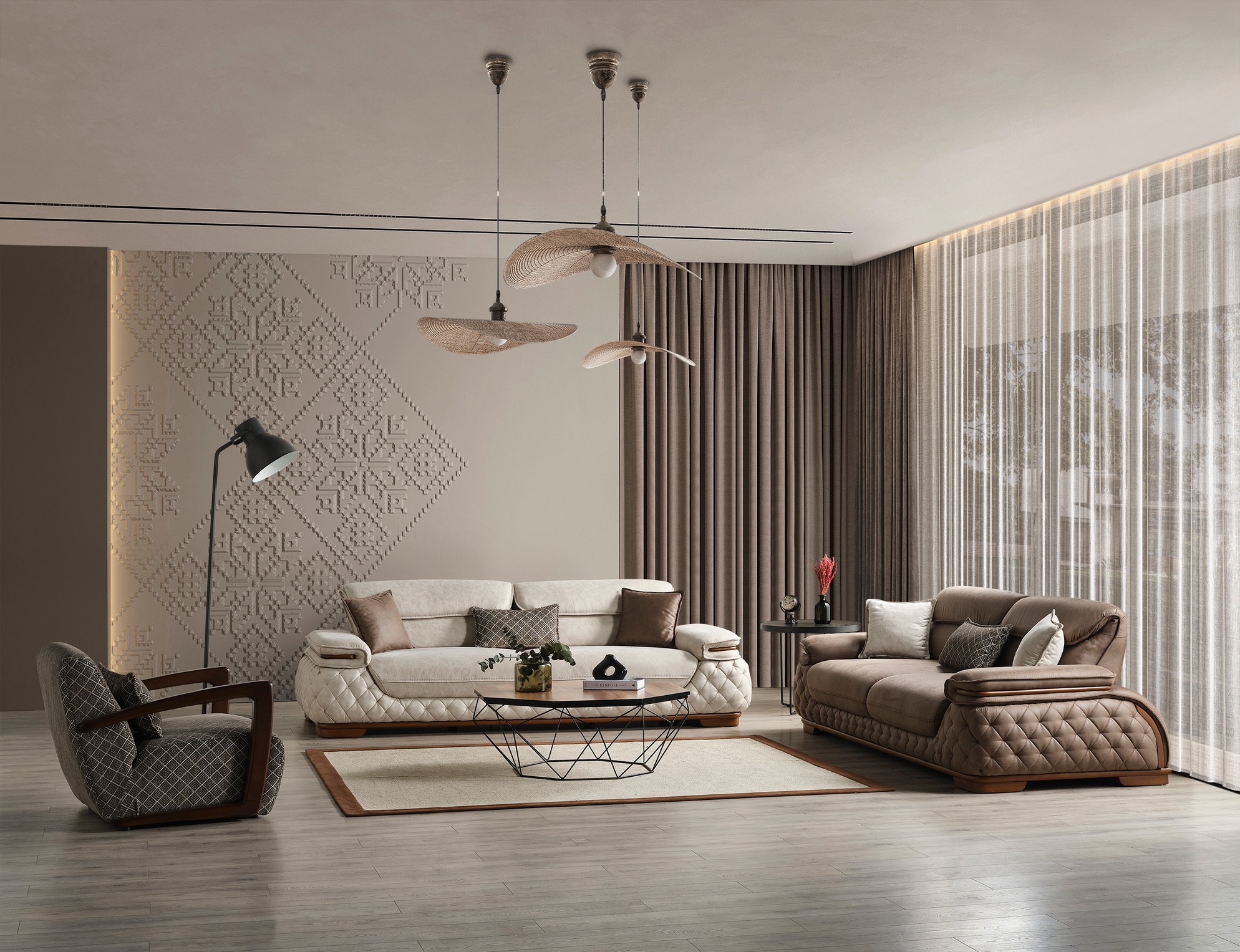 Keops Koltuk Takımı, modern çizgileri zarif detaylarla birleştirerek oturma alanınıza etkileyici bir duruş kazandırır. Yumuşak minder yapısı ve ergonomik tasarımı, uzun süreli kullanımda üstün bir konfor sağlar. Uyumlu renk tonları ve şık detayları, salonunuza sofistike ve davetkâr bir atmosfer katarken farklı dekorasyon stilleriyle kolay uyum sağlar. Konfor ve estetiği bir arada arayanlar için ideal bir koltuk takımıdır.