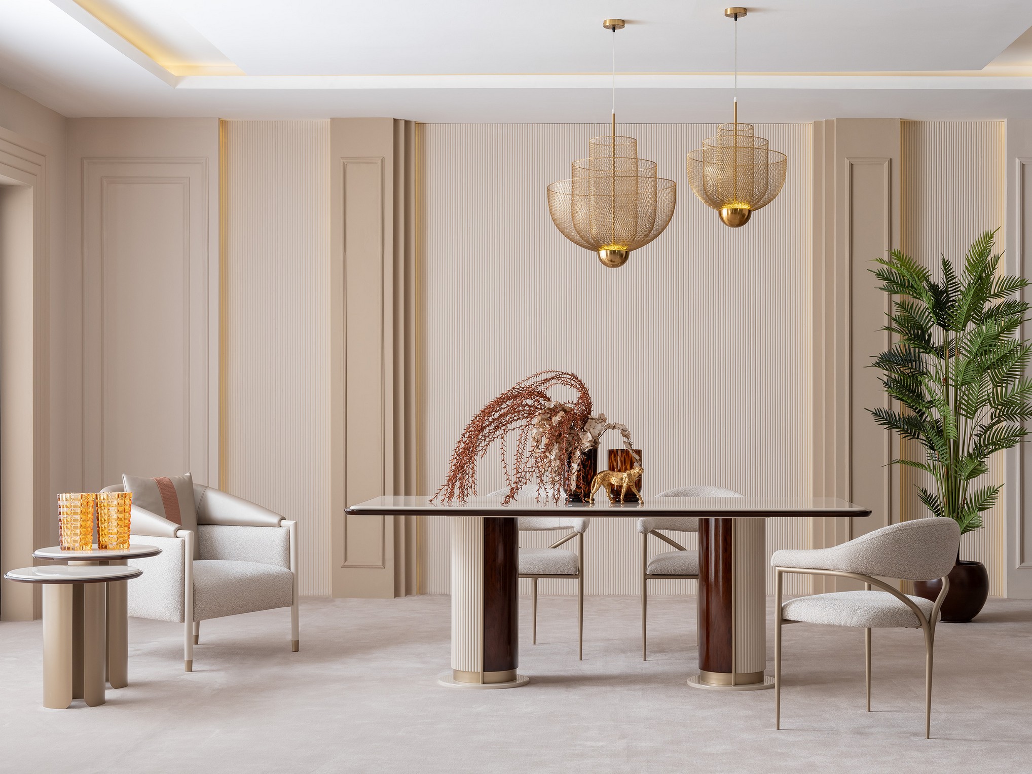 Braga Yemek Odası, modern çizgilerini doğal sıcaklıkla buluşturan karakterli bir tasarıma sahiptir. Dokularındaki derinlik ve renk uyumu, sofralarınıza sakin ama etkileyici bir atmosfer kazandırır. Zamansız şıklığıyla mekâna güçlü bir duruş katan Braga, her buluşmayı keyifli ve unutulmaz bir deneyime dönüştürür.