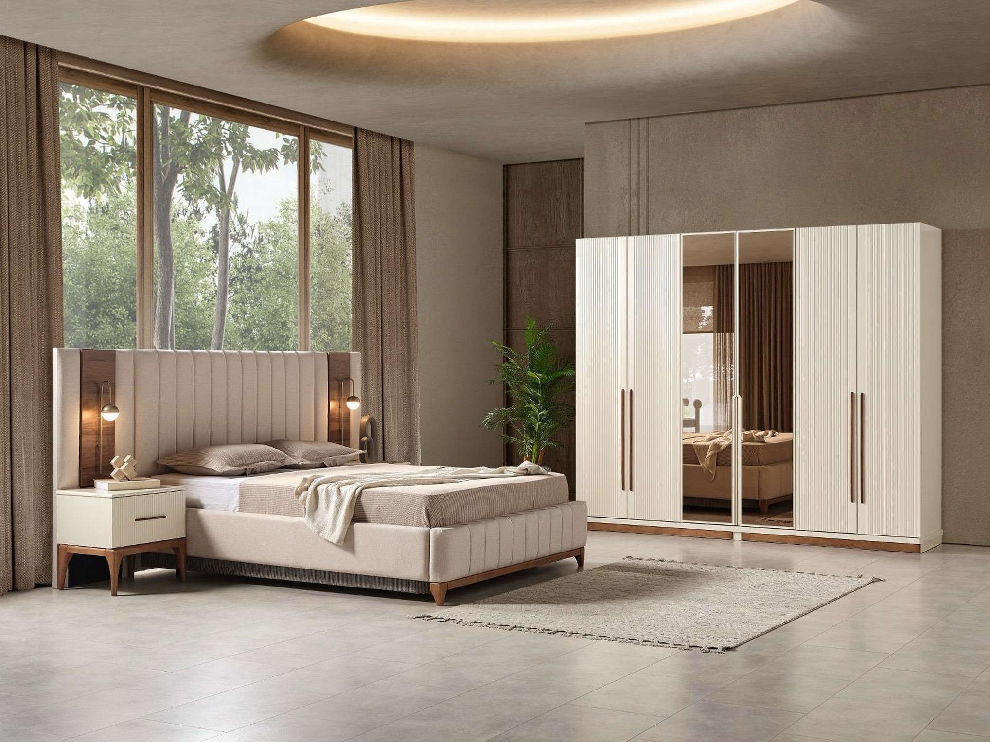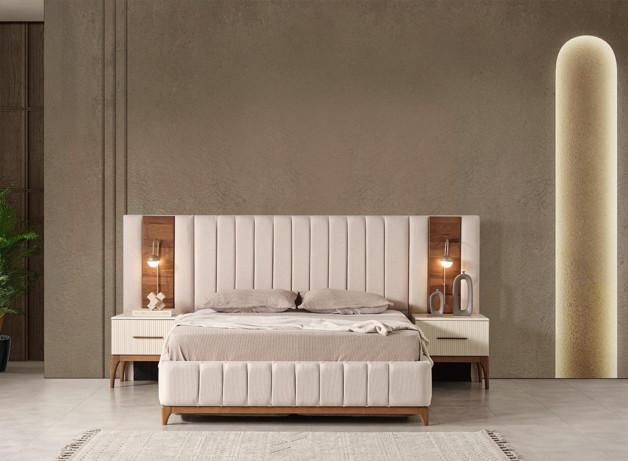 Bonita Yatak Odası, modern tasarımı sıcak ve zarif detaylarla buluşturarak davetkâr bir atmosfer oluşturur. Yumuşak renk geçişleri ve akıcı çizgileri, odanıza ferah ve estetik bir görünüm kazandırır. Fonksiyonel dolap ve şık tamamlayıcı parçalarıyla hem konfor hem de kullanım kolaylığı sunar. Rahatlığı ve şıklığı bir arada isteyenler için ideal bir tercihtir.