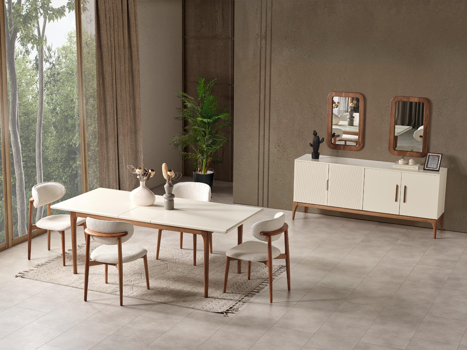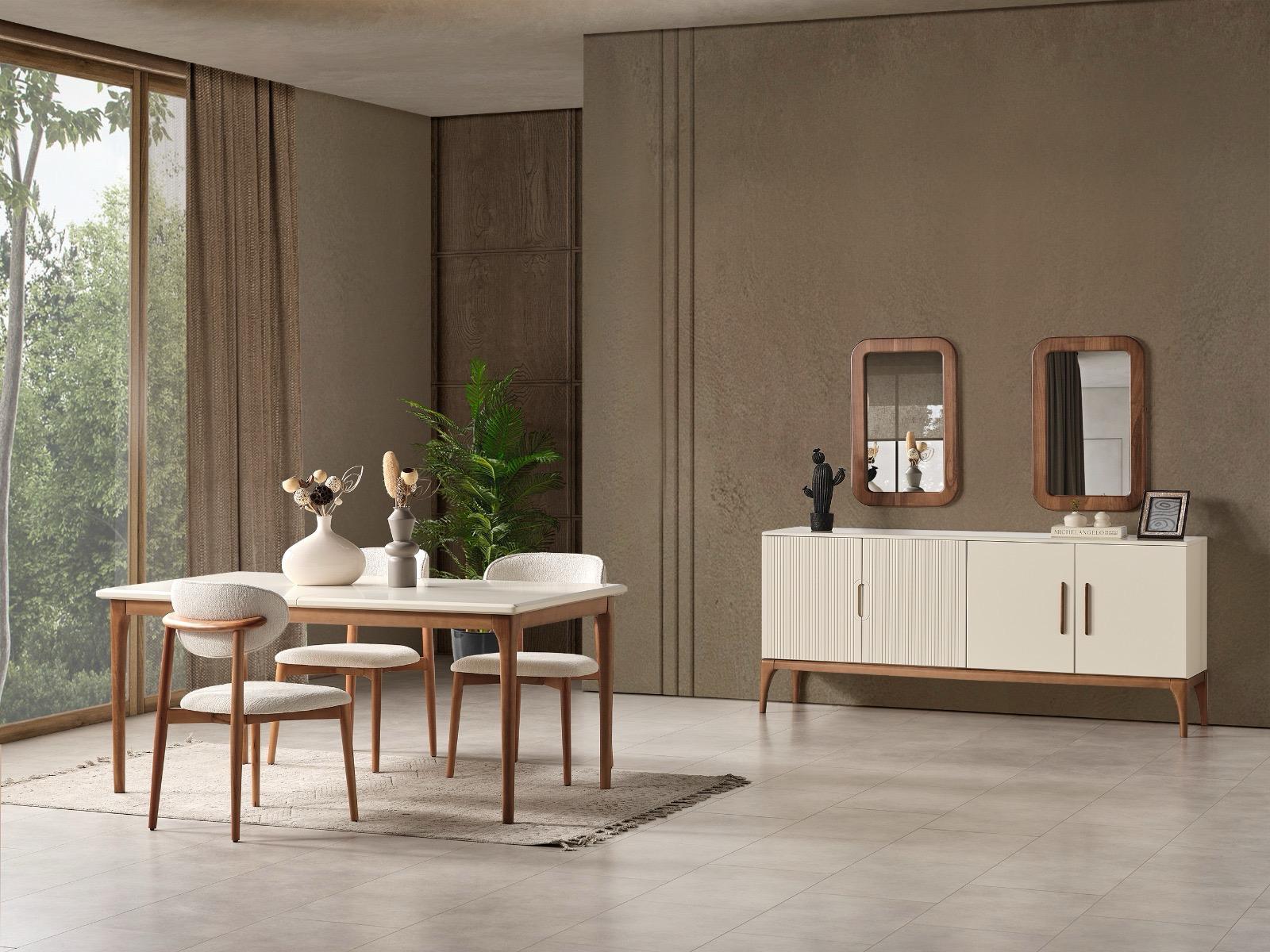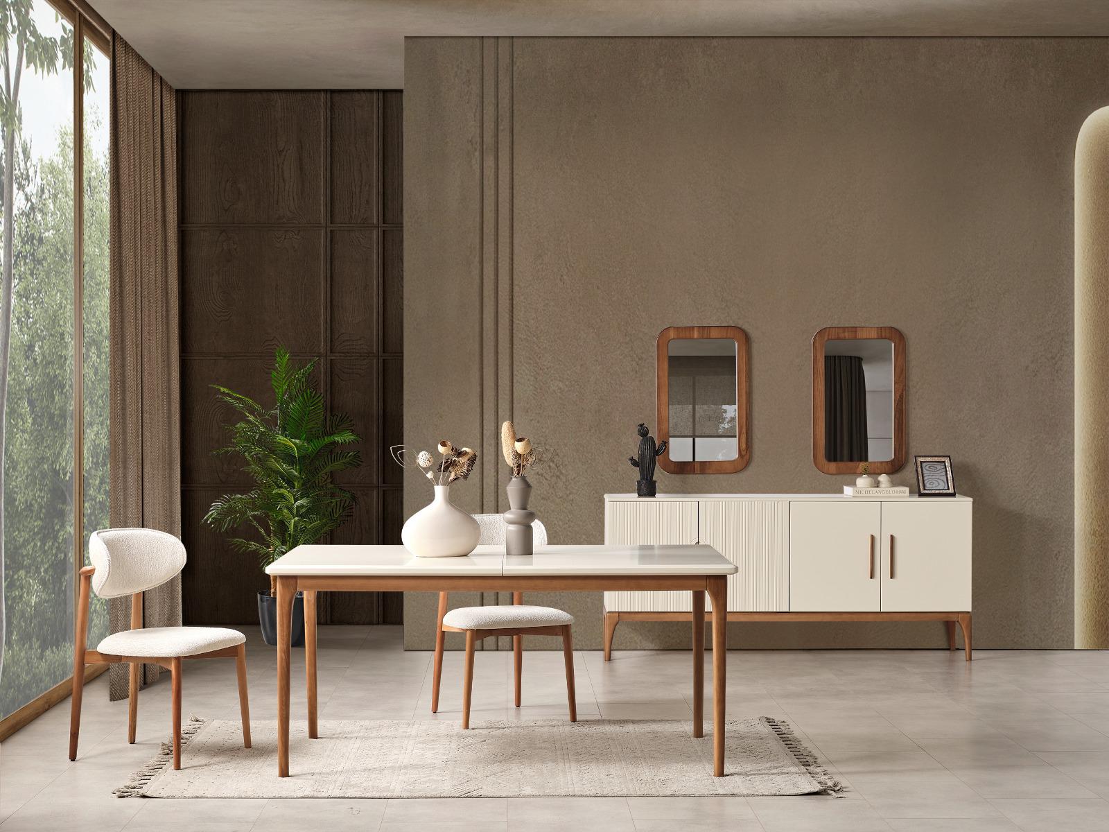 Elit Yemek Odası, sofistike çizgileri ve zarif detaylarıyla sofralarınıza ayrıcalıklı bir şıklık katar. Modern tasarımı, mekânınıza ferah ve davetkar bir atmosfer getirir. Fonksiyonel yapısı, hem günlük kullanımda hem de özel davetlerde konfor sağlar. Her yemeği unutulmaz bir deneyime dönüştüren estetik bir tercih sunar.