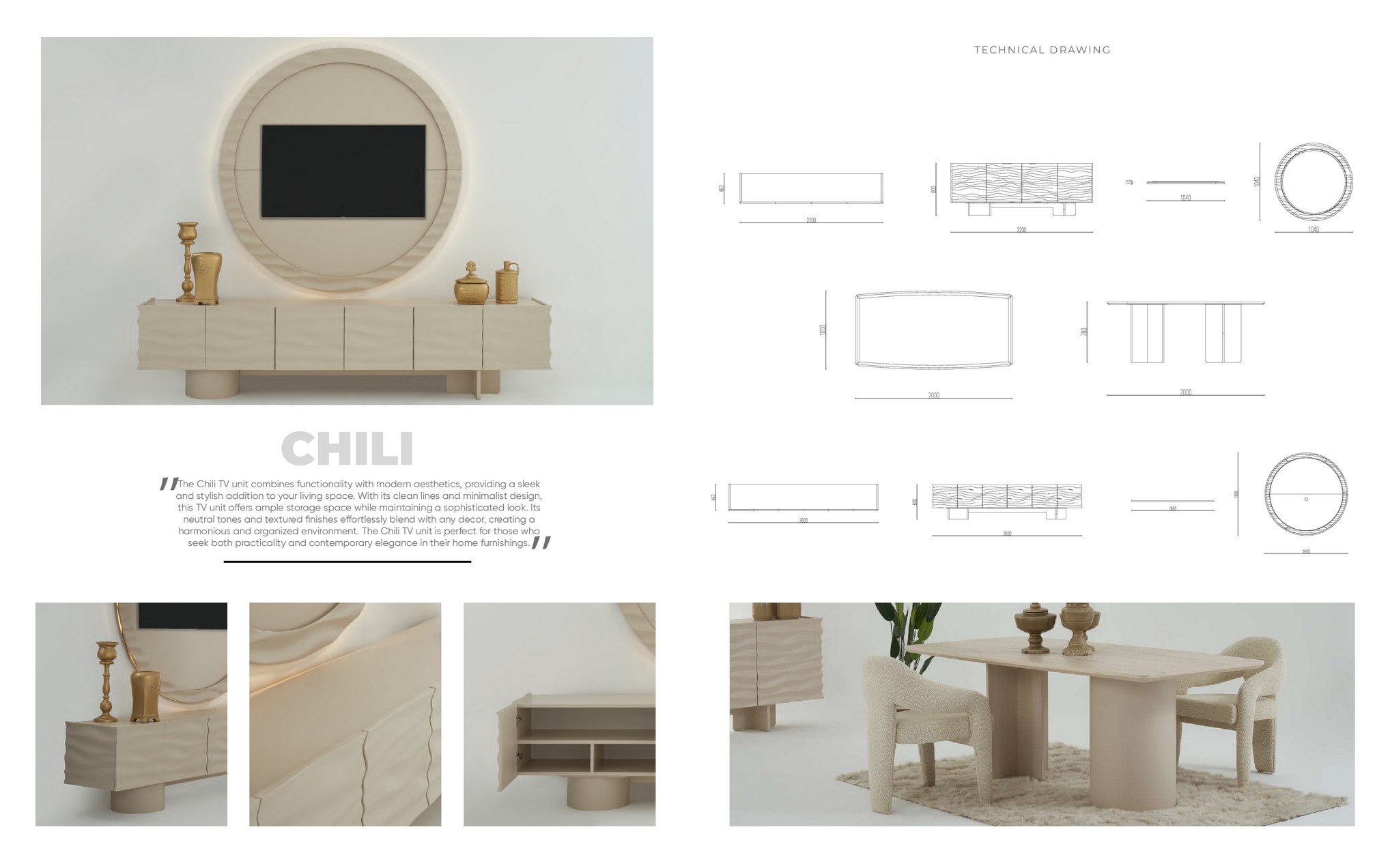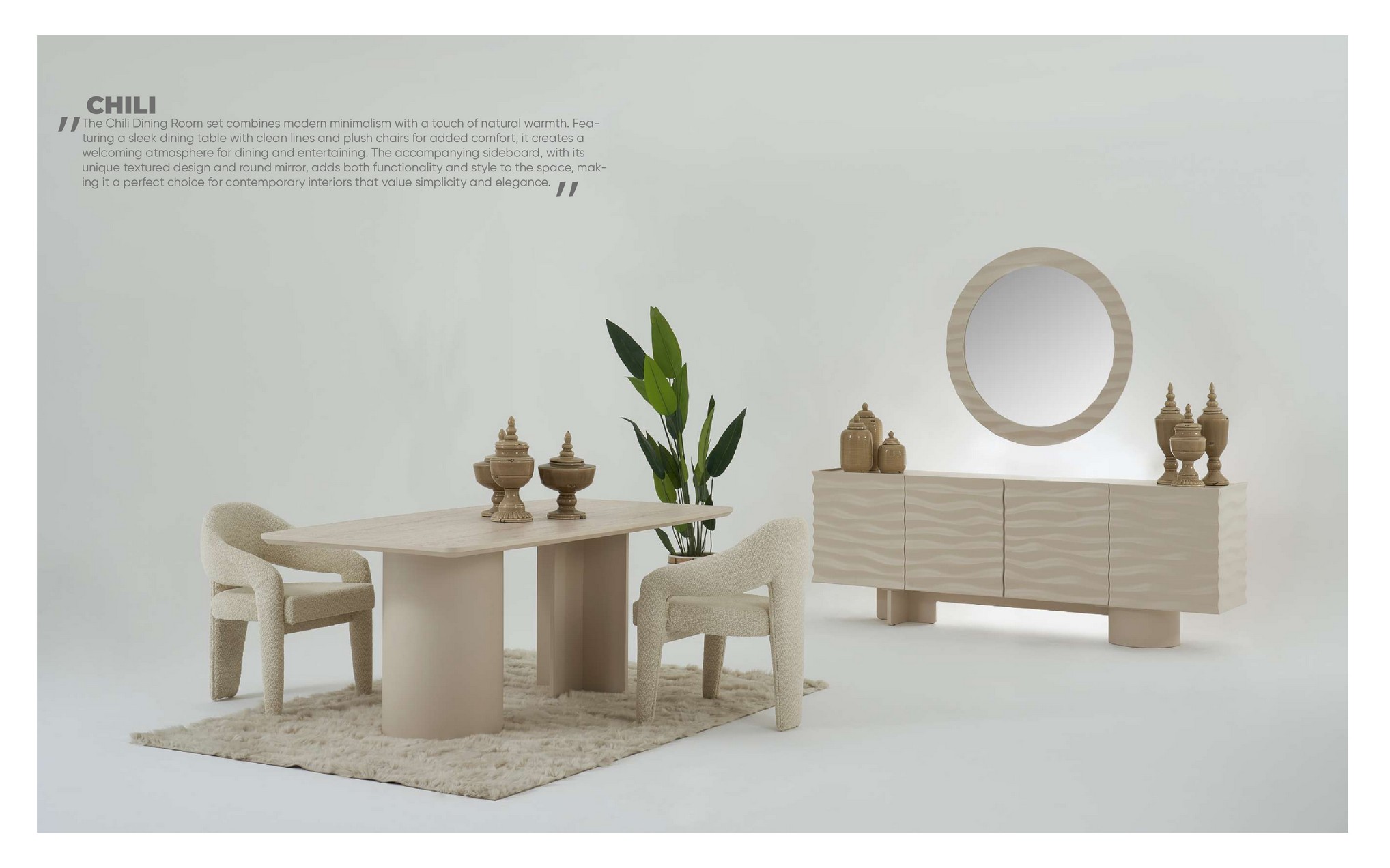 Chili Yemek Odası, canlı renk dokunuşları ve modern tasarımıyla mekâna enerjik bir hava katar. Fonksiyonel detayları sayesinde hem günlük kullanımda hem de özel davetlerde büyük rahatlık sunar. Şık ve dengeli çizgileri, yemek alanınızı sıcak ve davetkâr bir ortam hâline getirir. Estetik ve kullanışlılığı bir arada sunan ideal bir tercihtir.