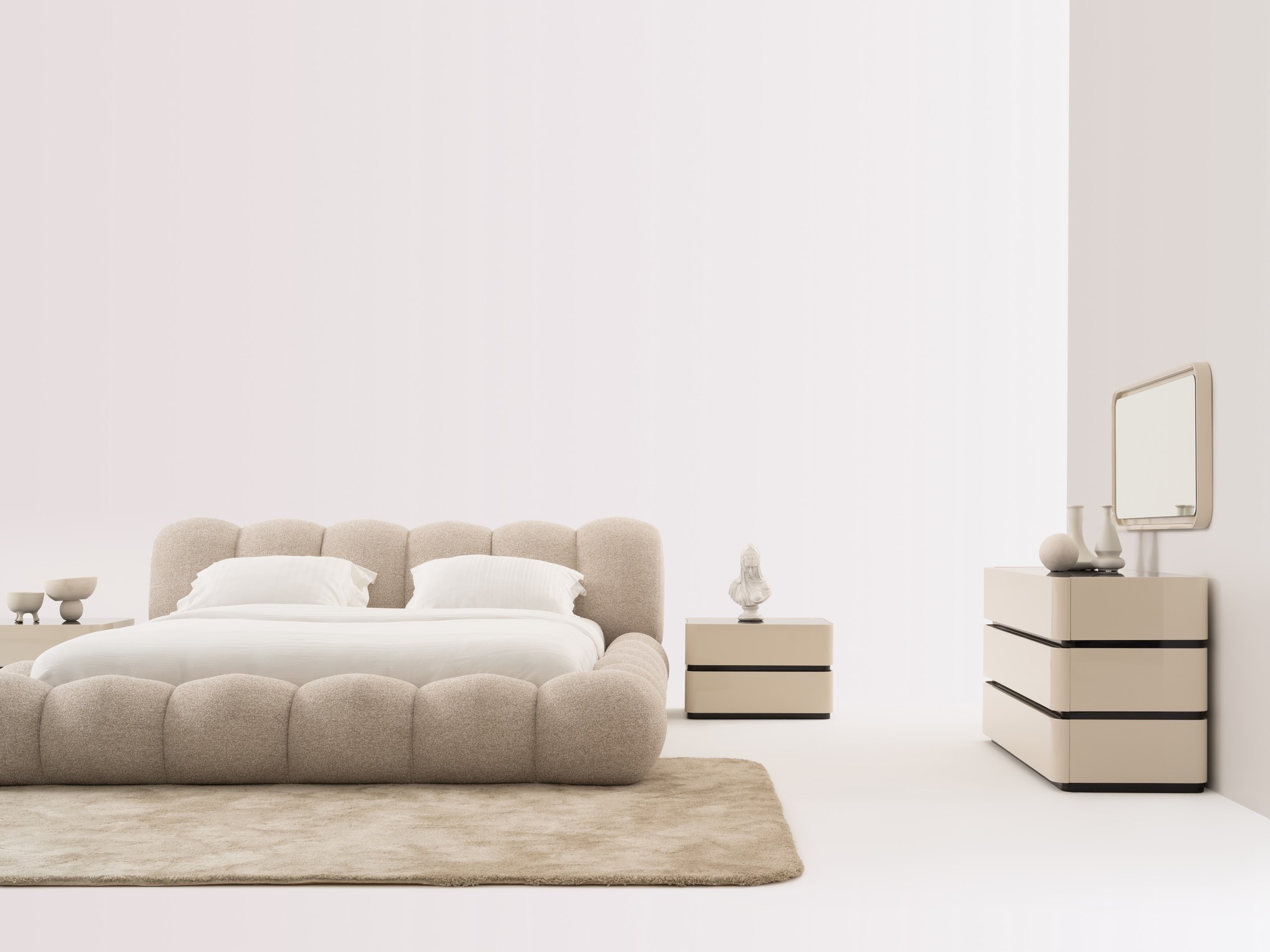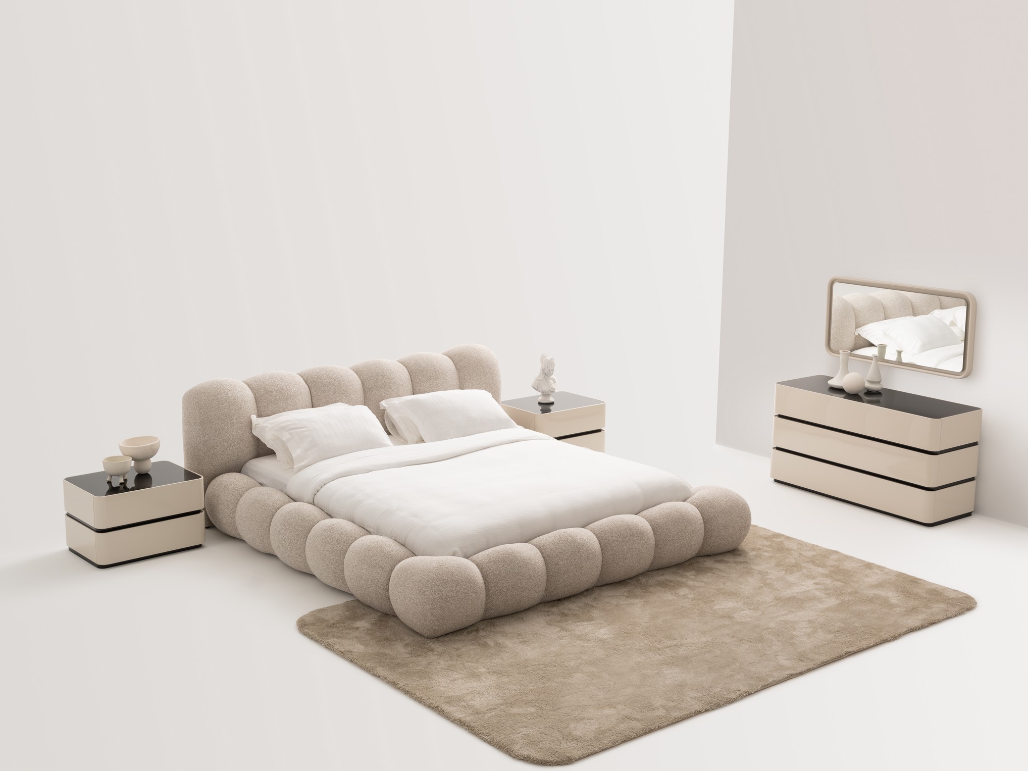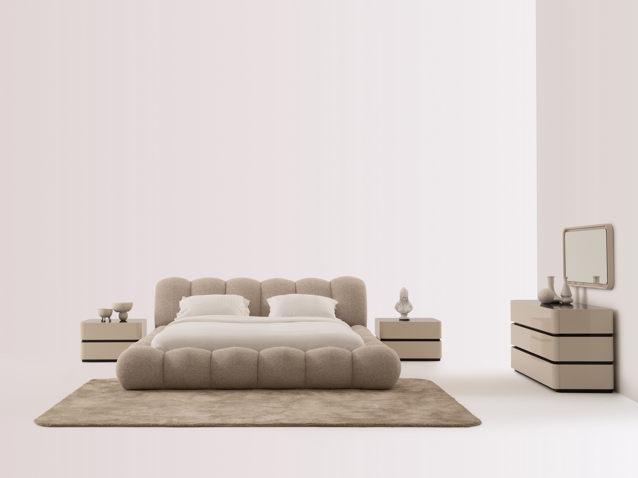 Coco Dream Yatak Odası, modern tasarımı yumuşak ve sıcak detaylarla birleştirerek huzurlu bir dinlenme alanı sunar. Yumuşak renk tonları ve dengeli çizgileri, odanıza ferah ve estetik bir atmosfer kazandırır. Fonksiyonel depolama çözümleri ve kaliteli malzemeleriyle konforlu bir kullanım sağlar. Sakinlik ve zarafeti bir arada arayanlar için ideal bir yatak odası seçimidir.