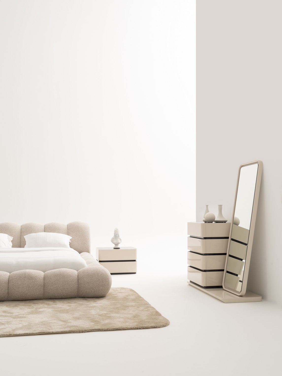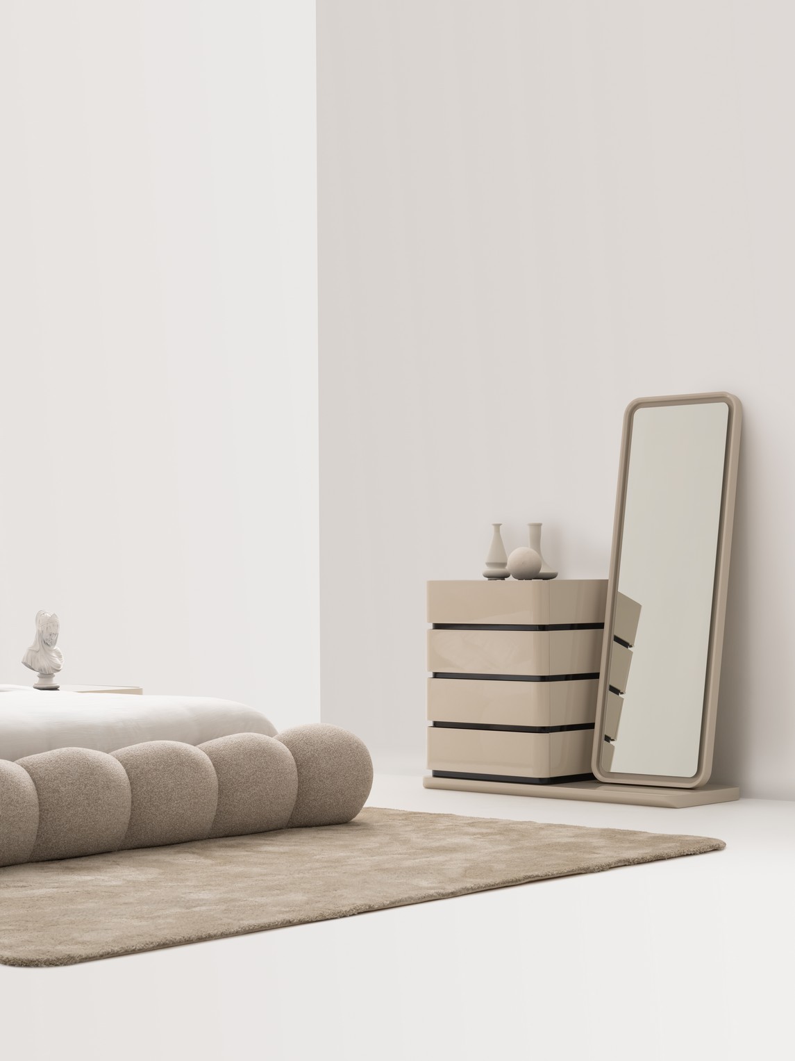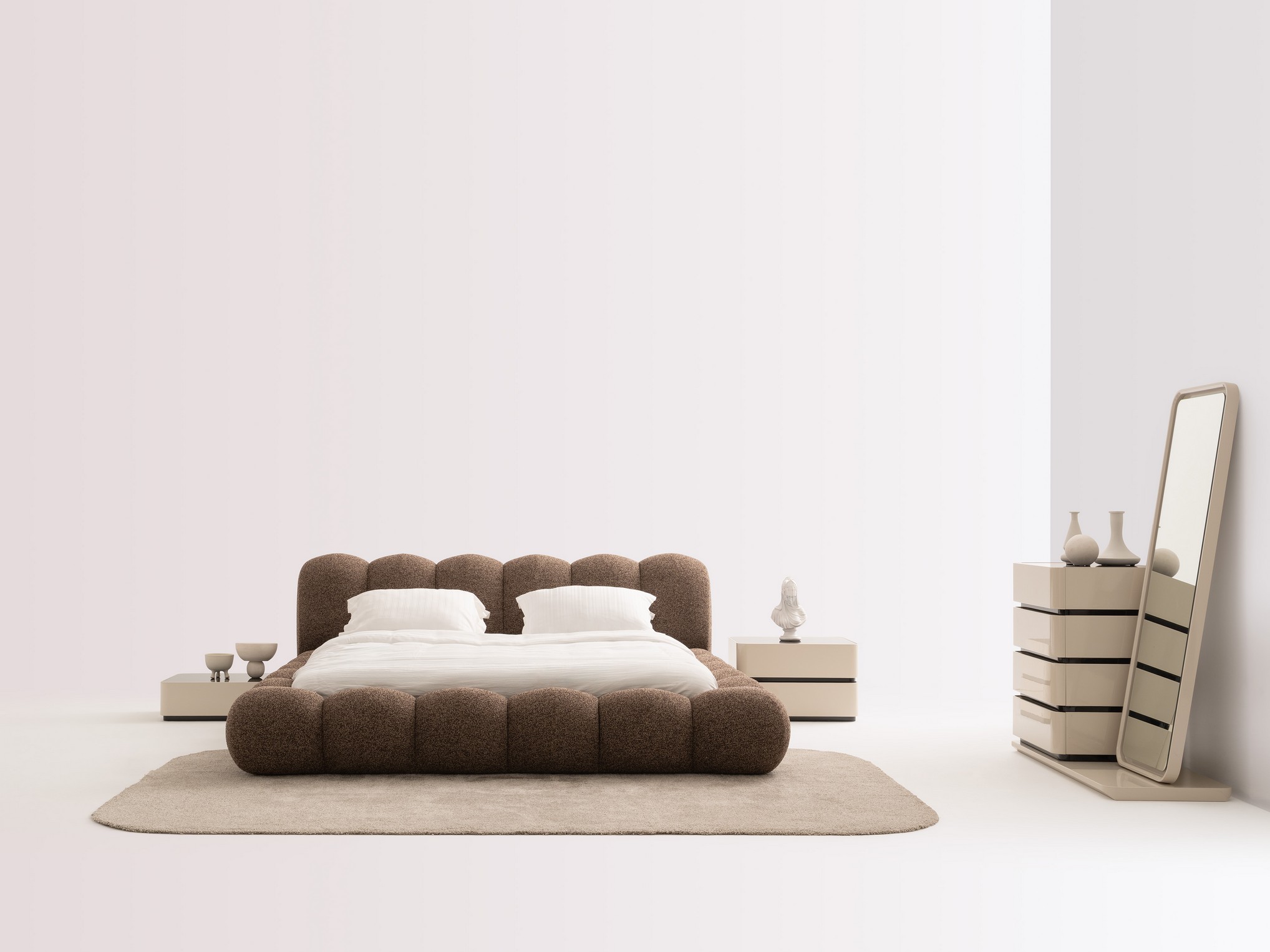 Coco Dream Yatak Odası, modern tasarımı yumuşak ve sıcak detaylarla birleştirerek huzurlu bir dinlenme alanı sunar. Yumuşak renk tonları ve dengeli çizgileri, odanıza ferah ve estetik bir atmosfer kazandırır. Fonksiyonel depolama çözümleri ve kaliteli malzemeleriyle konforlu bir kullanım sağlar. Sakinlik ve zarafeti bir arada arayanlar için ideal bir yatak odası seçimidir.