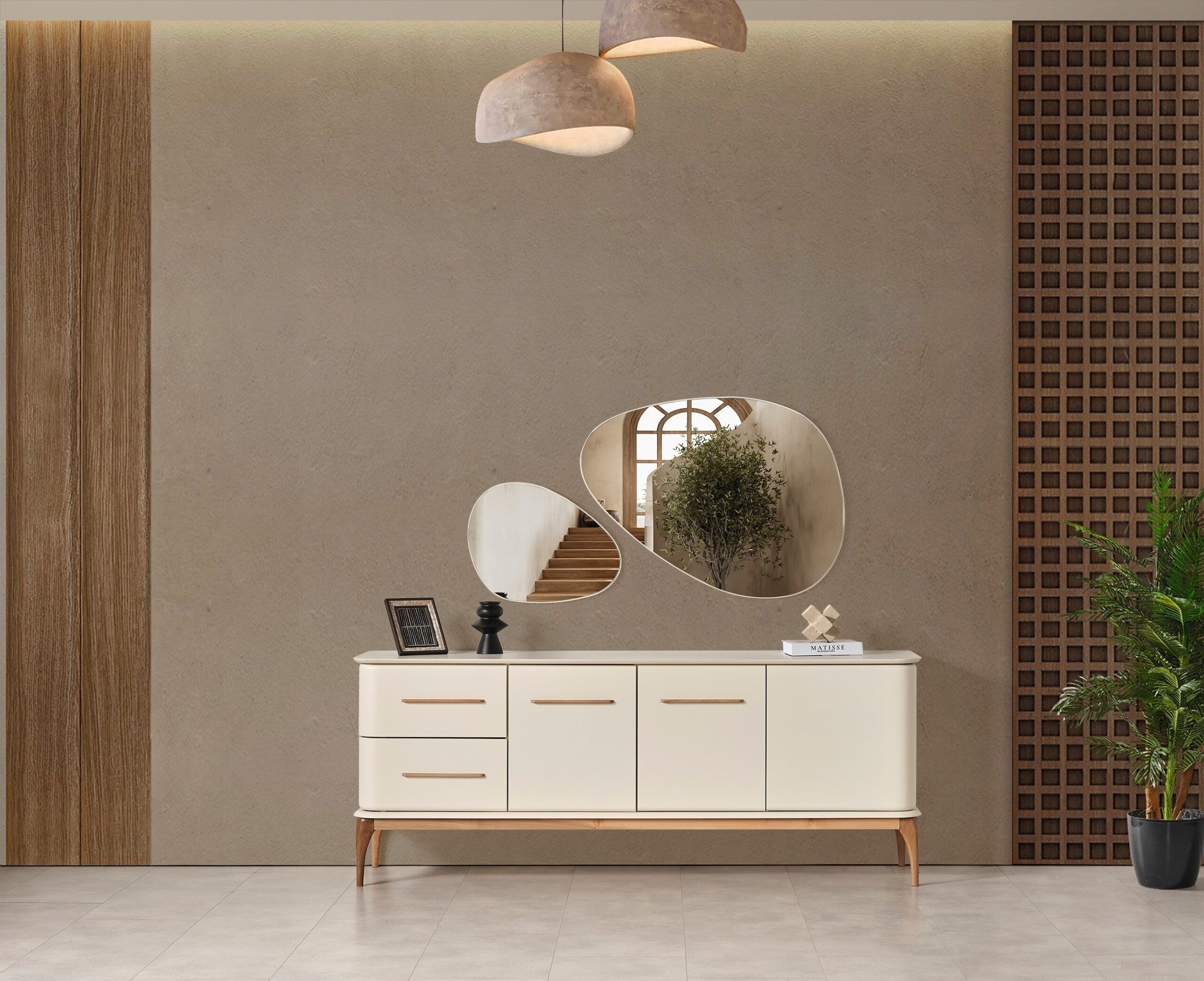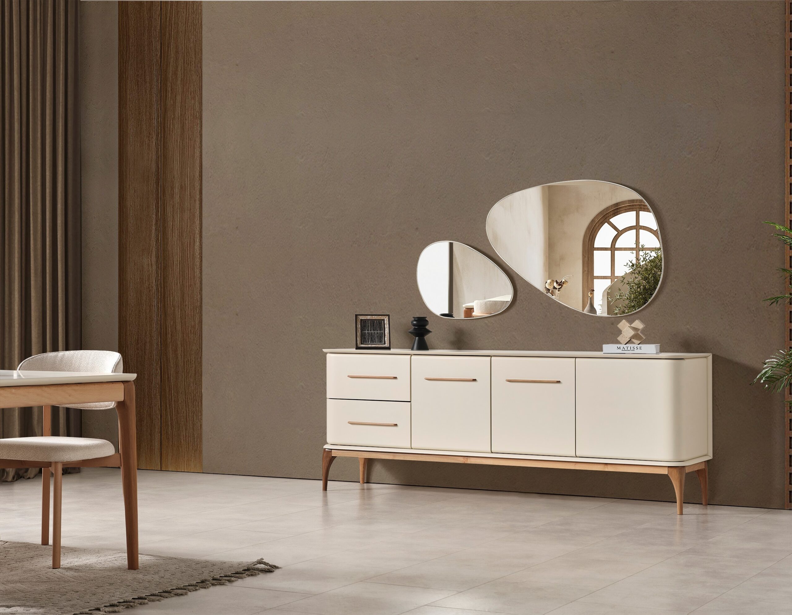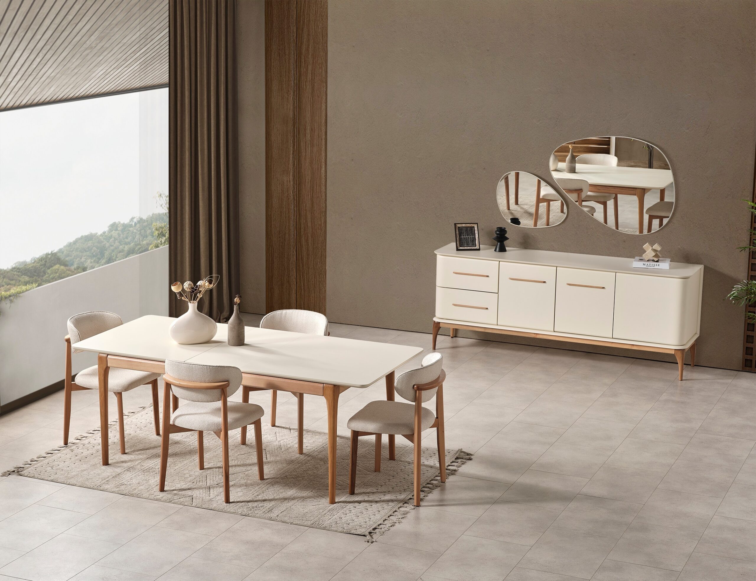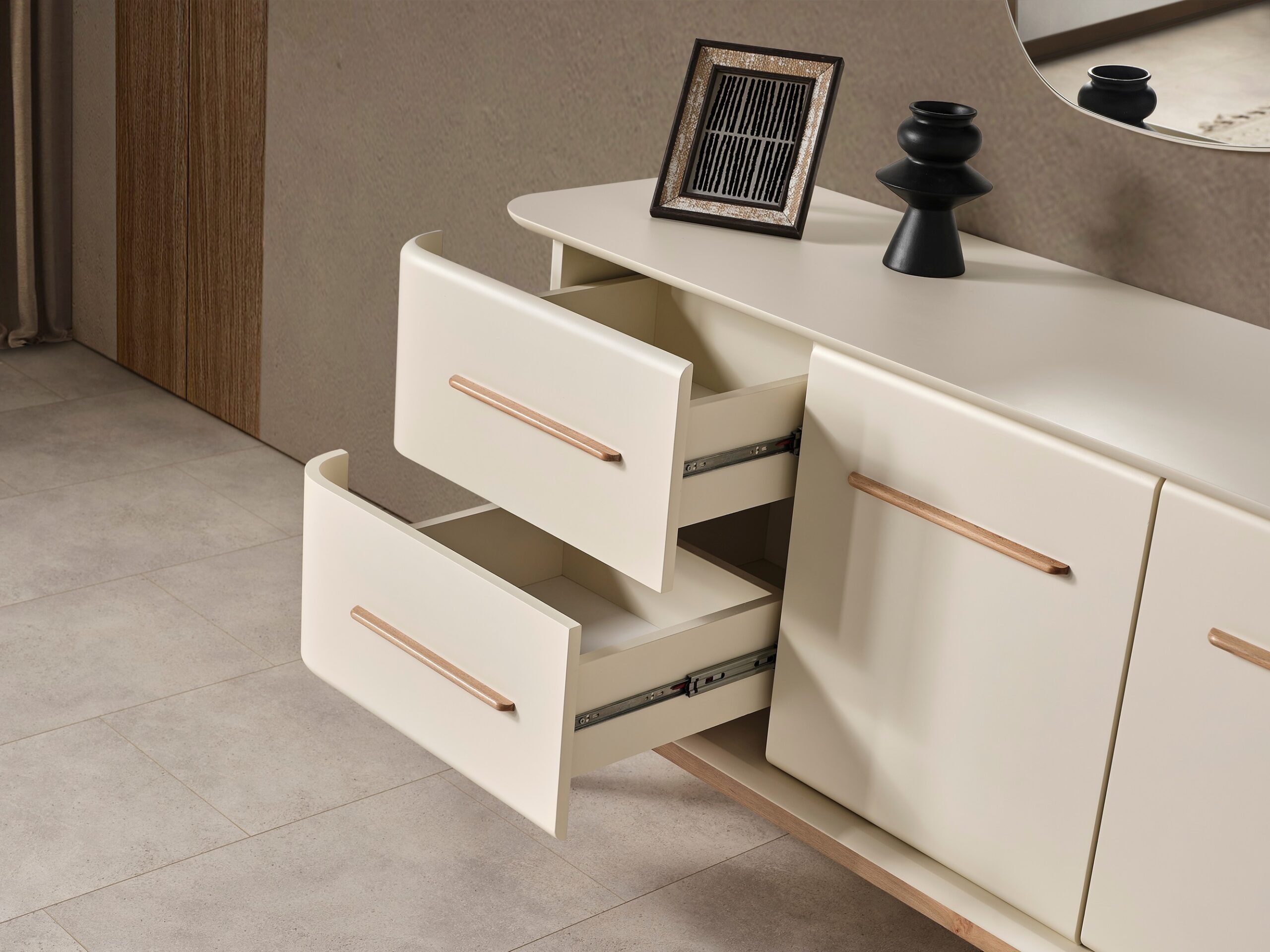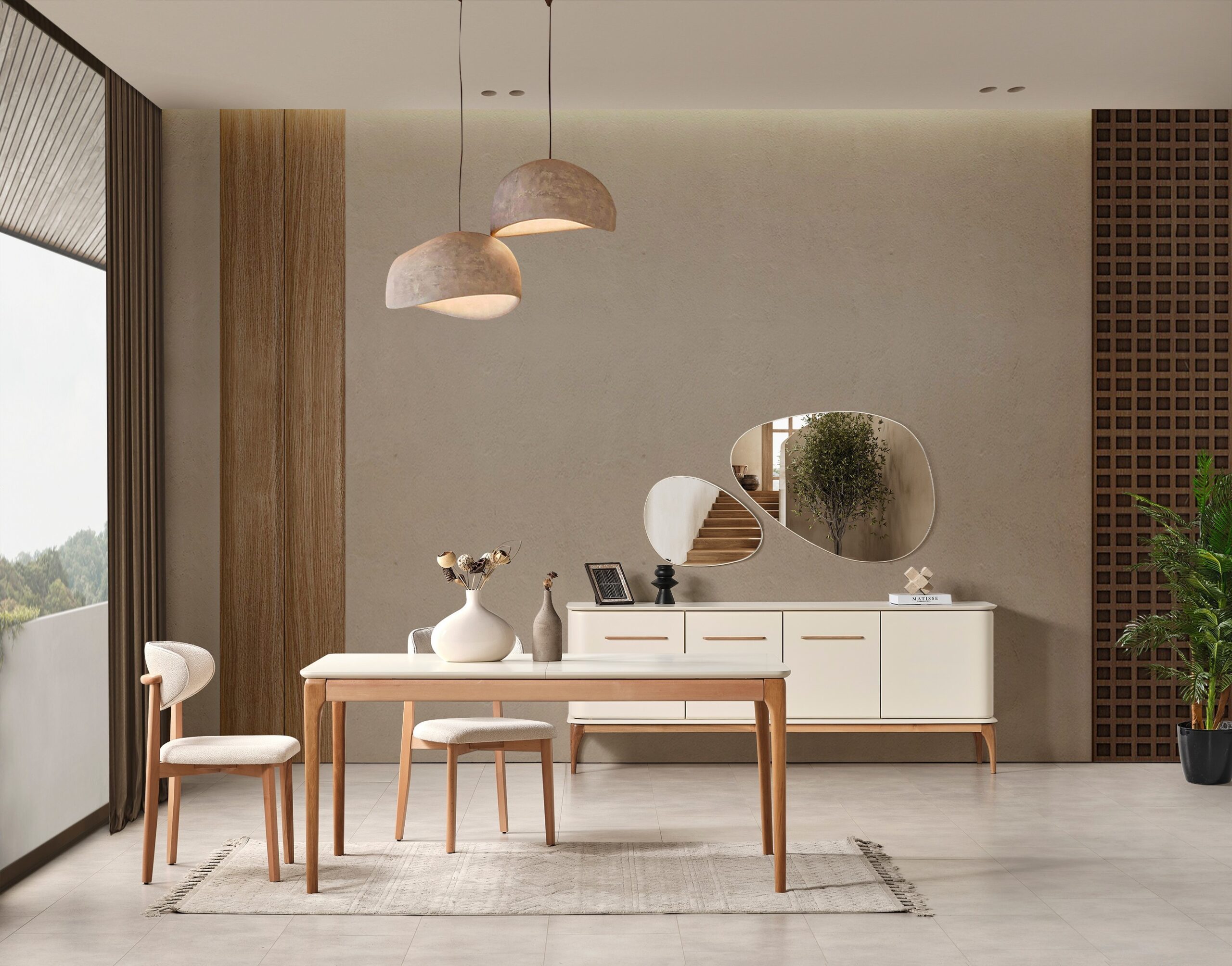 Doğal ceviz dokusunun sıcaklığını modern çizgilerle buluşturan Destan Yemek Odası, şık tasarımı ve fonksiyonel detaylarıyla yaşam alanınıza zarafet katıyor. Kaliteli işçiliği, geniş depolama alanları ve konforlu kullanım yapısıyla hem günlük hem de özel davetleriniz için ideal bir atmosfer sunar.
