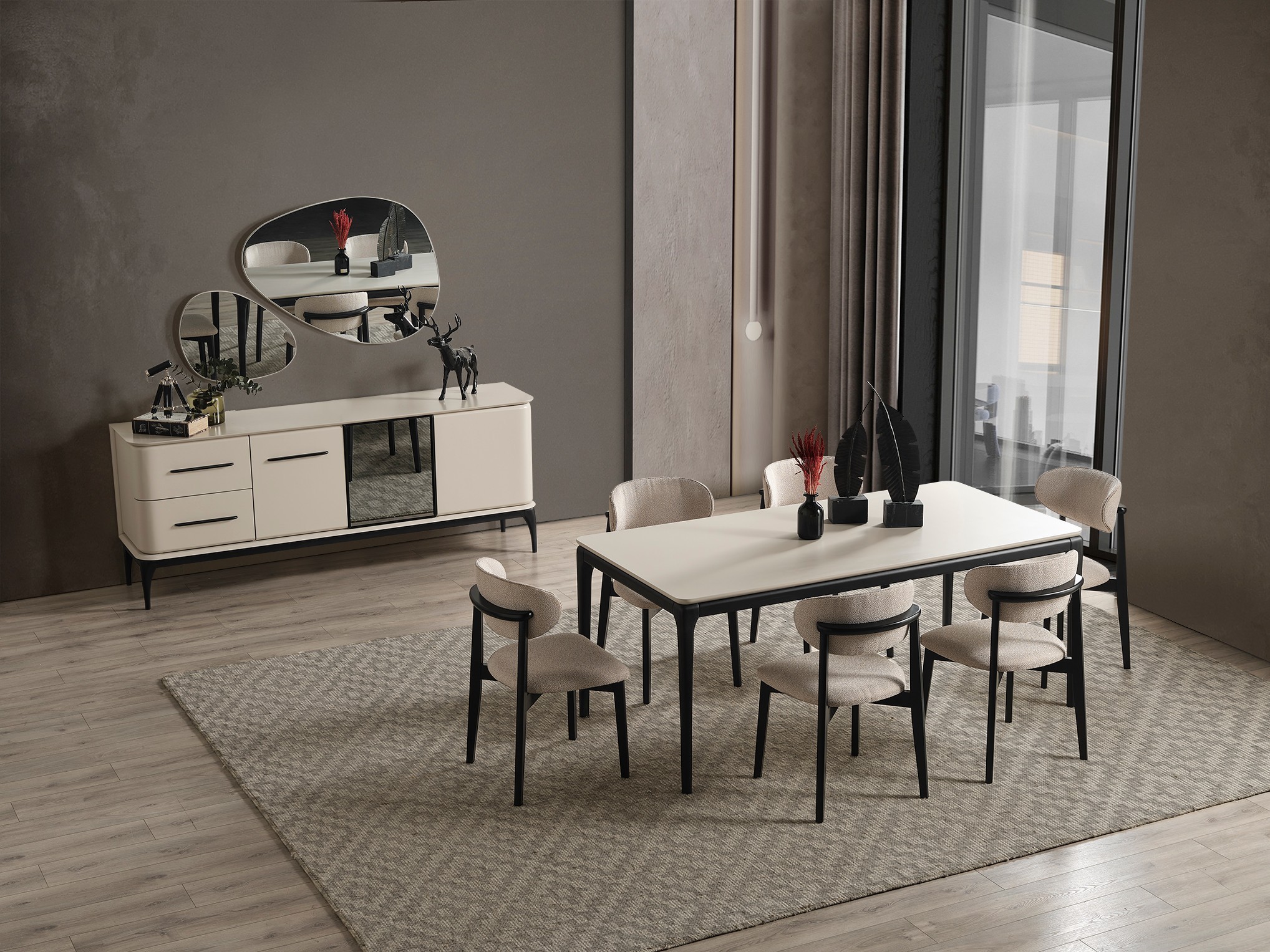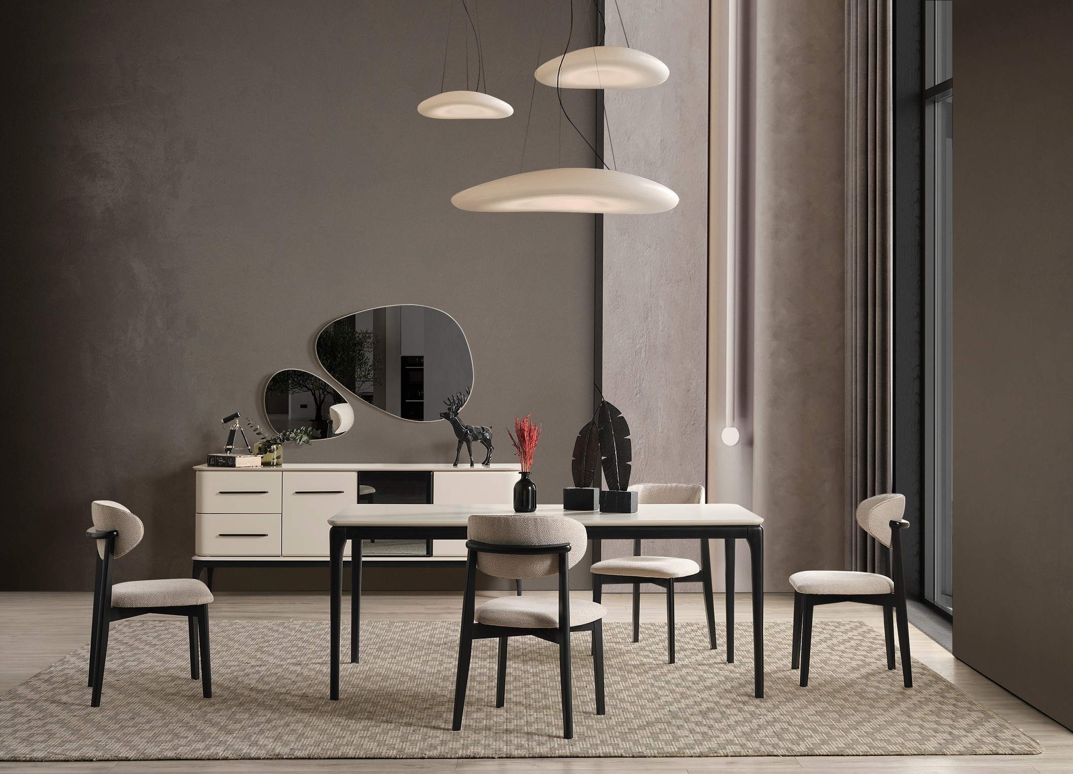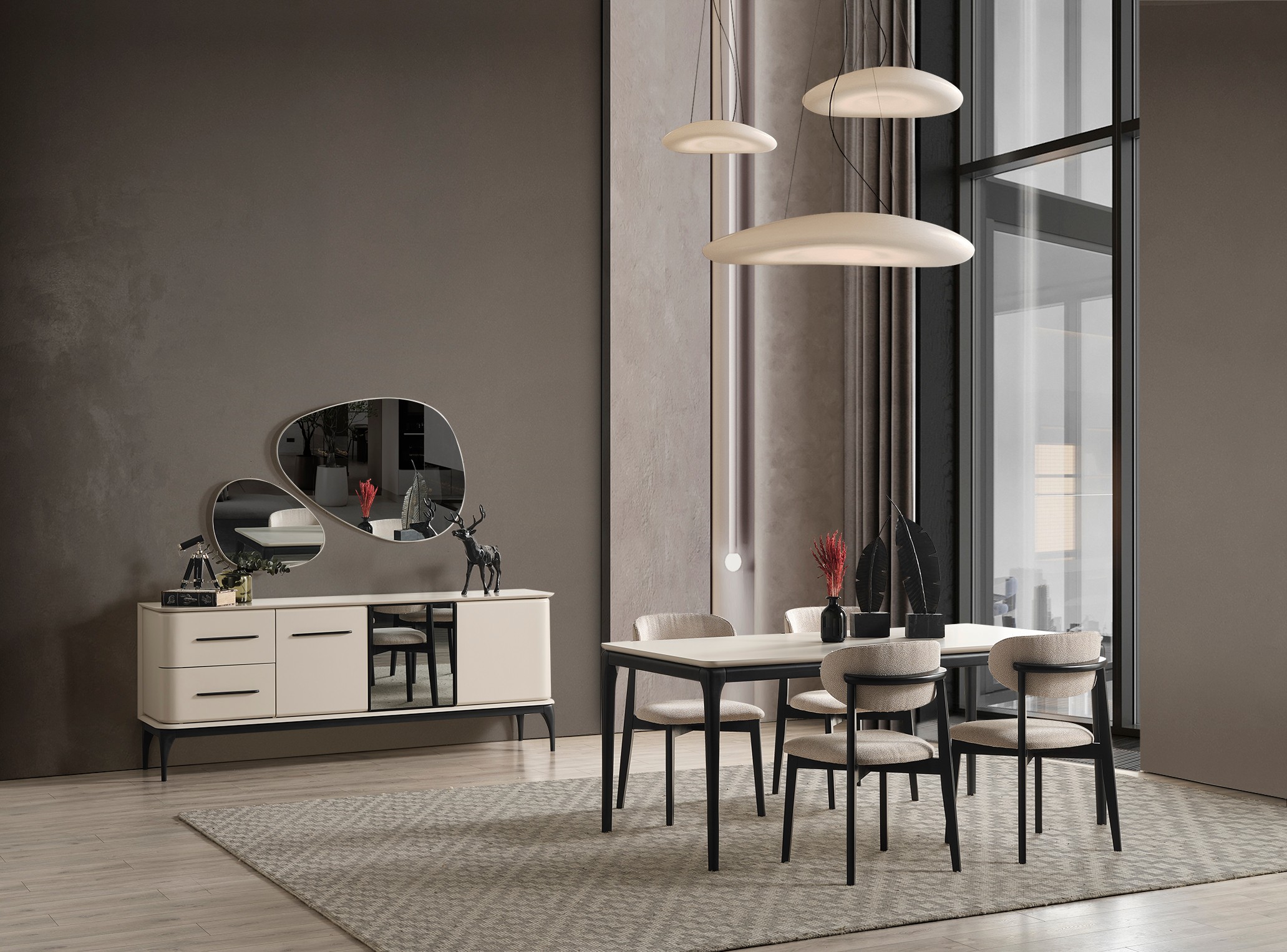 Sade şıklığın modern yorumuyla hazırlanan Destan Yemek Odası, yemek alanınıza ferah, düzenli ve zarif bir atmosfer kazandırır. Günlük kullanımdan özel davetlere kadar her anı stil sahibi bir deneyime dönüştürür.