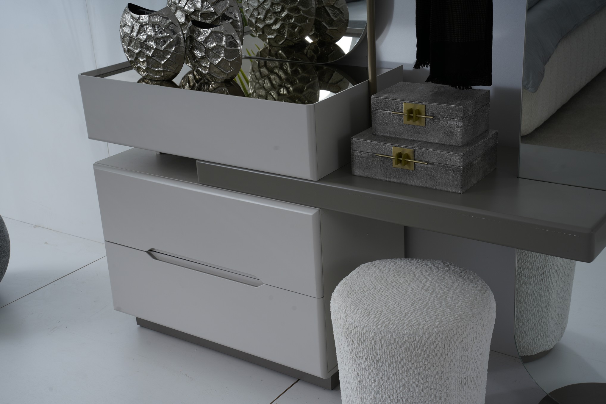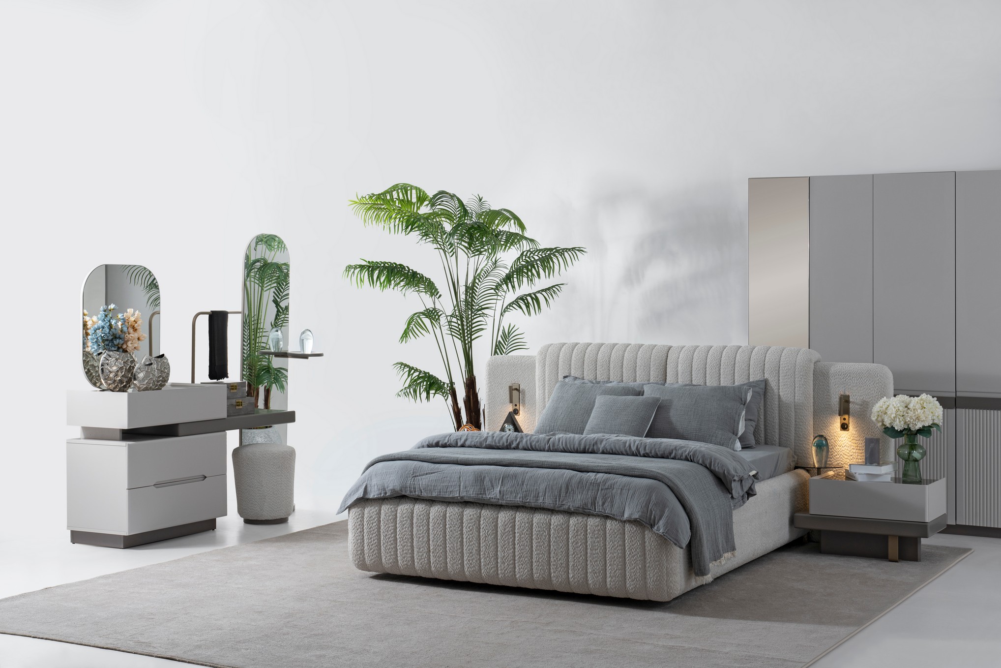 Dior Yatak Odası, modern lüksü zarif detaylarla buluşturarak seçkin bir yaşam alanı sunar. Şık tasarım çizgileri ve uyumlu renk tonları, odanıza sofistike ve prestijli bir atmosfer kazandırır. Fonksiyonel depolama alanları ve kaliteli malzemeleriyle üst düzey konfor sağlar. Zarafeti ve modernliği bir arada arayanlar için ideal bir yatak odası seçeneğidir.