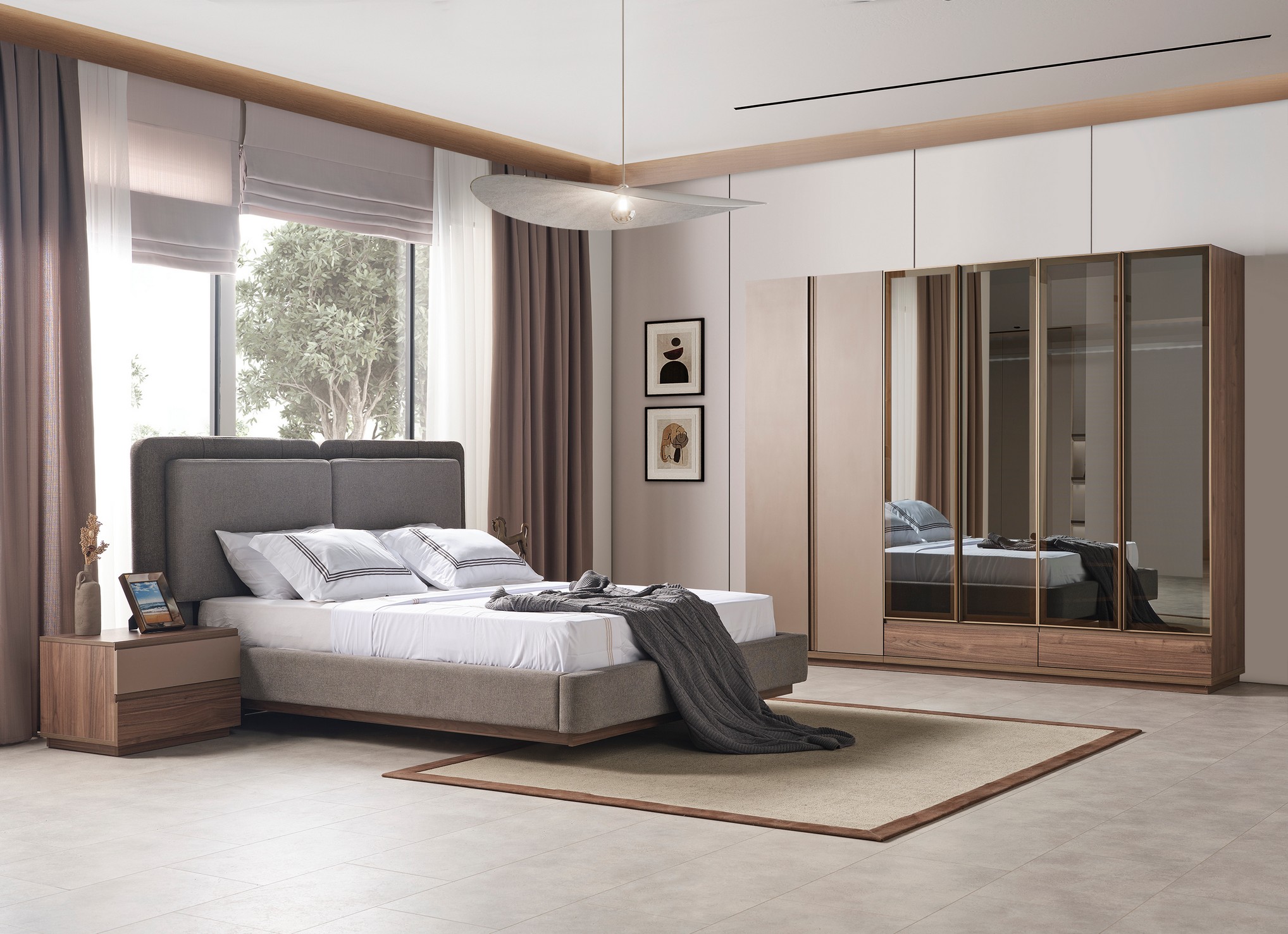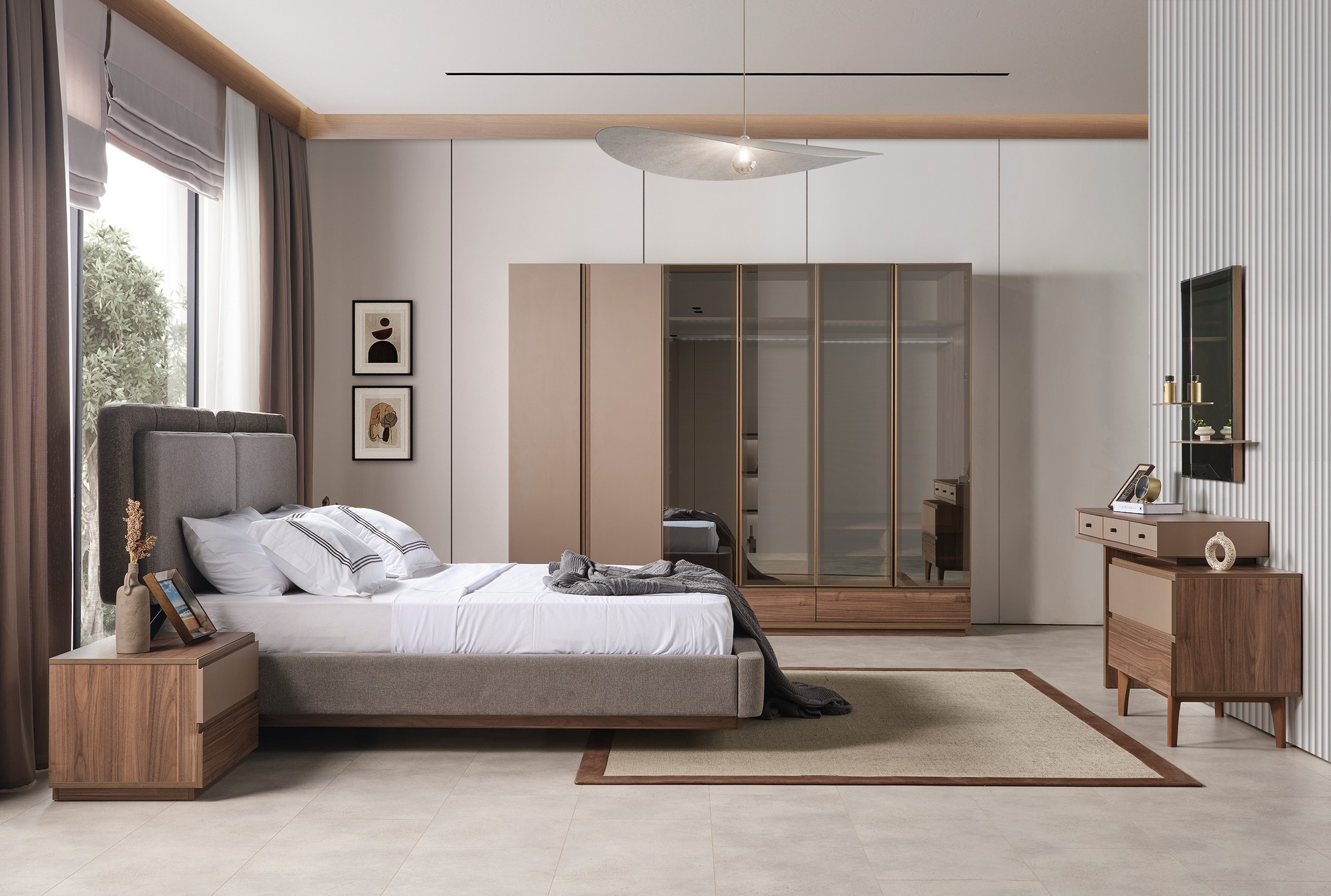 Asya Yatak Odası, sakin ve dengeli tasarım anlayışıyla huzurlu bir uyku alanı sunar. Doğal tonlar ve yumuşak geçişler, odanıza ferah ve sıcak bir atmosfer kazandırır. Fonksiyonel depolama çözümleri ve kaliteli malzemeleriyle uzun süreli konfor sağlar. Sadeliği ve zarafeti bir arada arayanlar için ideal bir tercihtir.