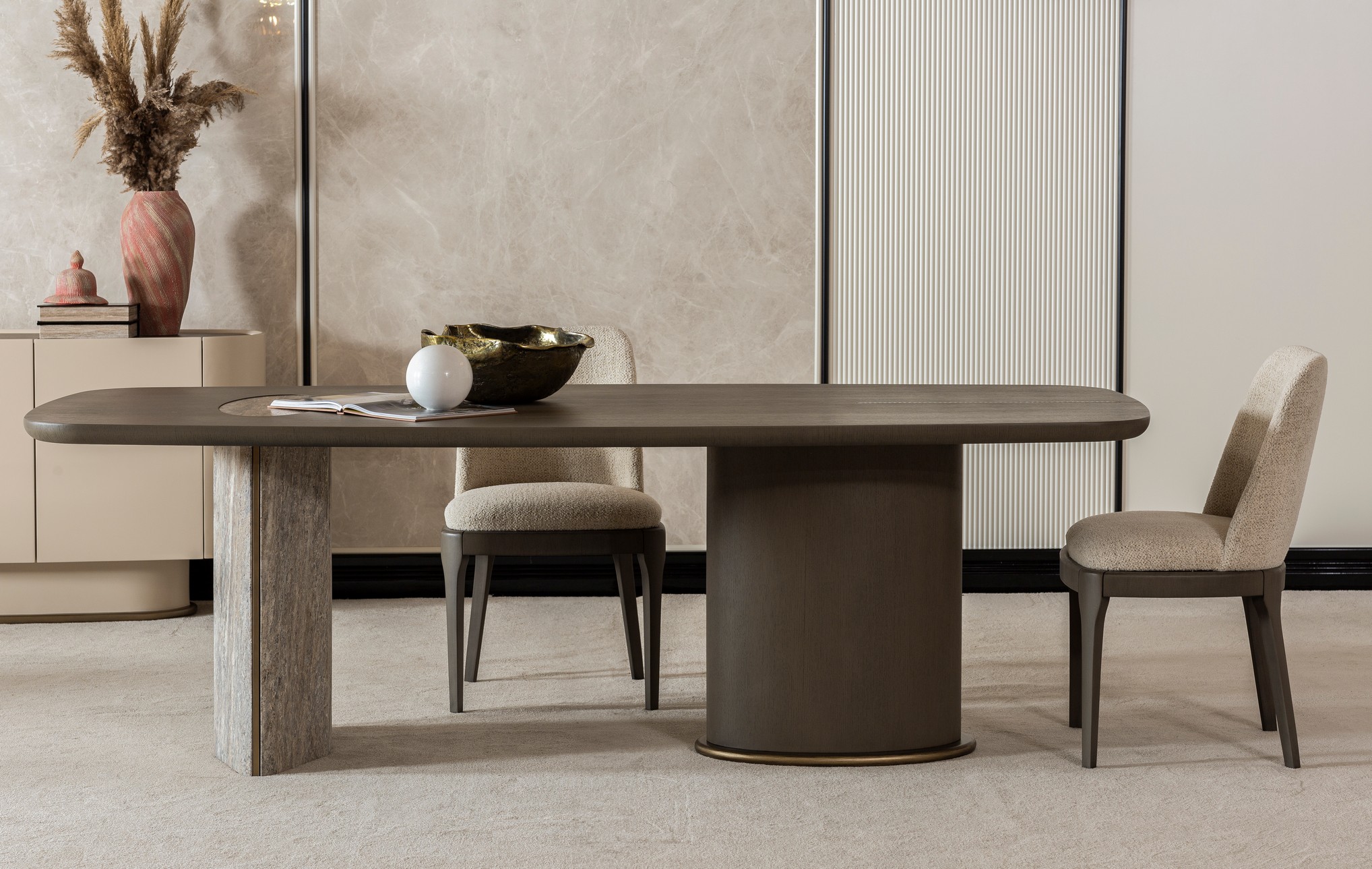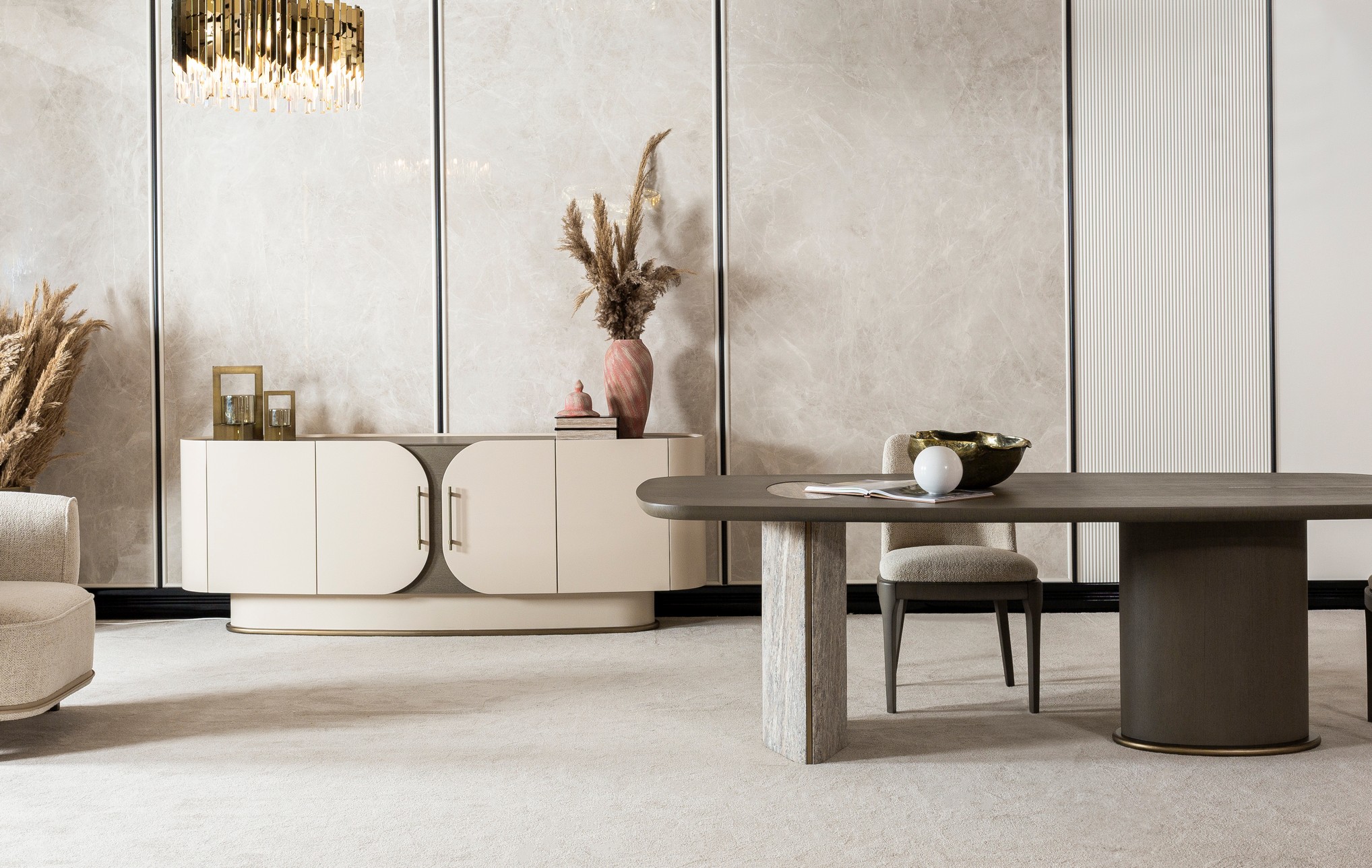 Elisse Yemek Odası, zarif hatları modern tasarım anlayışıyla birleştirerek mekâna şık ve sofistike bir hava kazandırır. Yumuşak tonları ve ince detayları, yemek alanınızı sıcak ve davetkâr bir atmosfere dönüştürür. Hem estetik hem de fonksiyonel yapısıyla, günlük konforu şıklıkla bir arada sunar.