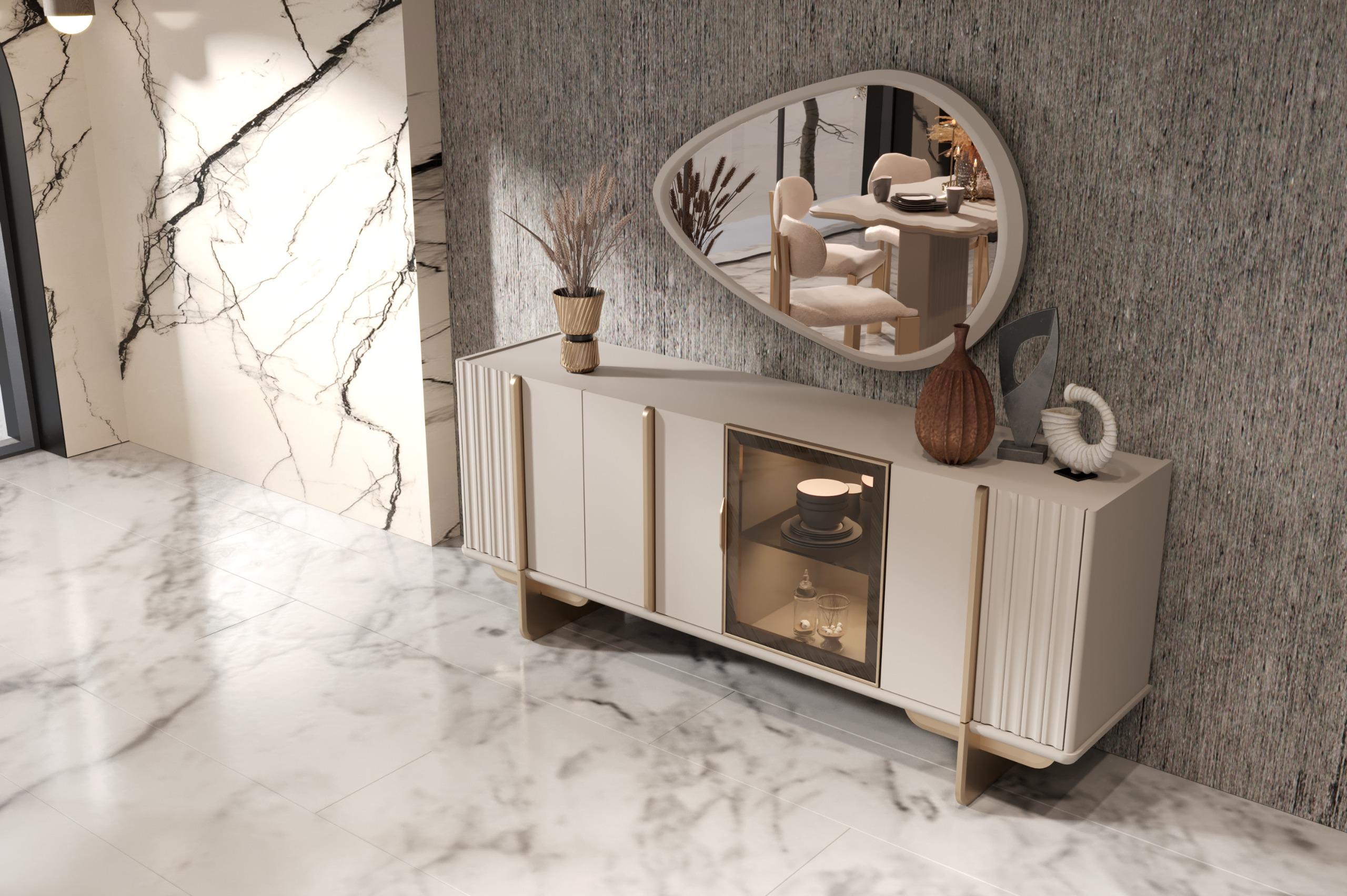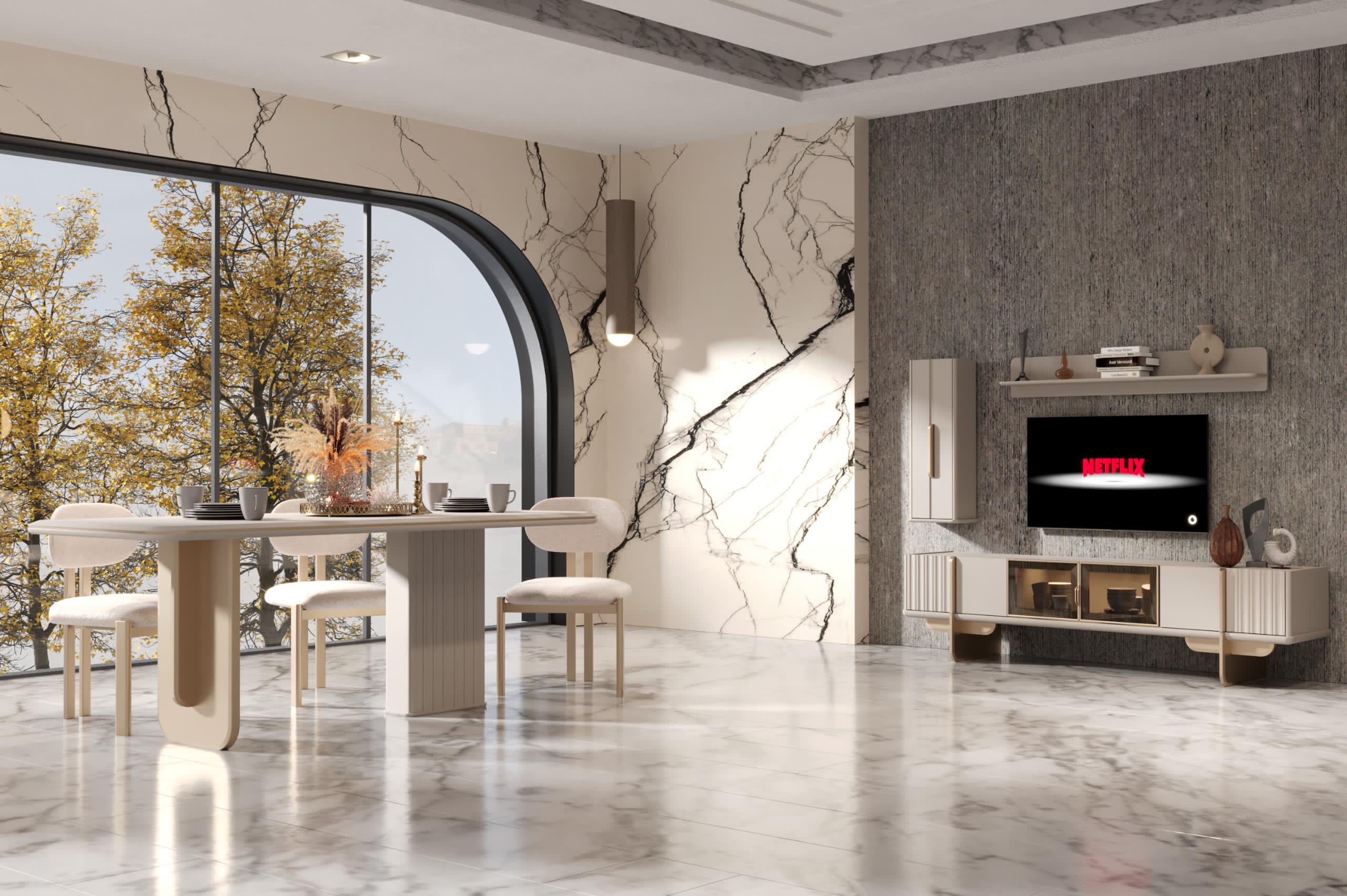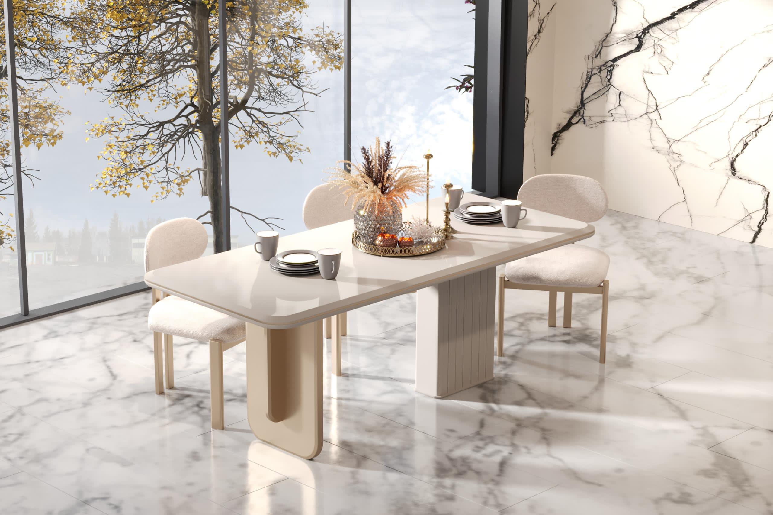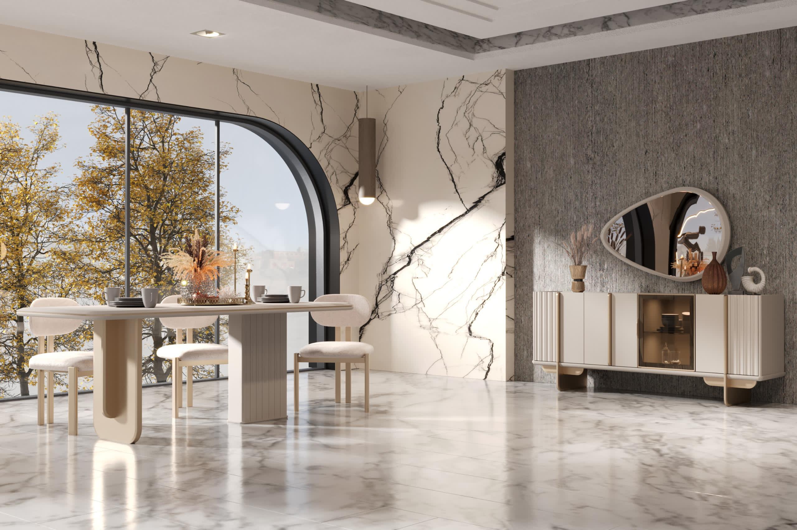 Elit Yemek Odası, sofistike çizgileri ve zarif detaylarıyla sofralarınıza ayrıcalıklı bir şıklık katar. Modern tasarımı, mekânınıza ferah ve davetkar bir atmosfer getirir. Fonksiyonel yapısı, hem günlük kullanımda hem de özel davetlerde konfor sağlar. Her yemeği unutulmaz bir deneyime dönüştüren estetik bir tercih sunar.
