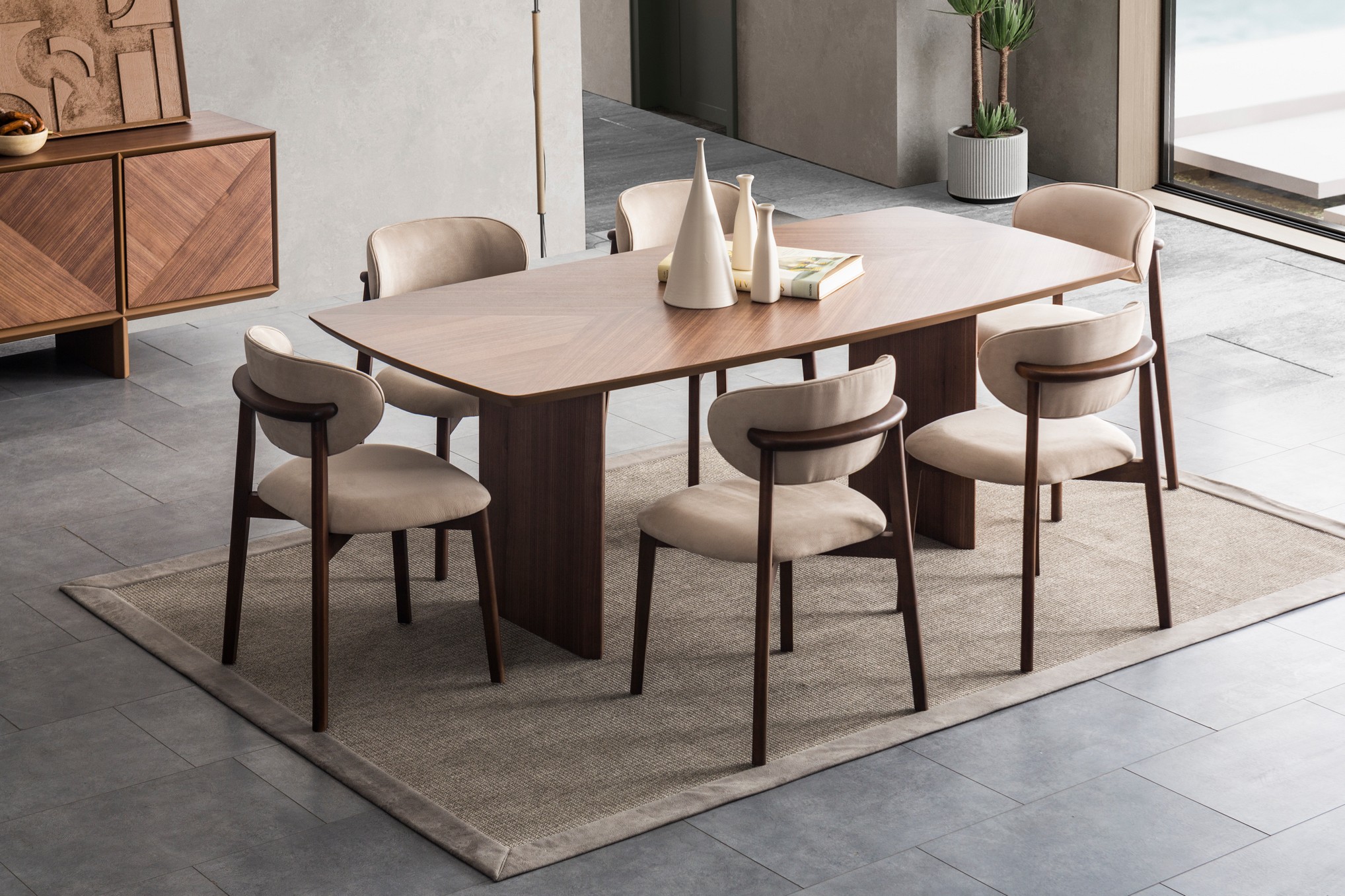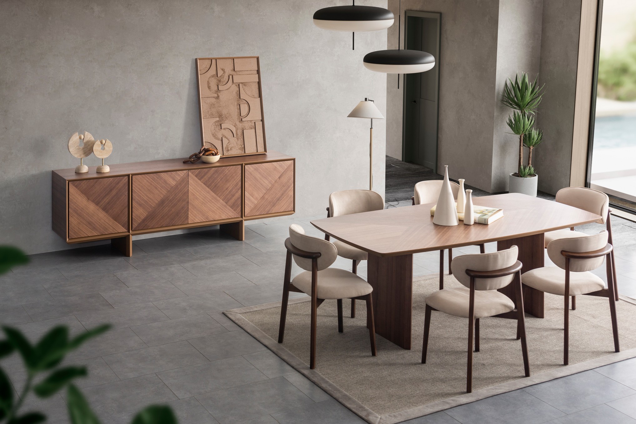 Florya V2 Yemek Odası, modern tasarımın yenilenmiş detaylarını sıcak dokularla birleştirerek mekâna daha dinamik ve şık bir atmosfer kazandırır. Uyumlu renk tonları ve akıcı hatları, yemek alanınızı ferah ve davetkâr bir görünüme dönüştürür. Estetik ve fonksiyonelliği bir arada sunan yapısıyla, hem günlük kullanımda hem de özel davetlerde mükemmel bir uyum sağlar.