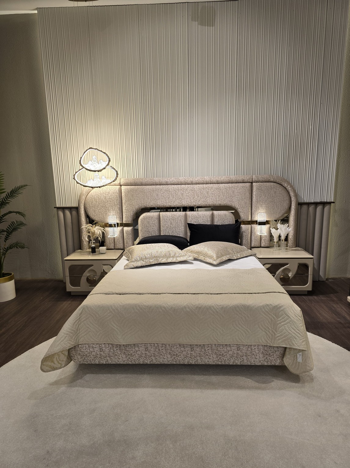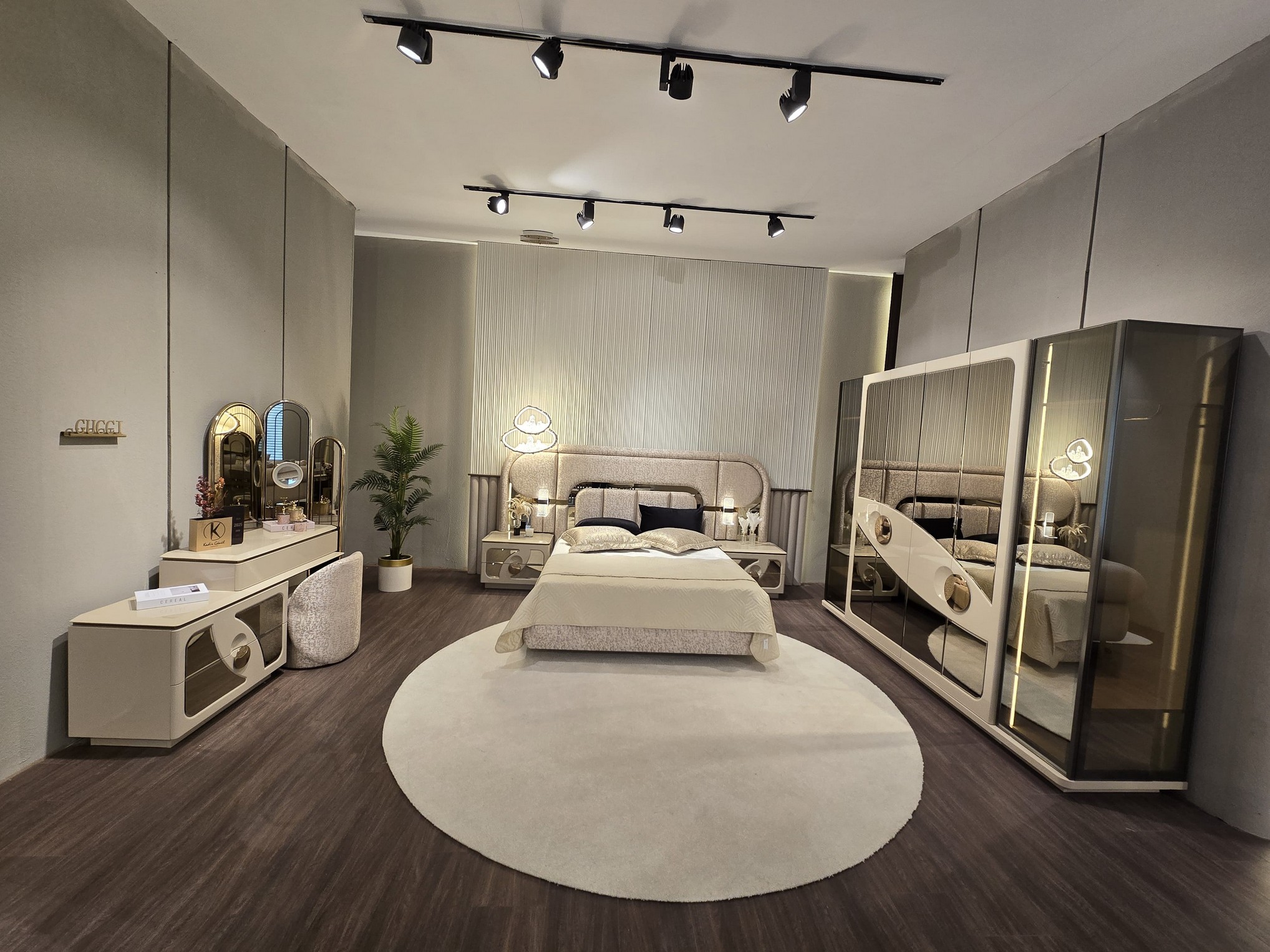 Gucci Yatak Odası, lüks tasarımın modern çizgilerle buluştuğu prestijli bir uyku alanı sunar. Zarif detayları ve sofistike renk paleti, odanıza seçkin ve etkileyici bir atmosfer kazandırır. Fonksiyonel depolama çözümleri ve yüksek kalite malzemeleriyle konforlu ve uzun ömürlü bir kullanım sağlar. Modern lüksü ve estetiği bir arada arayanlar için ideal bir yatak odası tercihidir.