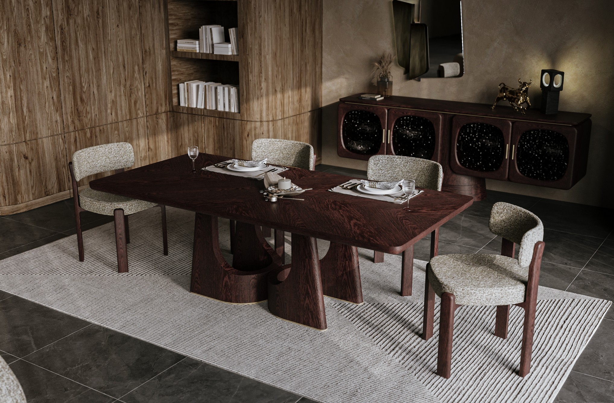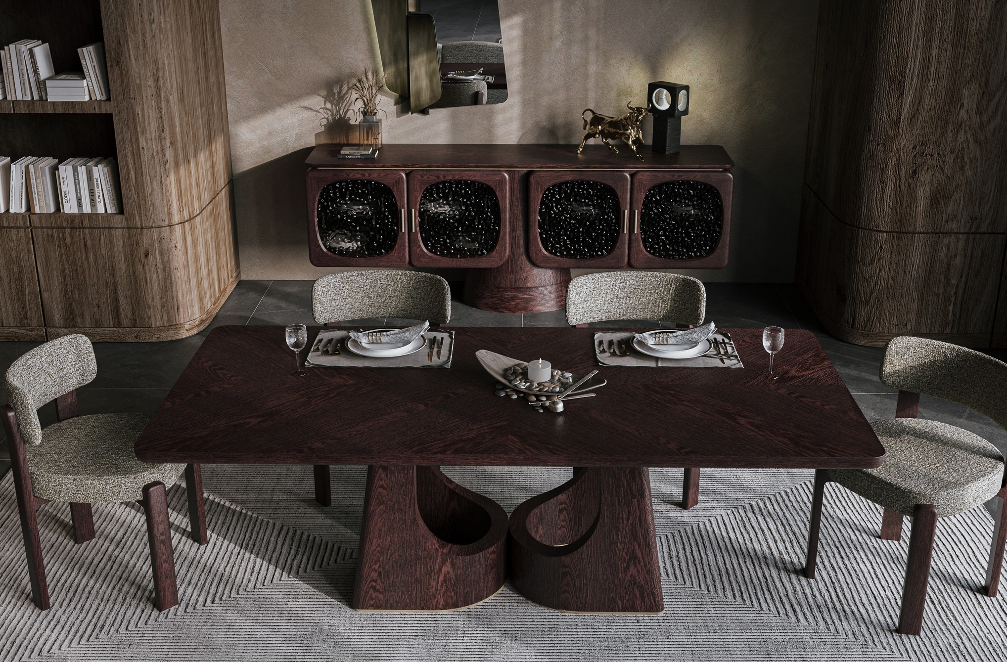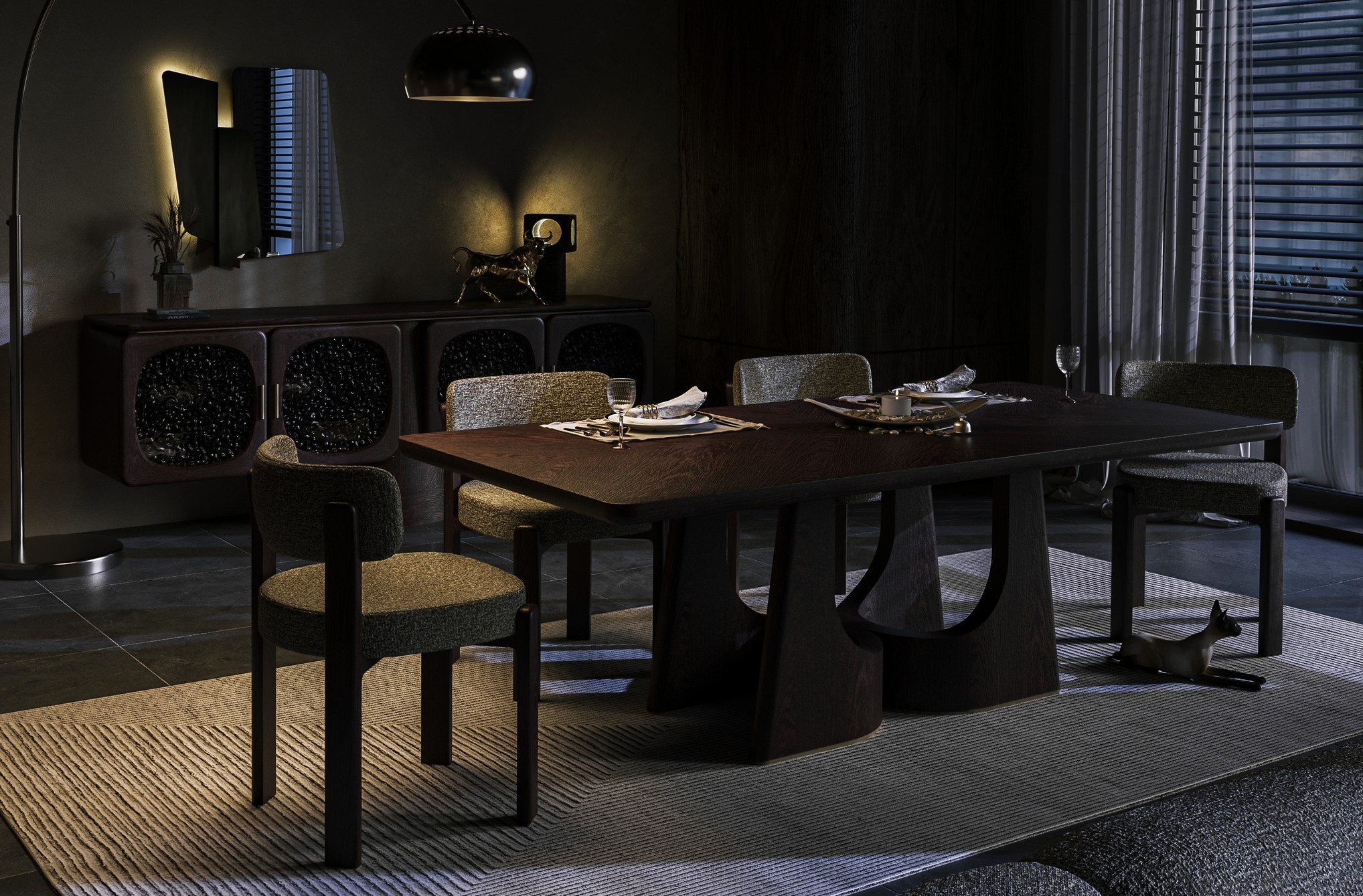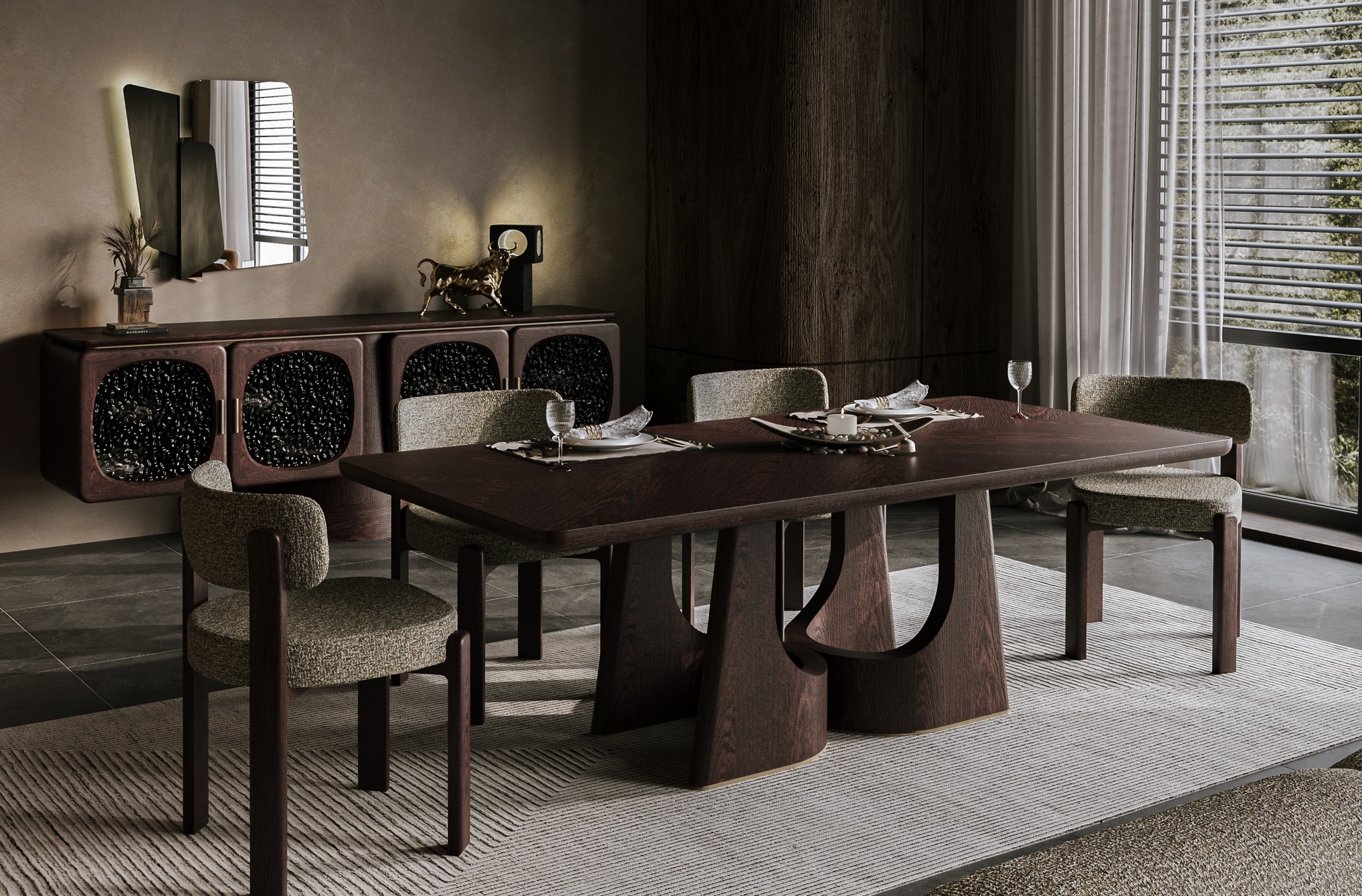 Mostar Yemek Odası, modern çizgileri ve sıcak dokusuyla sofralarınıza samimi bir şıklık getirir. Fonksiyonel tasarımı, hem günlük kullanımda hem de özel davetlerde rahatlık sunar. Zarif detayları mekânınıza estetik bir dokunuş katar. Her yemeği keyifli ve unutulmaz anlara dönüştüren bir tercih olarak öne çıkar.