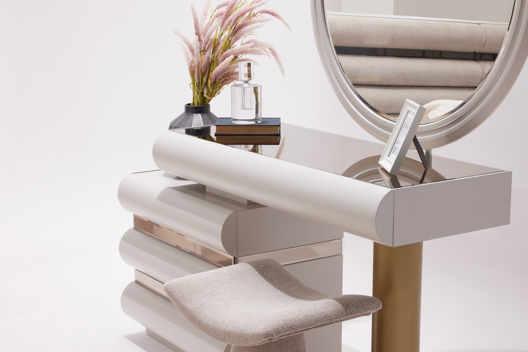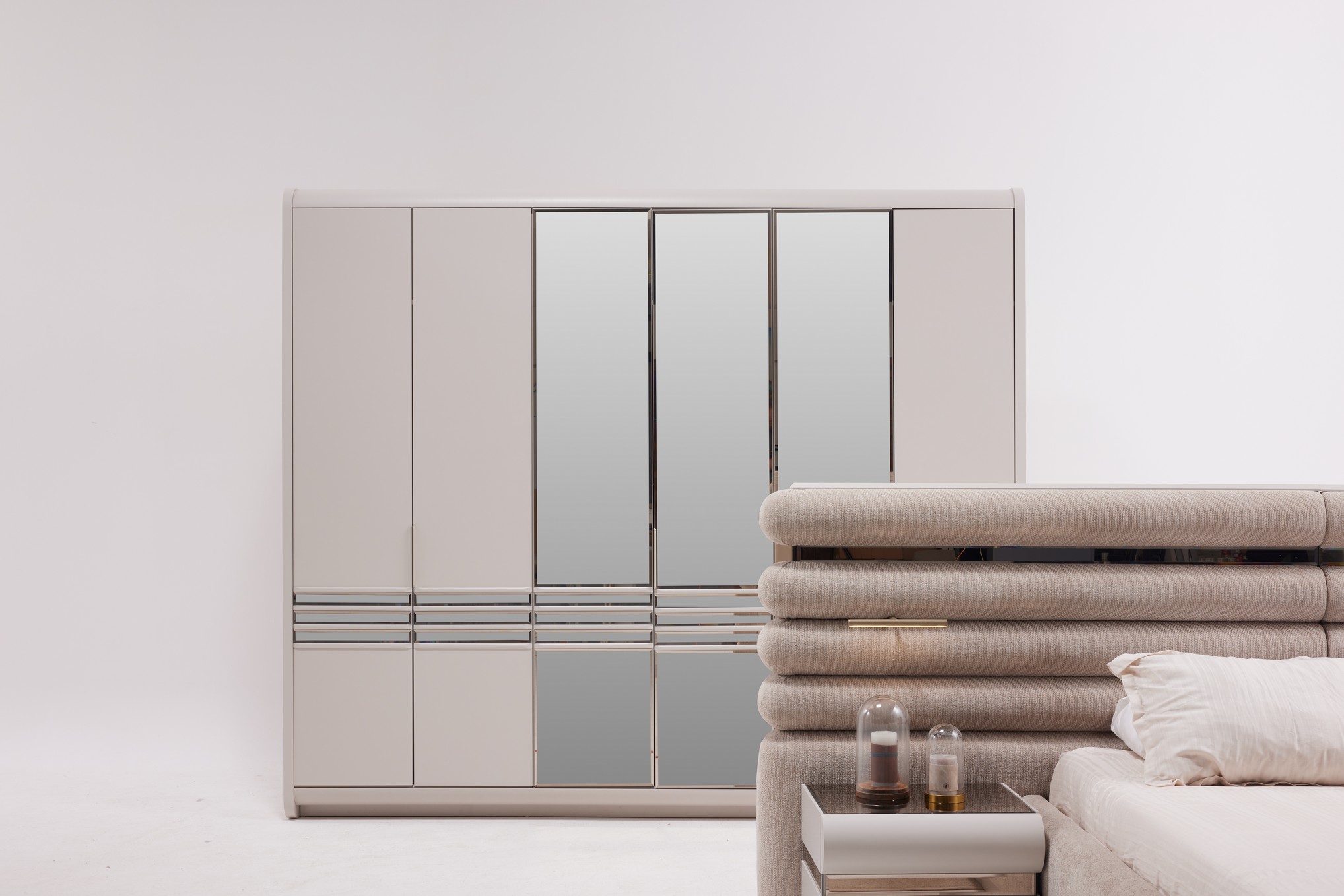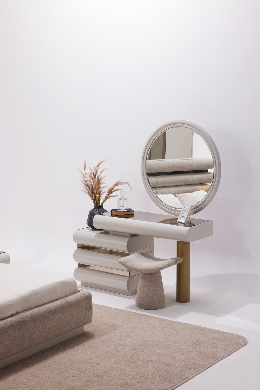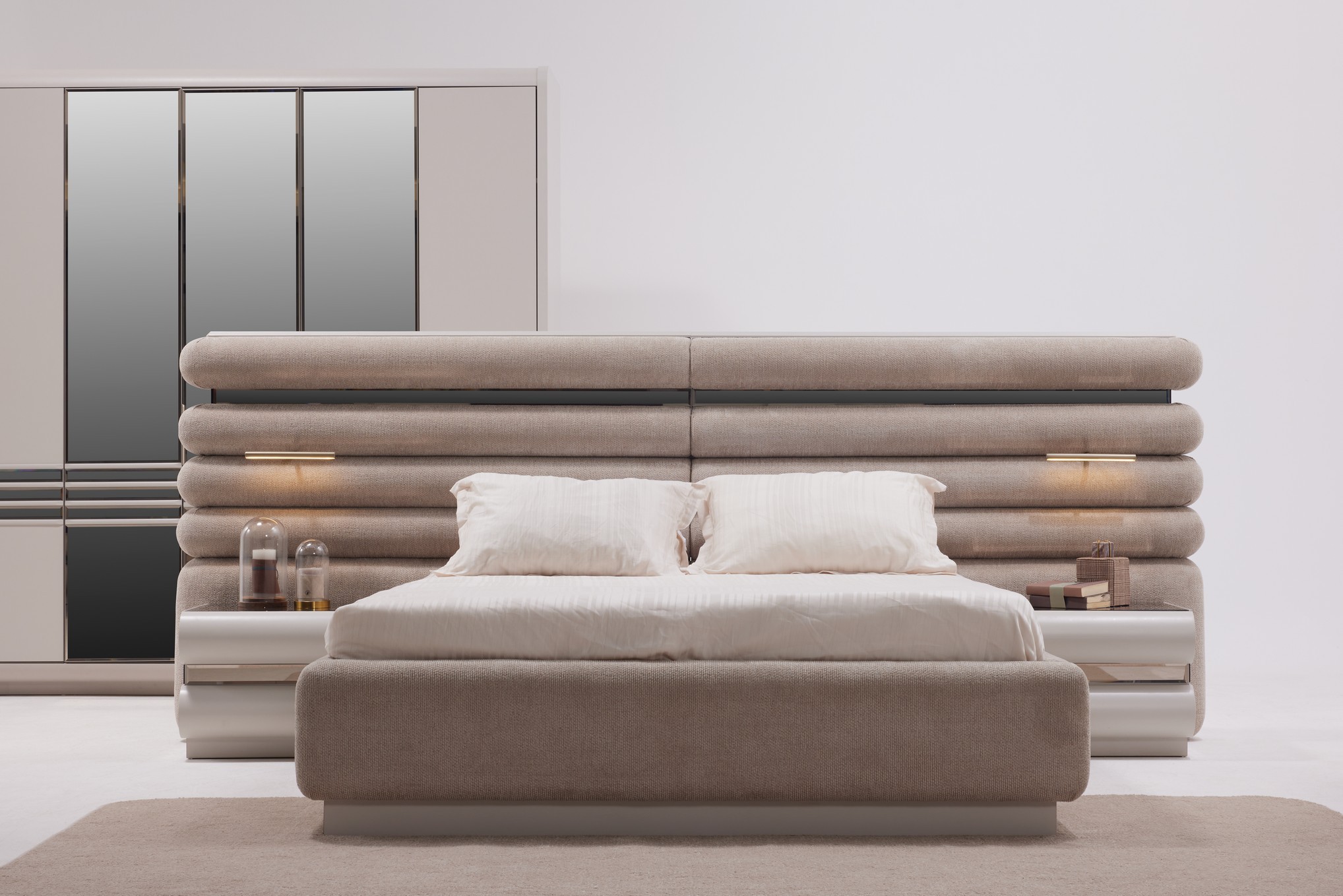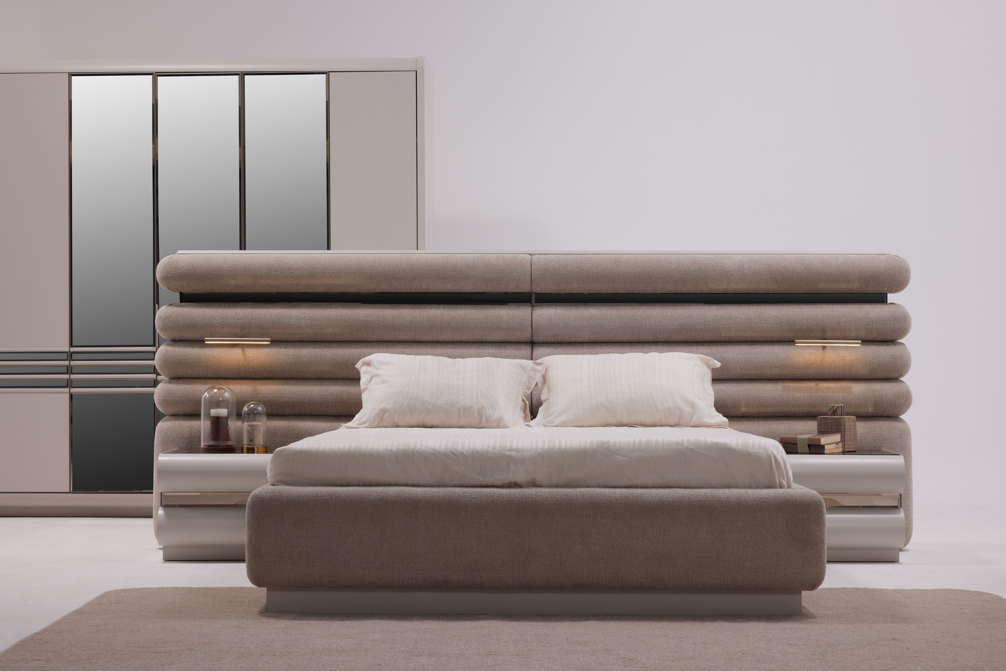 Hermosa Yatak Odası, zarif tasarım çizgileri ve sıcak dokularıyla huzurlu bir dinlenme alanı oluşturur. Yumuşak renk tonları ve dengeli detayları, odanıza ferah ve estetik bir atmosfer kazandırır. Fonksiyonel depolama alanları ve kaliteli malzemeleriyle hem konforlu hem de kullanışlı bir deneyim sunar. Sakin ve şık bir yatak odası arayanlar için ideal bir seçimdir.