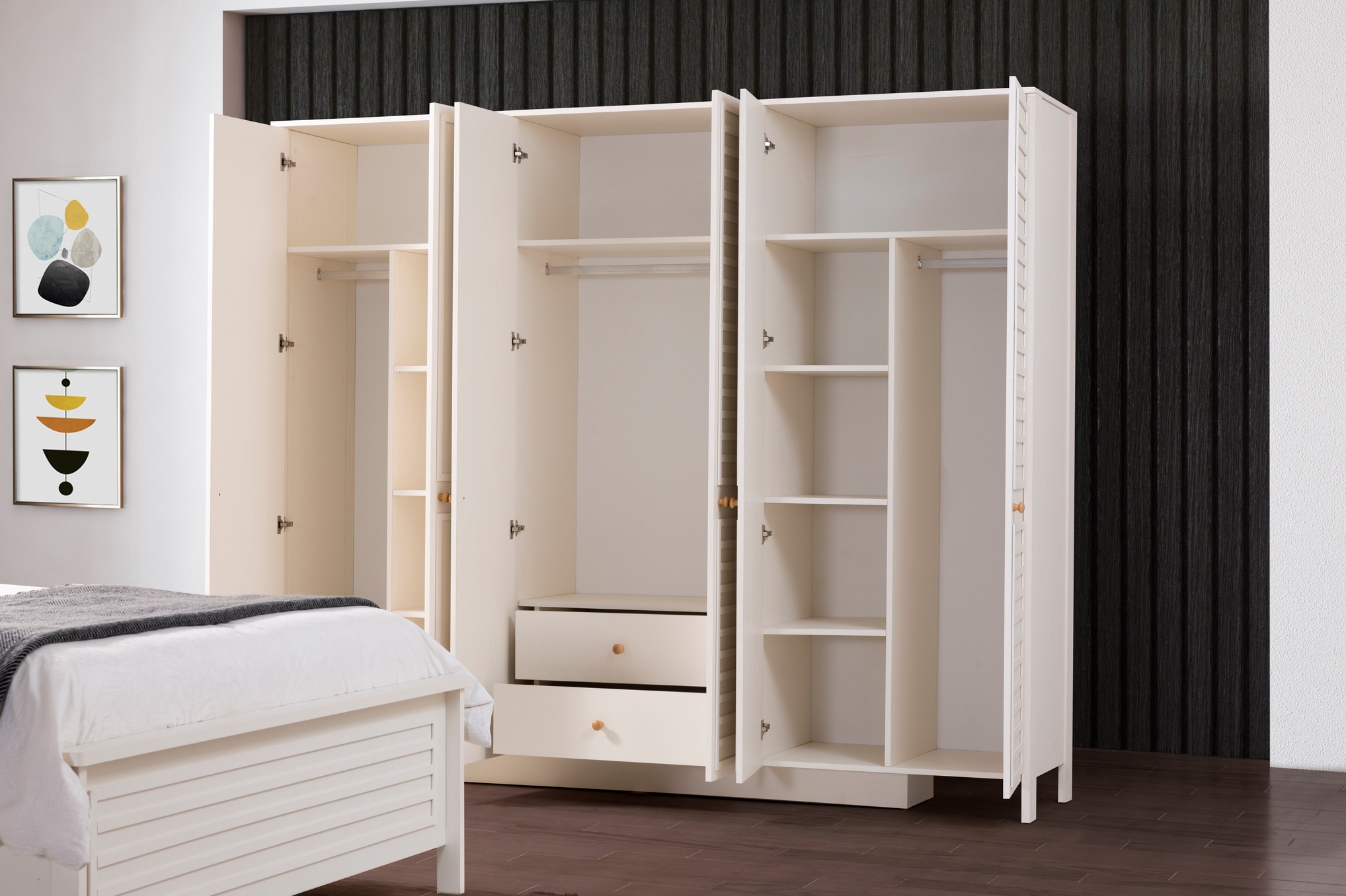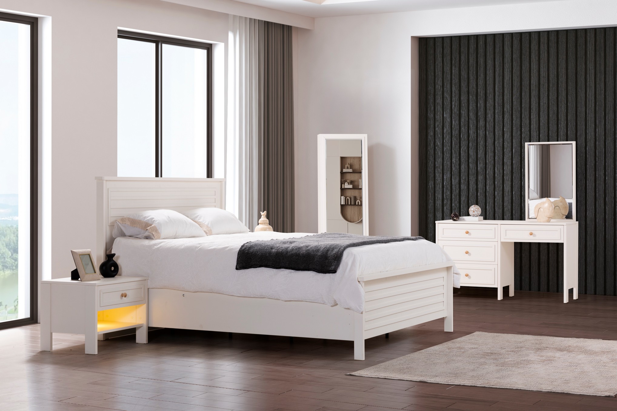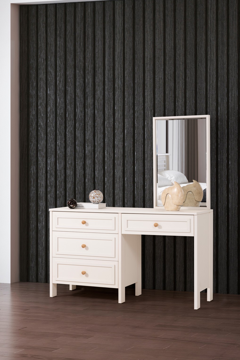 İnci Yatak Odası, saf ve zarif tasarım çizgileriyle huzurlu bir uyku alanı sunar. Yumuşak renk tonları ve sade detayları, odanıza ferah ve estetik bir atmosfer kazandırır. Fonksiyonel depolama çözümleri ve kaliteli malzemeleriyle konforlu ve uzun ömürlü bir kullanım sağlar. Zarafeti ve sadeliği bir arada arayanlar için ideal bir yatak odası tercihidir.