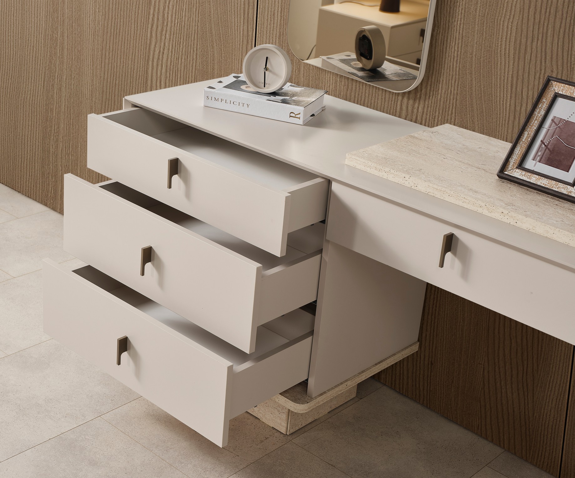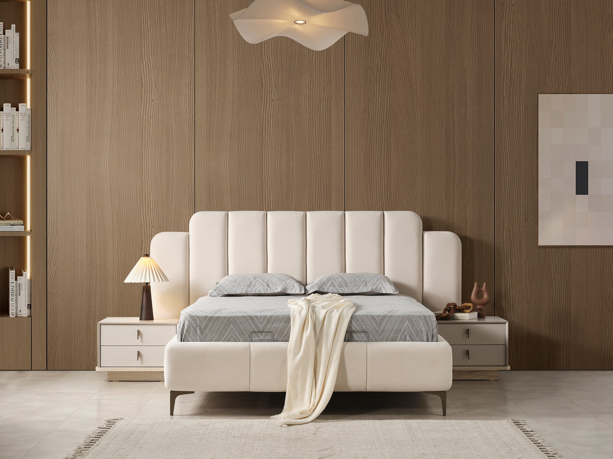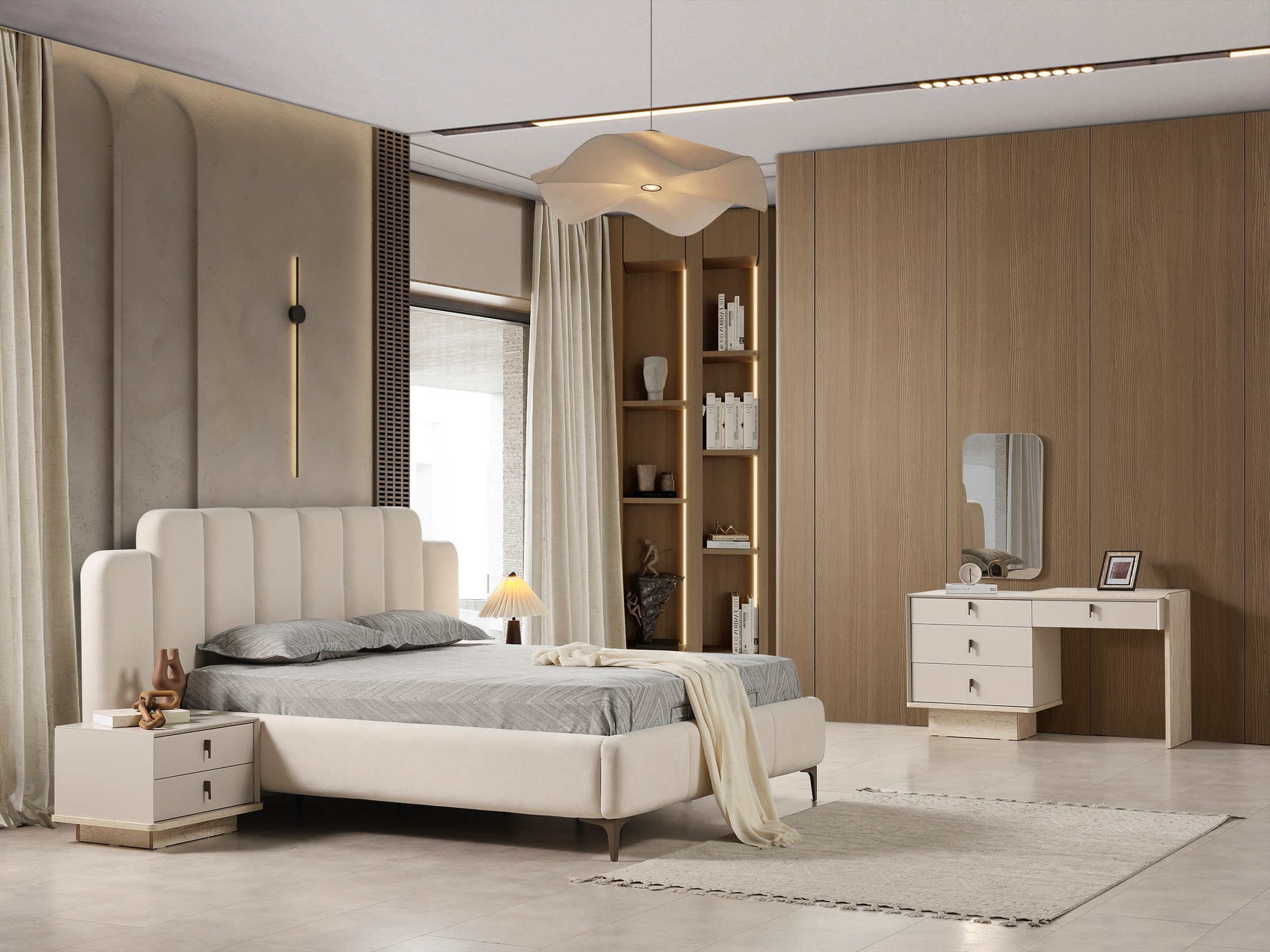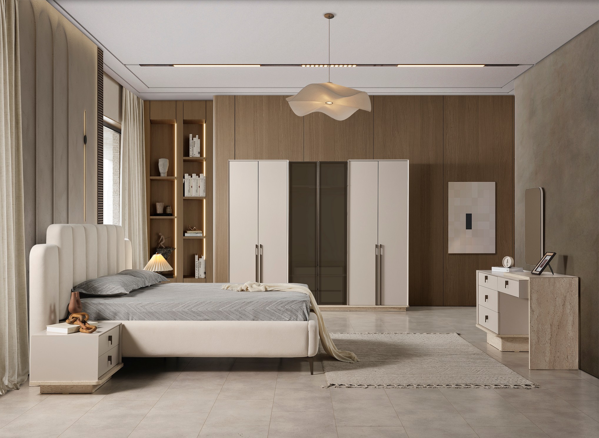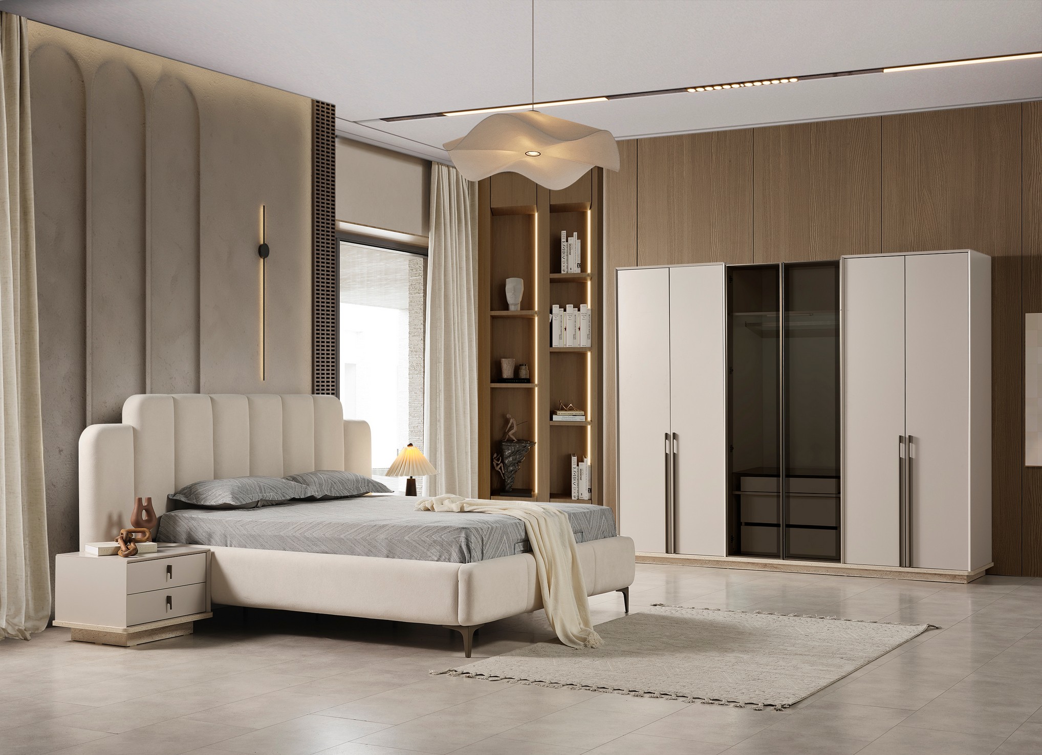 Asya Yatak Odası, sakin ve dengeli tasarım anlayışıyla huzurlu bir uyku alanı sunar. Doğal tonlar ve yumuşak geçişler, odanıza ferah ve sıcak bir atmosfer kazandırır. Fonksiyonel depolama çözümleri ve kaliteli malzemeleriyle uzun süreli konfor sağlar. Sadeliği ve zarafeti bir arada arayanlar için ideal bir tercihtir.