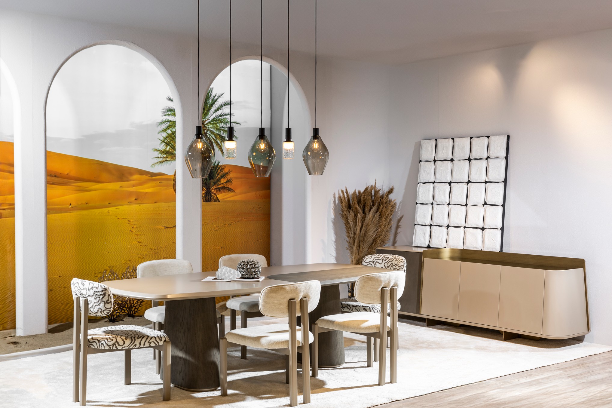 Kapadokya Yemek Odası, doğal dokuların sıcaklığını modern tasarım çizgileriyle harmanlayarak mekâna özgün ve huzurlu bir atmosfer kazandırır. Toprak tonlarının yumuşak geçişleri, yemek alanınıza bölgenin büyüleyici ruhunu yansıtan estetik bir hava katar. Hem şıklığı hem de konforu ön planda tutan bu takım, evinize doğal bir zarafet sunar.