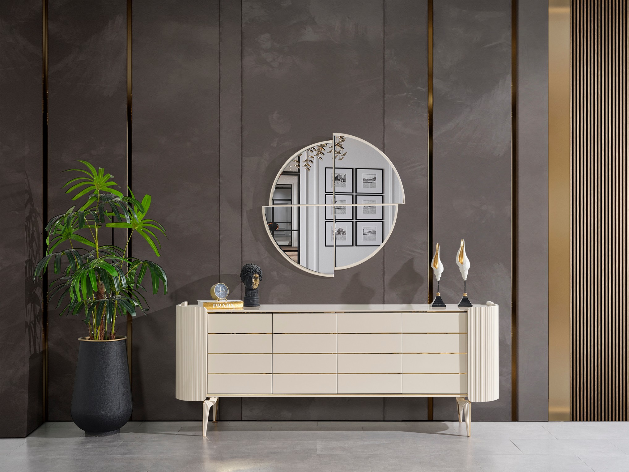 Aura Yemek Odası, mekânınıza ilk bakışta hissedilen zarif bir enerji katar. Yumuşak geçişli hatları ve modern dokunuşları, sofralarınızı huzur ve şıklığın buluştuğu özel bir atmosfere dönüştürür. Kendine özgü tasarım diliyle her yemeği ruhu olan bir deneyime çevirir. Kusursuz estetik arayanlar için etkileyici bir seçimdir.