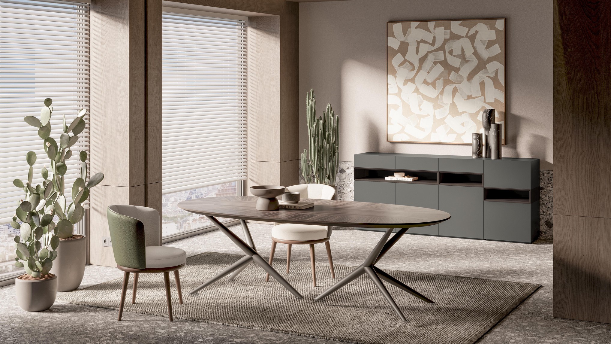 Lipa Yemek Odası, doğal dokuların modern tasarımla buluştuğu sıcak ve estetik bir ambiyans oluşturur. Ahşabın yalın zarafeti, mekâna hem samimi hem de şık bir hava katar. Fonksiyonel detayları ve özenli işçiliğiyle günlük kullanımda pratiklik sağlar. Doğal şıklığı sevenler için ideal bir tercih sunar.