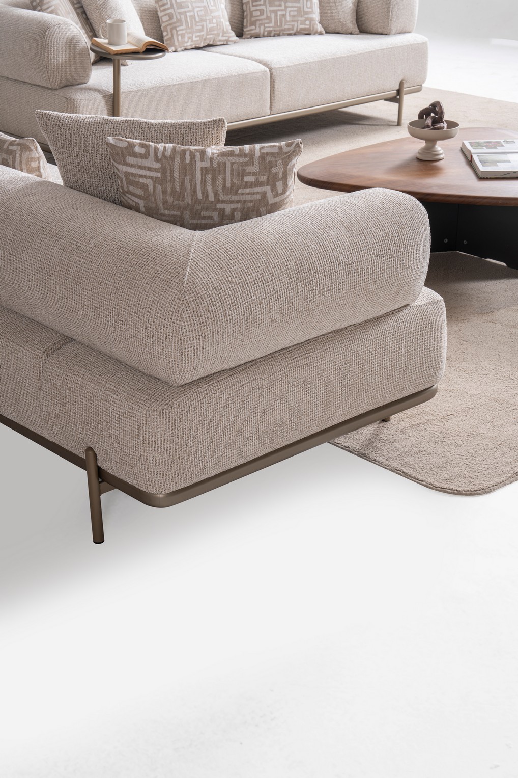 Natura Koltuk Takımı, doğal dokular ve yumuşak tonların modern tasarımla buluştuğu rahat bir oturma grubu sunar. Konfor odaklı minderleri ve ergonomik yapısıyla uzun süreli dinlenme anlarında bile üstün rahatlık sağlar. Uyumlu renk paleti ve sade detayları, yaşam alanınıza huzurlu ve estetik bir atmosfer kazandırır. Doğallığı ve konforu bir arada arayanlar için ideal bir koltuk takımı tercihidir.