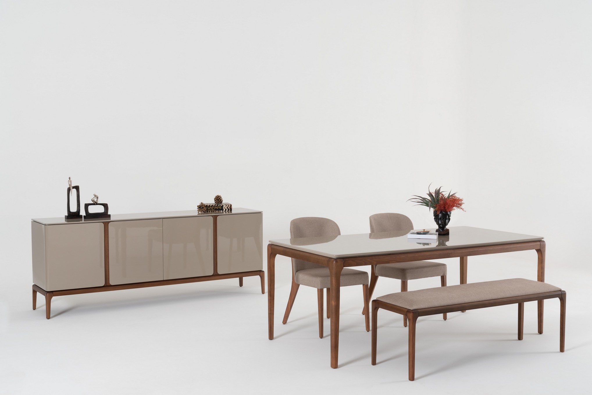 Lucca Lux Yemek Odası, modern lüksün en sade hâliyle buluştuğu ihtişamlı bir tasarıma sahiptir. Parlak yüzeylerin zarif detaylarla birleşimi, mekâna göz alıcı bir ışıltı ve sofistike bir ambiyans kazandırır. Kaliteli malzemeleri ve fonksiyonel yapısıyla hem estetik hem de uzun ömürlü bir kullanım sunar. Evinize prestijli ve modern bir hava katmak isteyenler için ideal bir seçimdir.