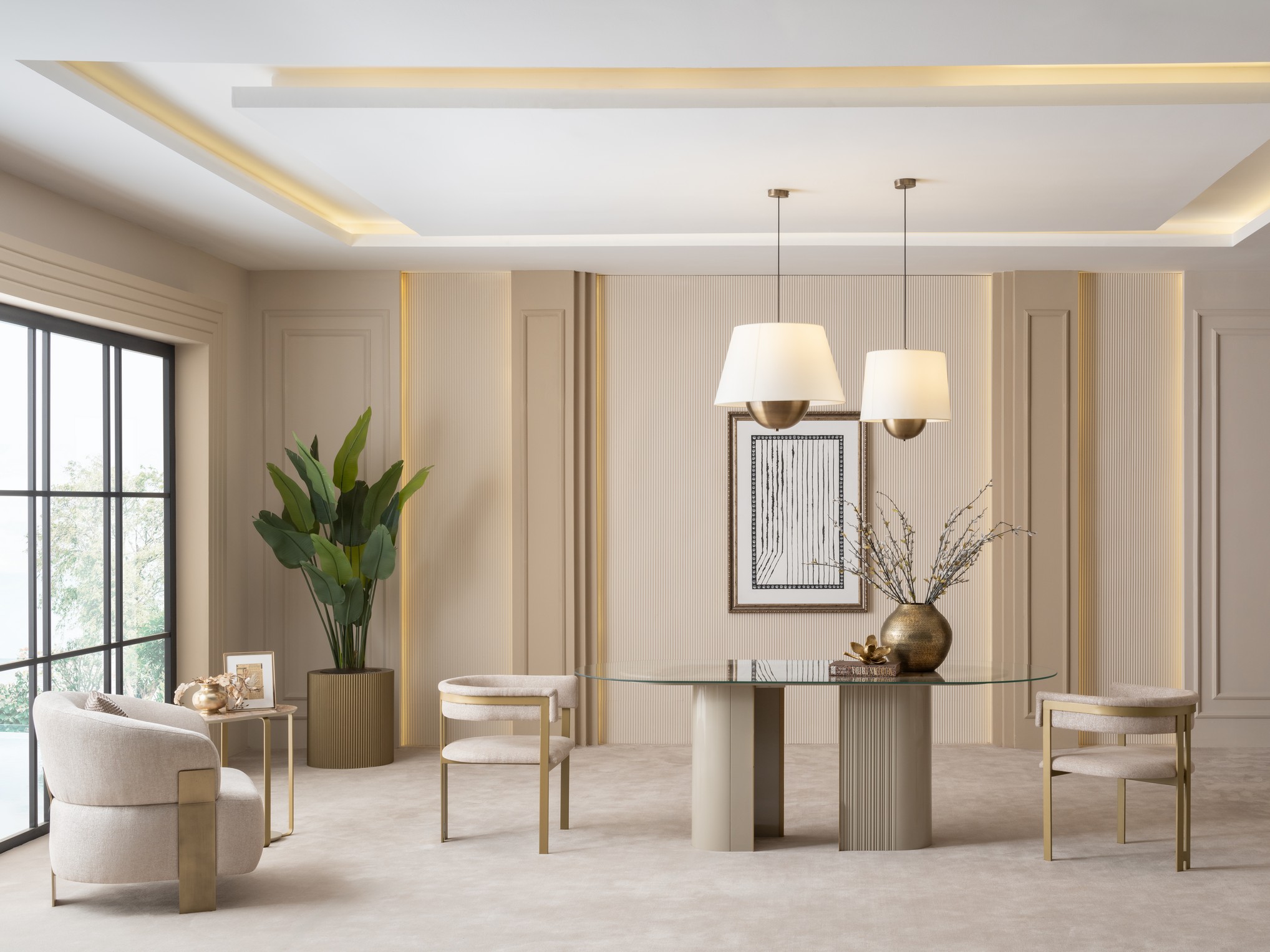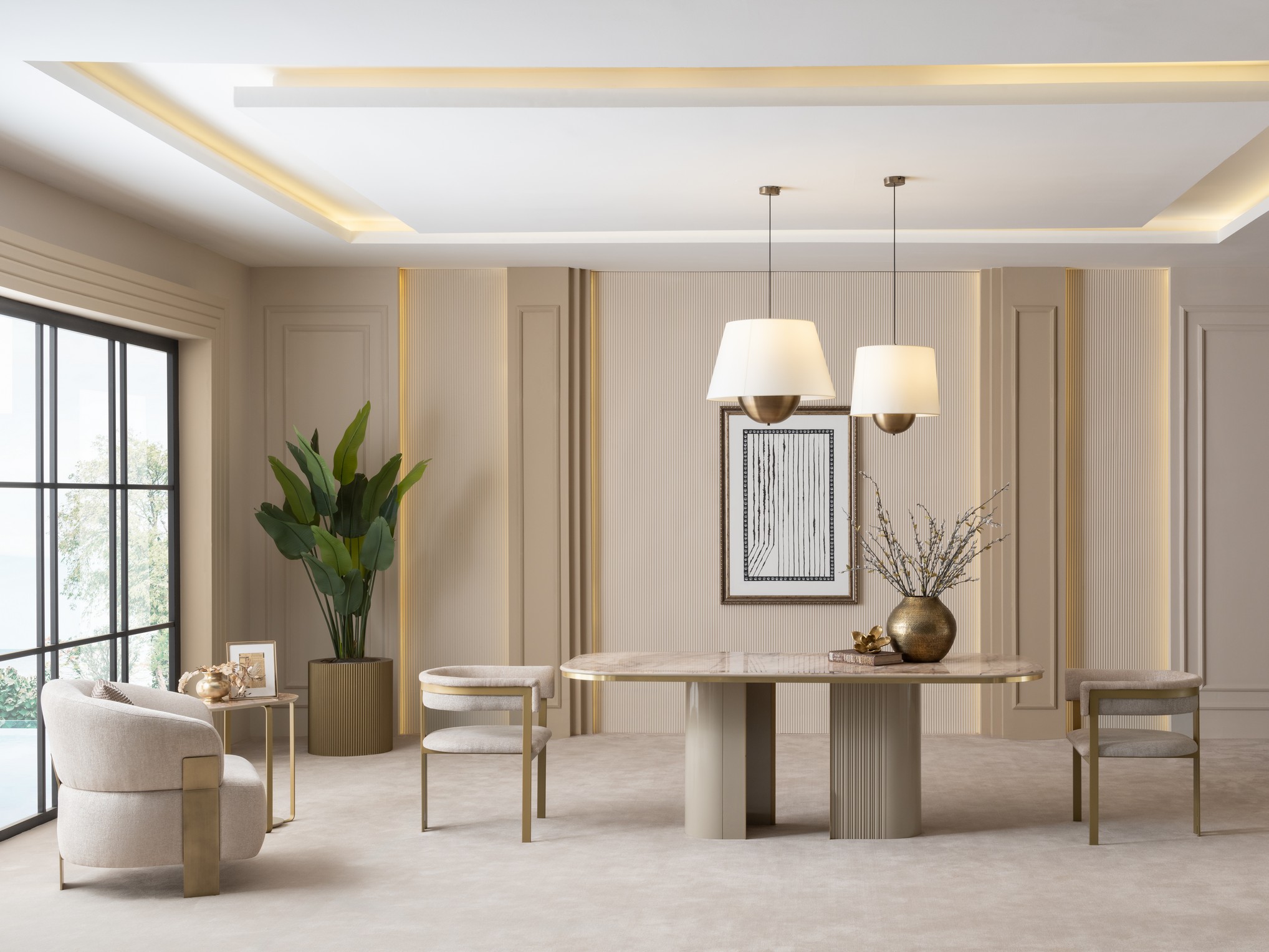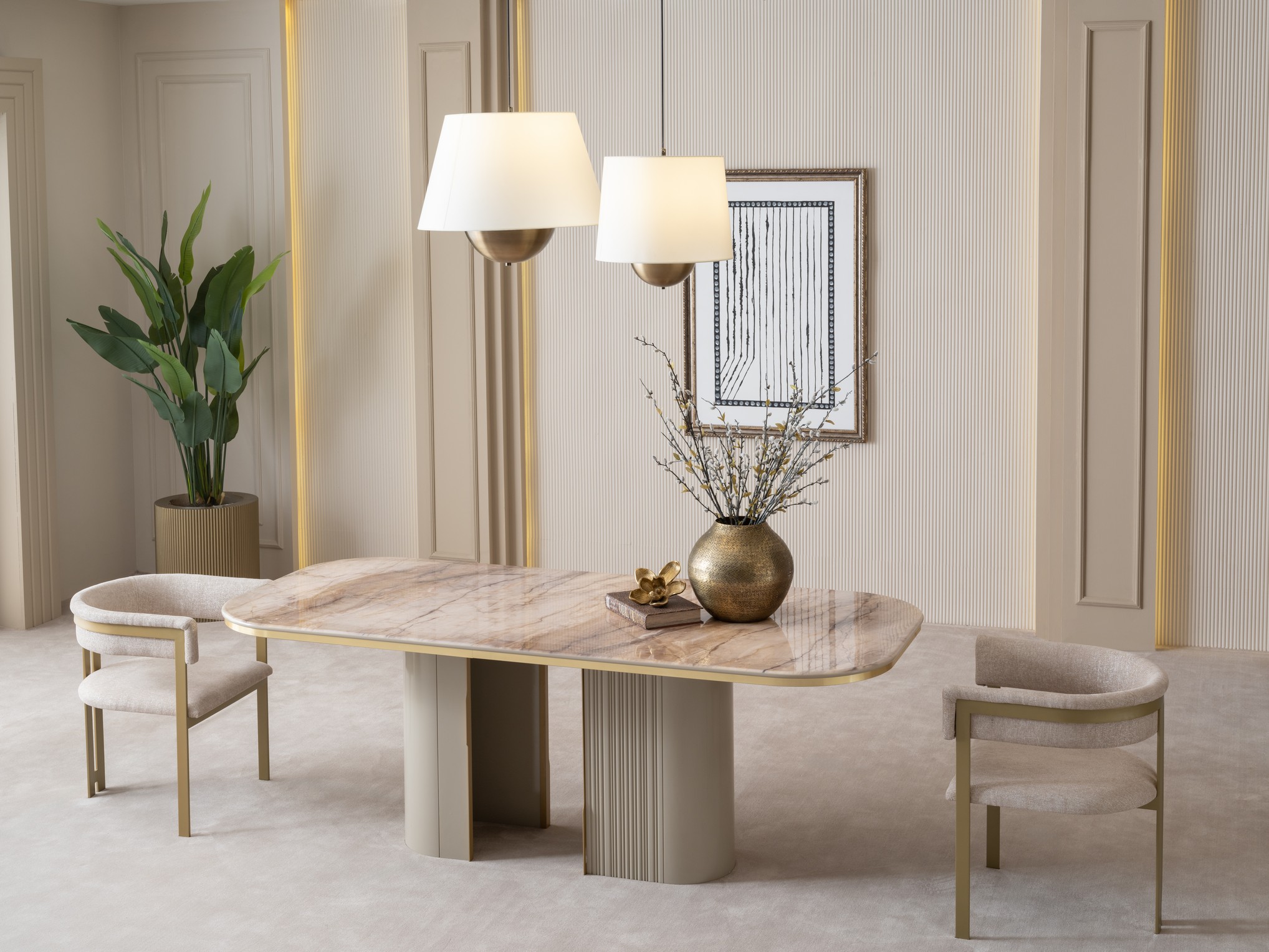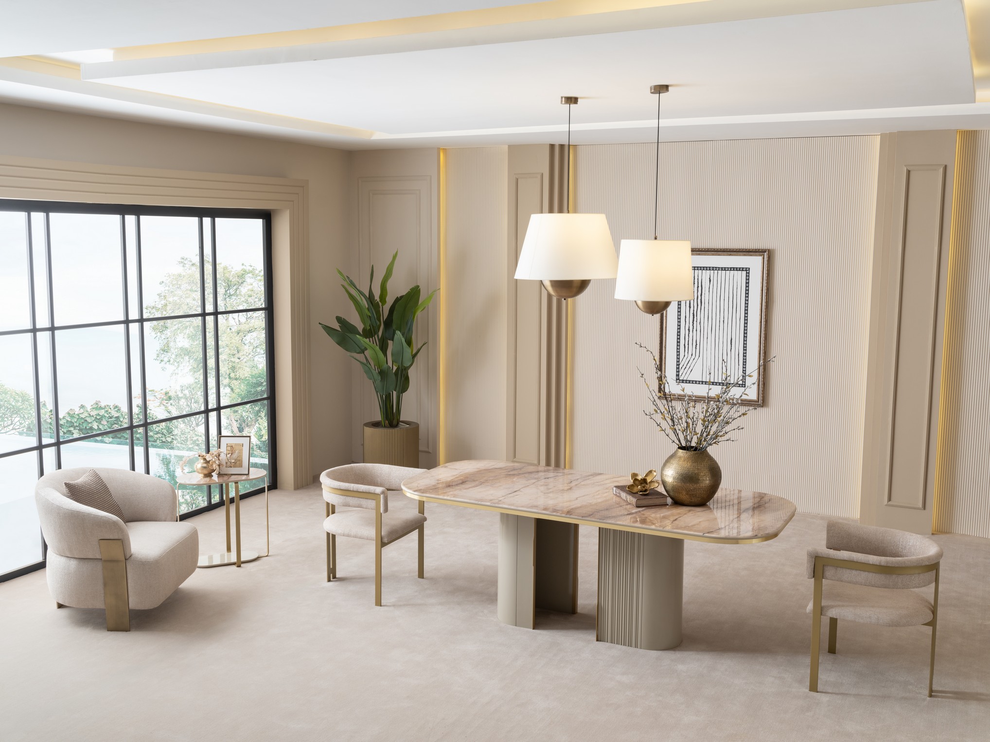 Massimo Yemek Odası, modern çizgiler ve zarif dokunuşlarıyla yemek alanınıza sofistike bir hava katıyor. Şıklığı ve konforu bir araya getiren tasarımı, her öğünü özel bir deneyime dönüştürüyor. Mekânınıza prestijli ve davetkar bir ambiyans sunuyor.