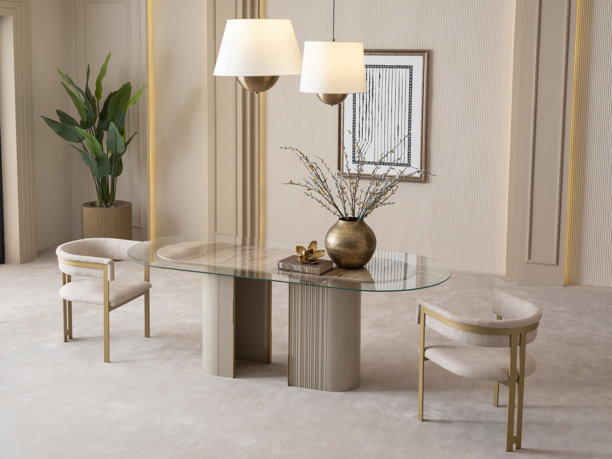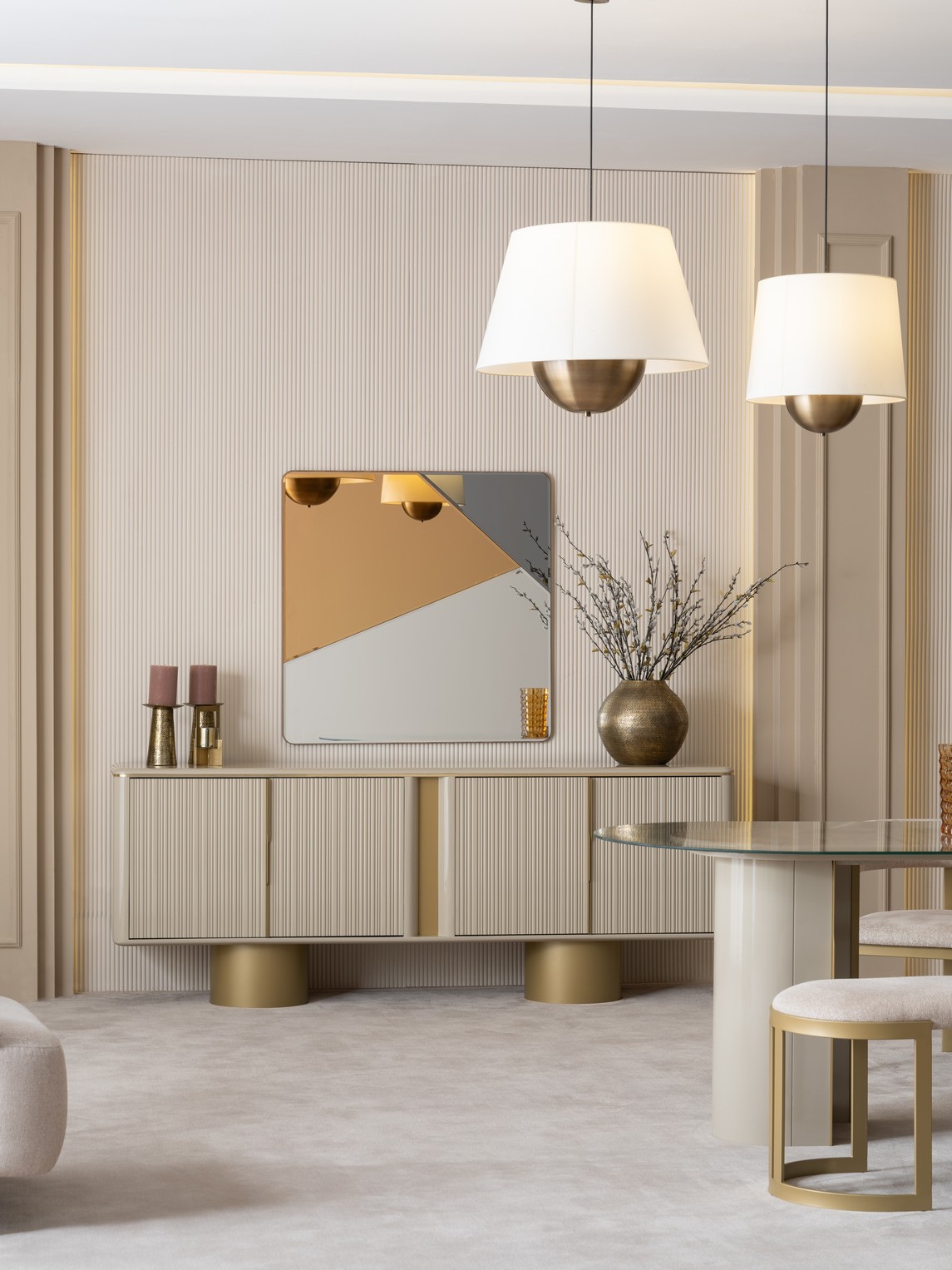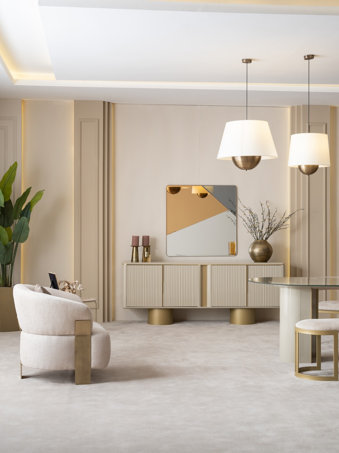 Massimo Yemek Odası, modern çizgiler ve zarif dokunuşlarıyla yemek alanınıza sofistike bir hava katıyor. Şıklığı ve konforu bir araya getiren tasarımı, her öğünü özel bir deneyime dönüştürüyor. Mekânınıza prestijli ve davetkar bir ambiyans sunuyor.