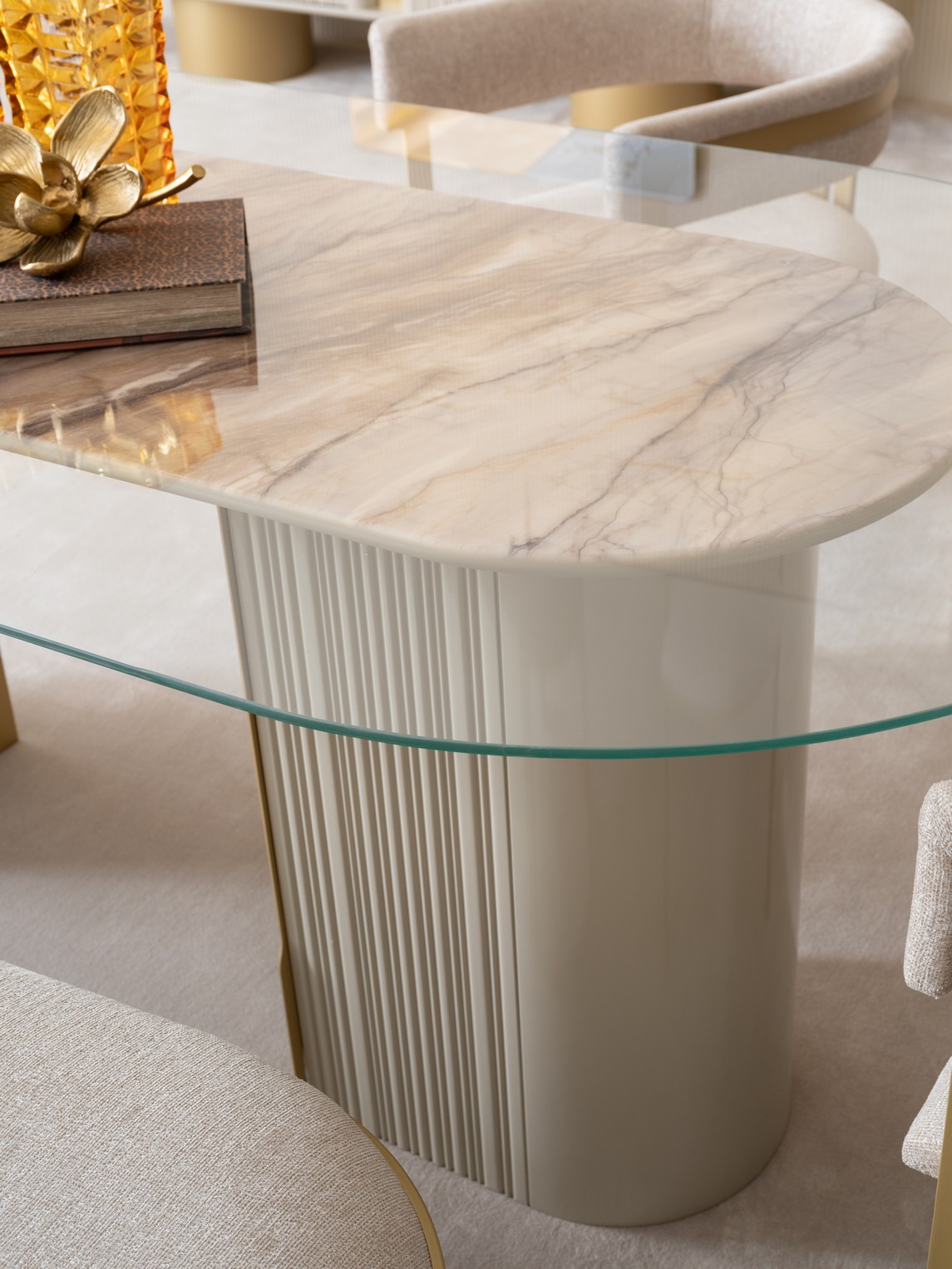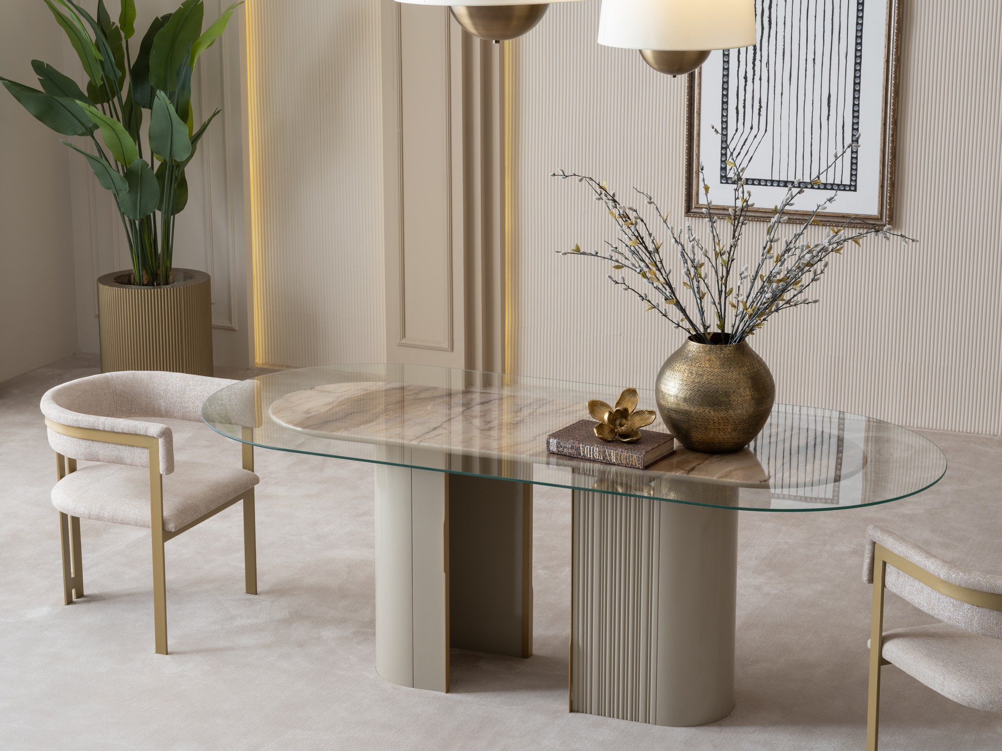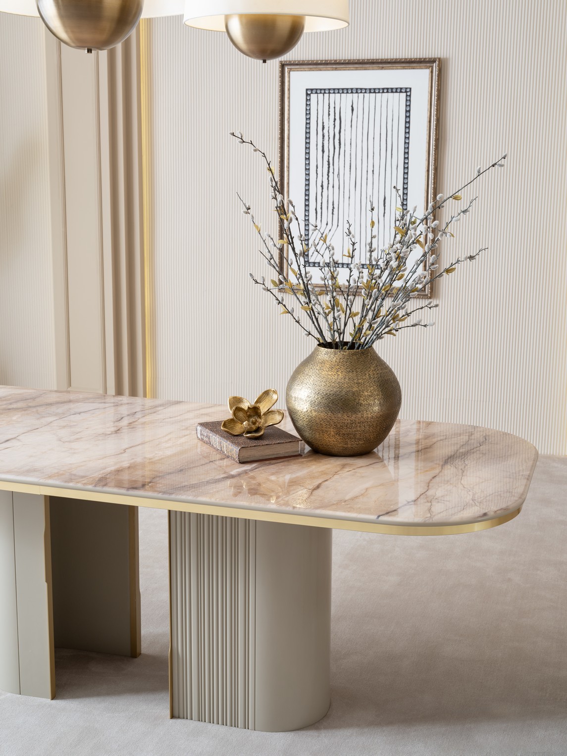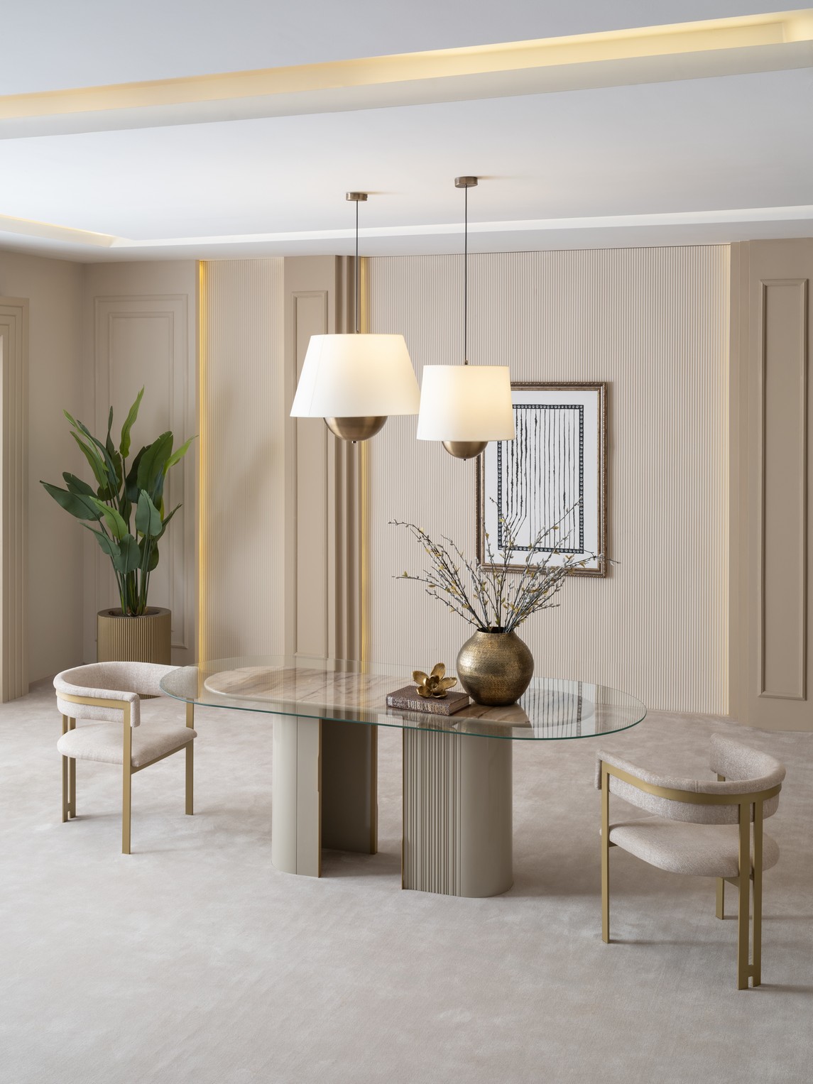 Massimo Yemek Odası, modern çizgiler ve zarif dokunuşlarıyla yemek alanınıza sofistike bir hava katıyor. Şıklığı ve konforu bir araya getiren tasarımı, her öğünü özel bir deneyime dönüştürüyor. Mekânınıza prestijli ve davetkar bir ambiyans sunuyor.